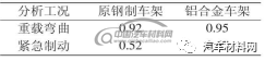 经过仿真分析验证,综合方案1、方案2,铝合金车架刚度性能可以达到钢制车架水平,认为刚度能够满足性能要求。