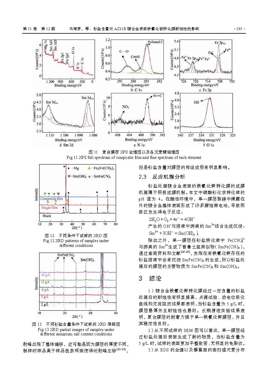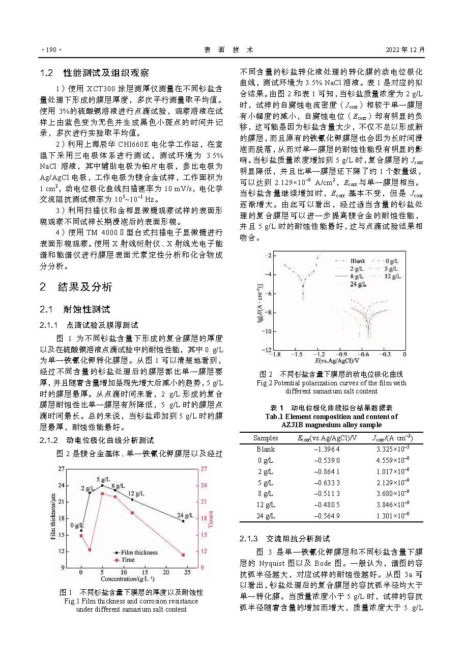 钐盐含量对 AZ31B 镁合金表面铁氰化物转化膜耐蚀性的影响