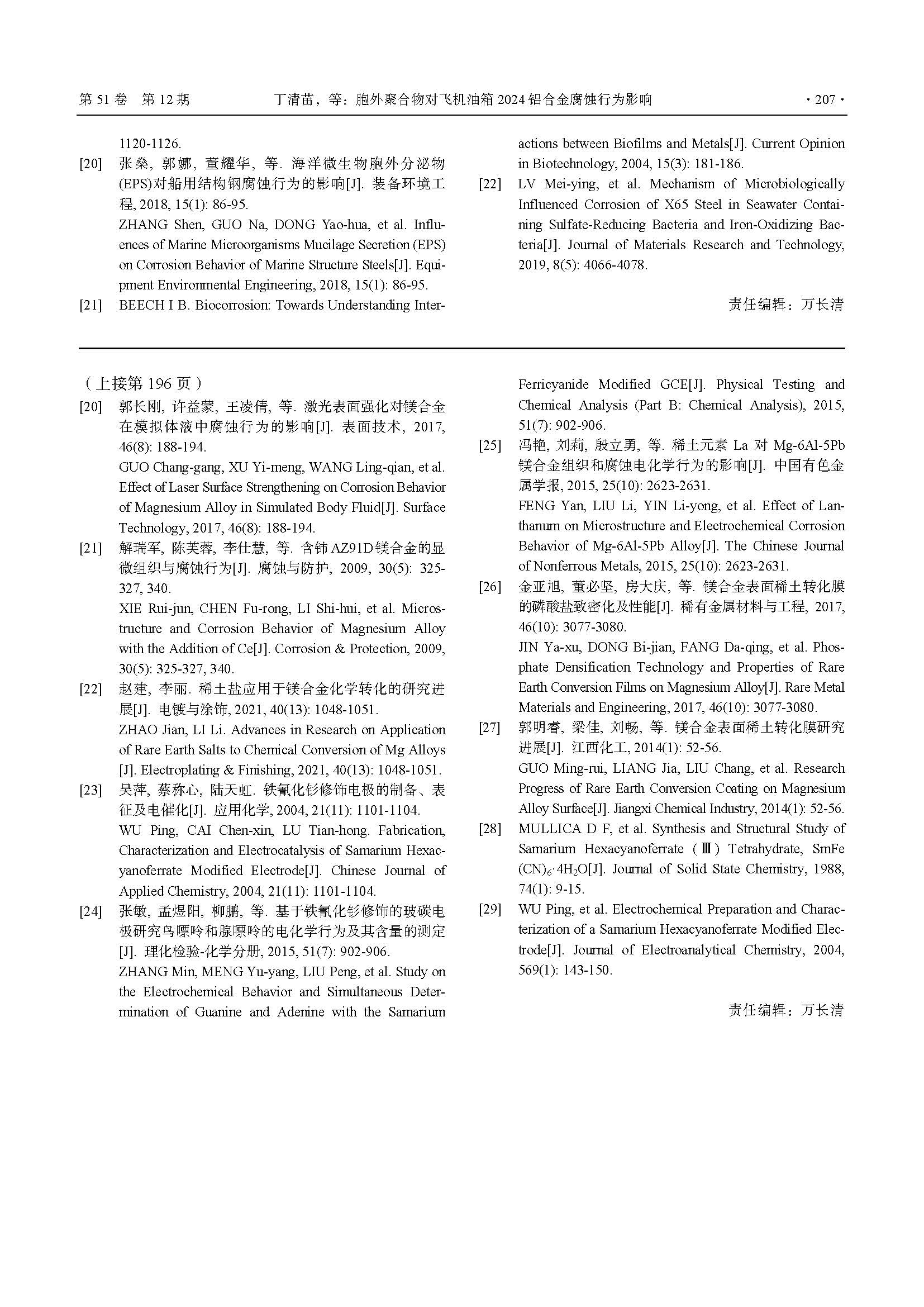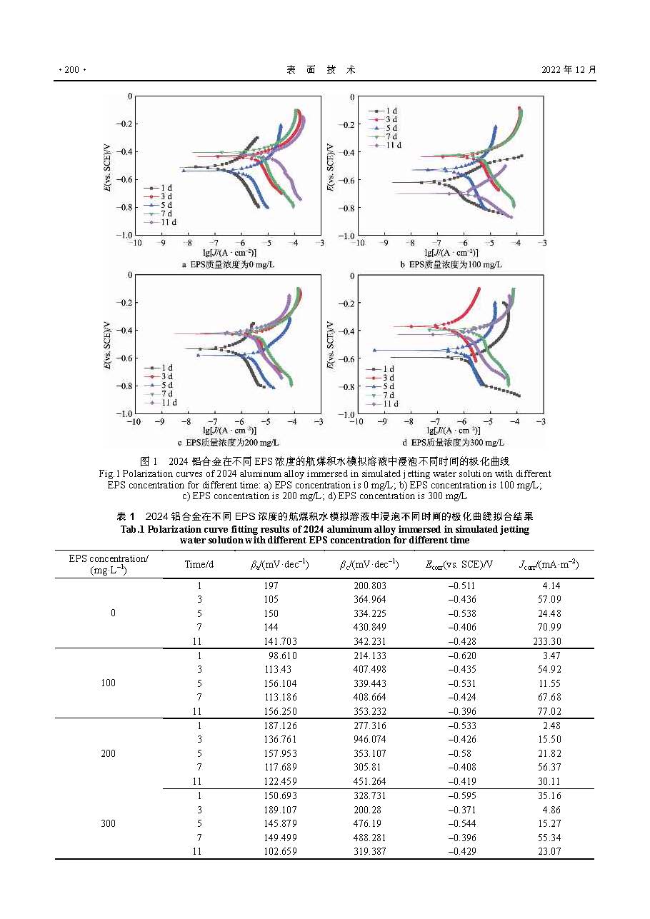 胞外聚合物对飞机油箱 2024 铝合金腐蚀行为影响