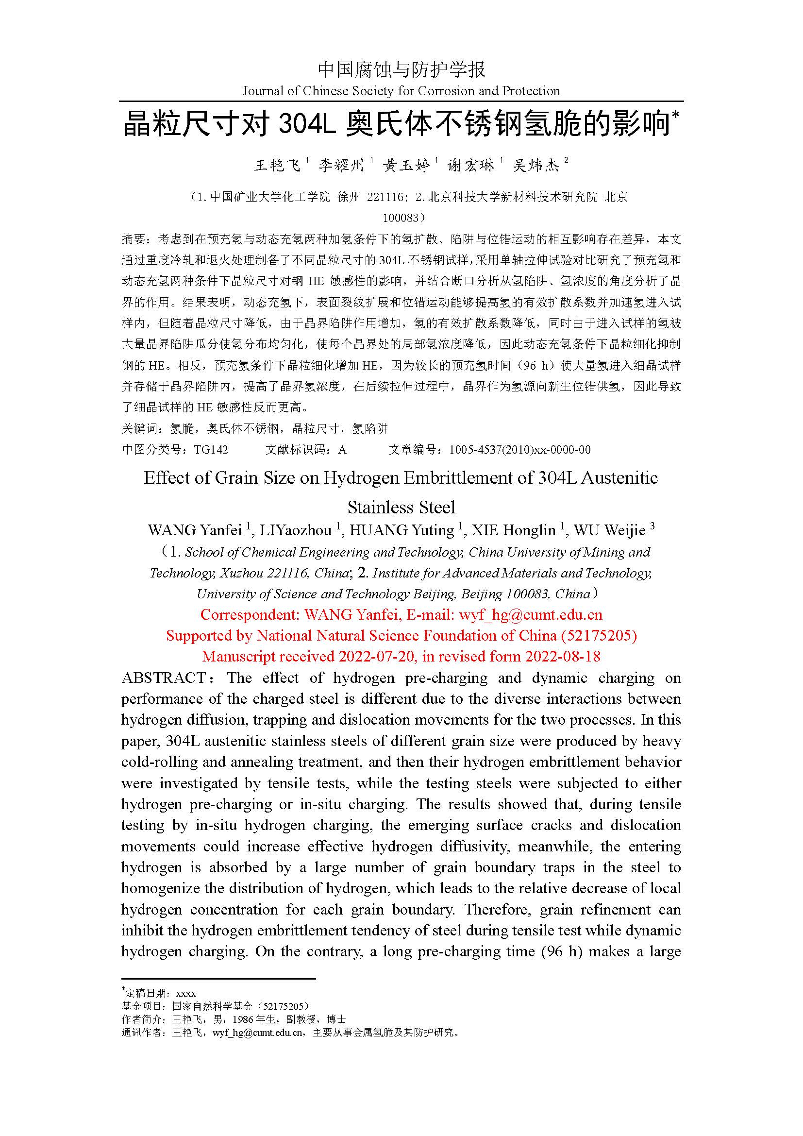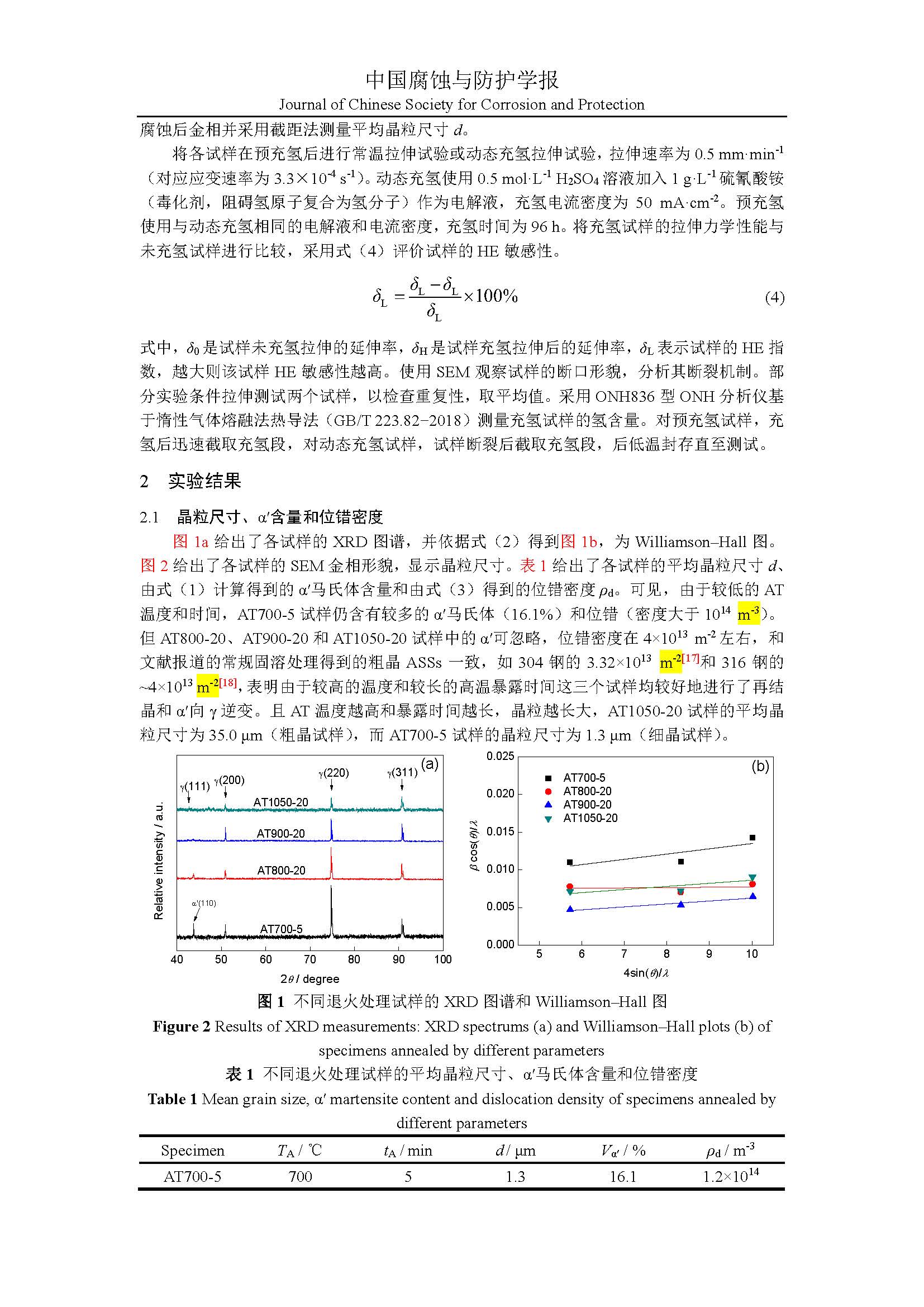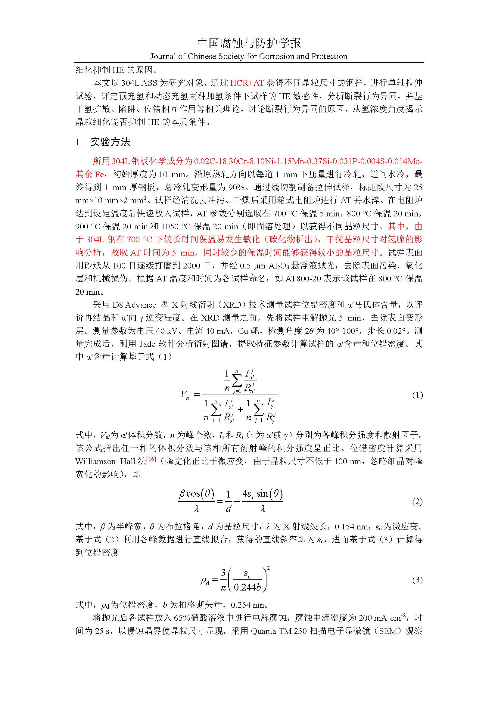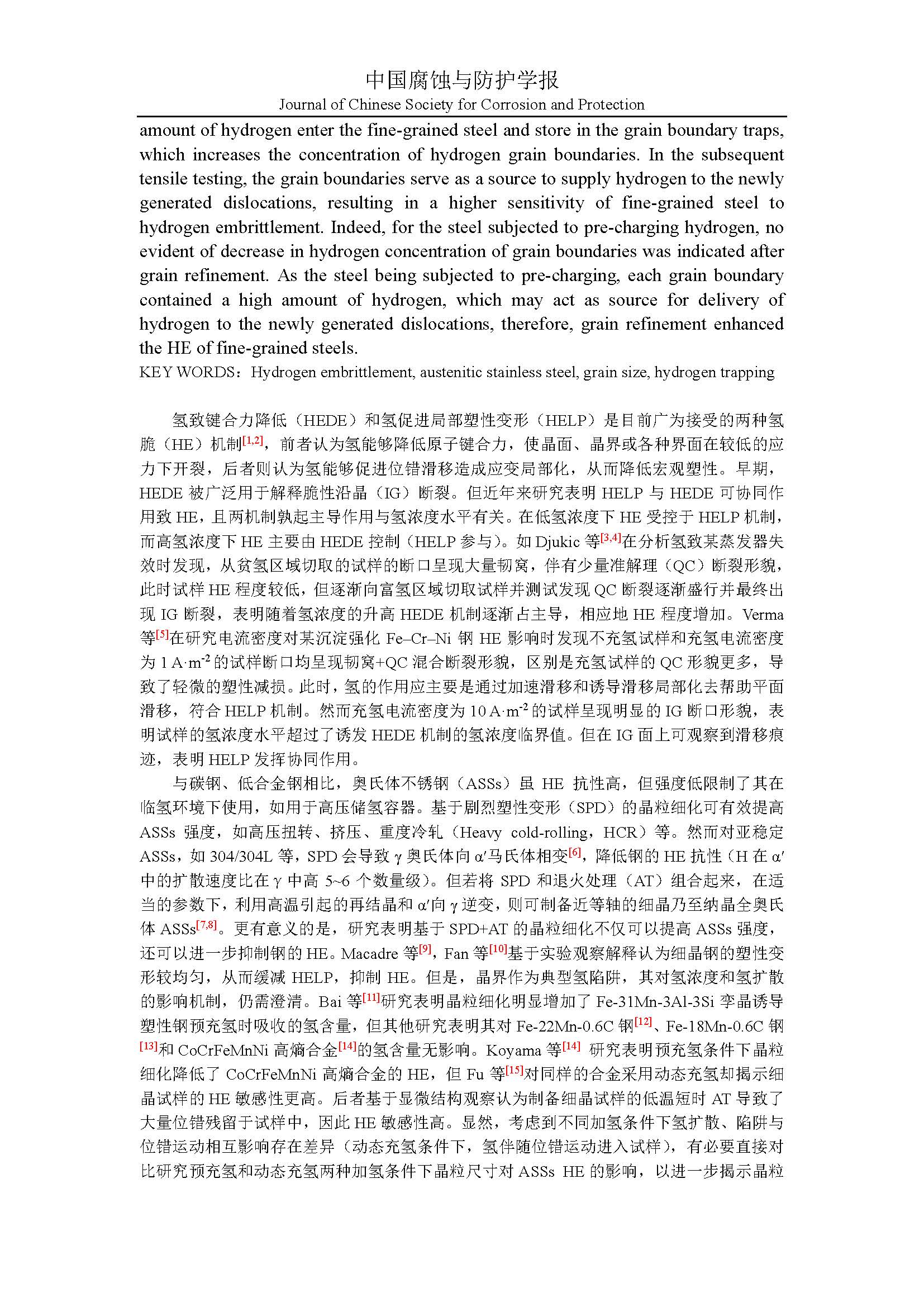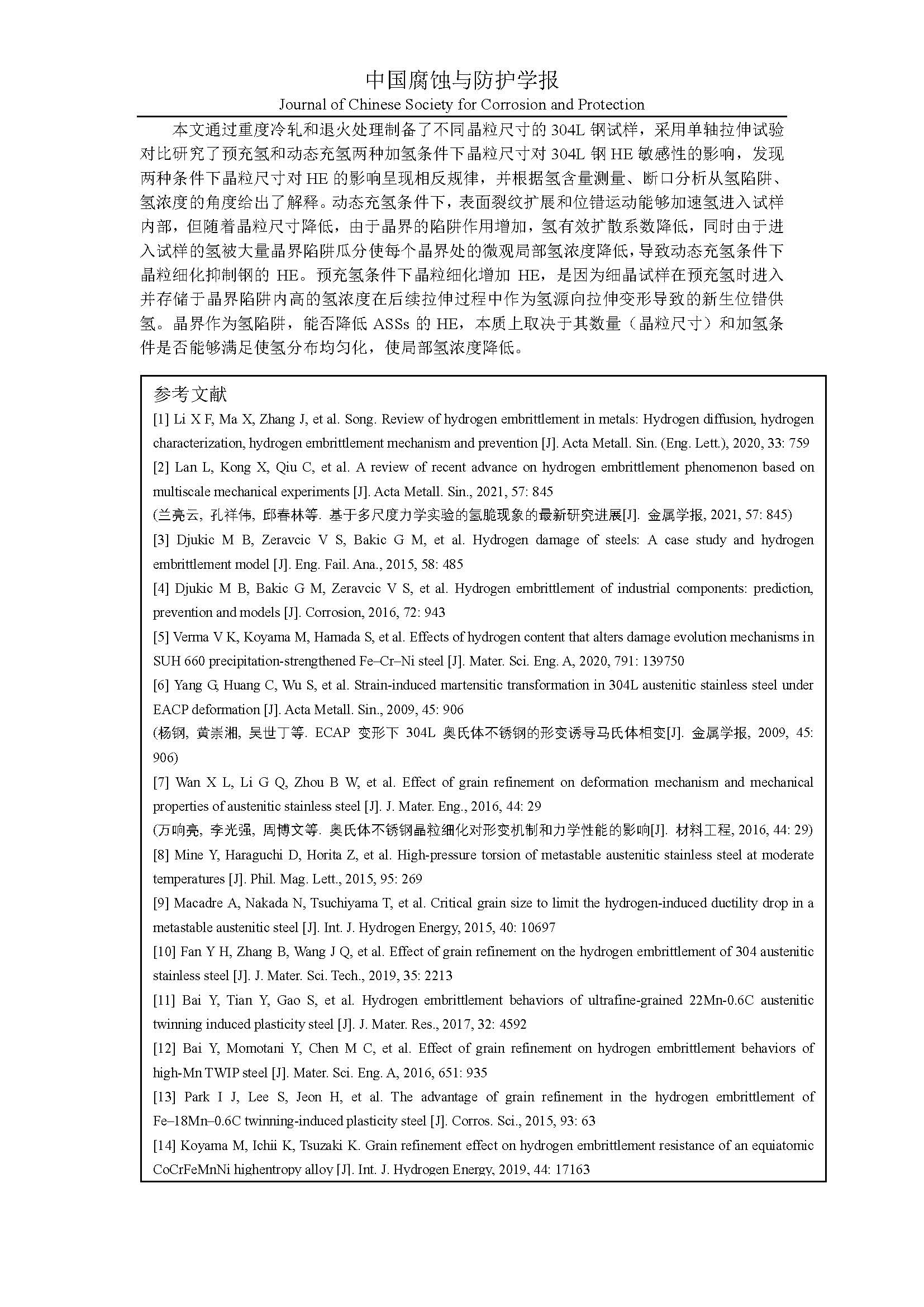 晶粒尺寸对 304L 奥氏体不锈钢氢脆的影响