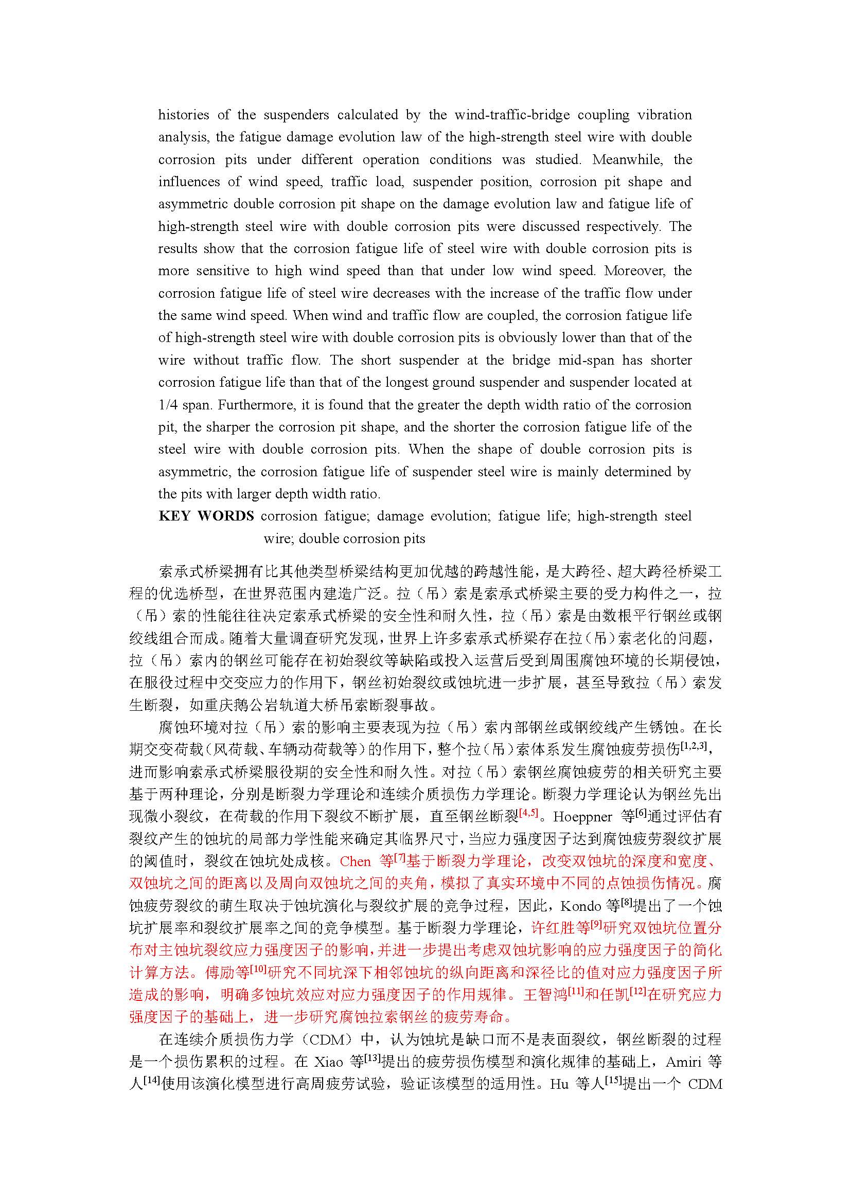风-车流耦合作用下悬索桥吊索钢丝的双蚀坑损伤演化及疲劳寿命研究