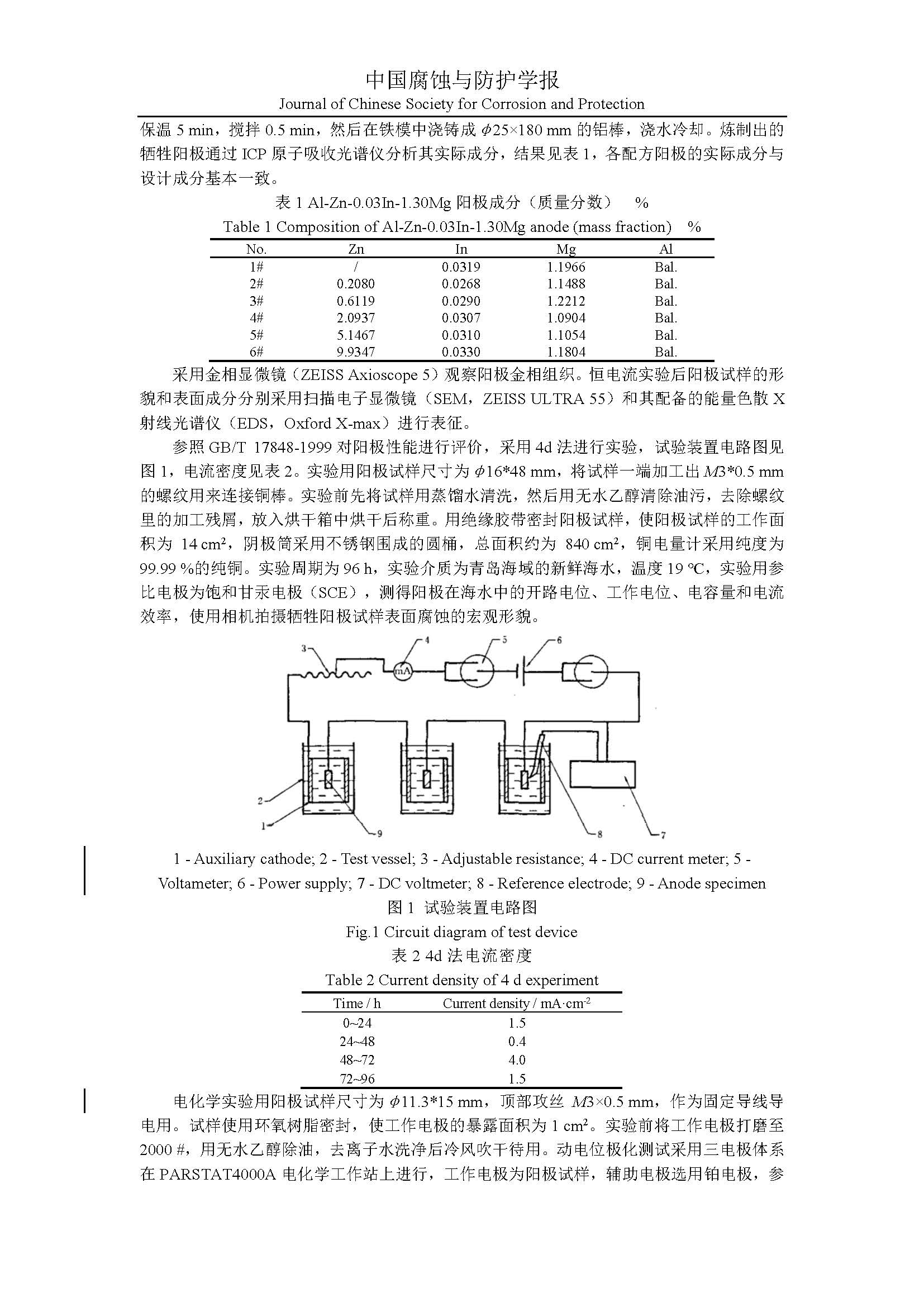 含Mg 铝合金牺牲阳极的电流效率及其影响因素