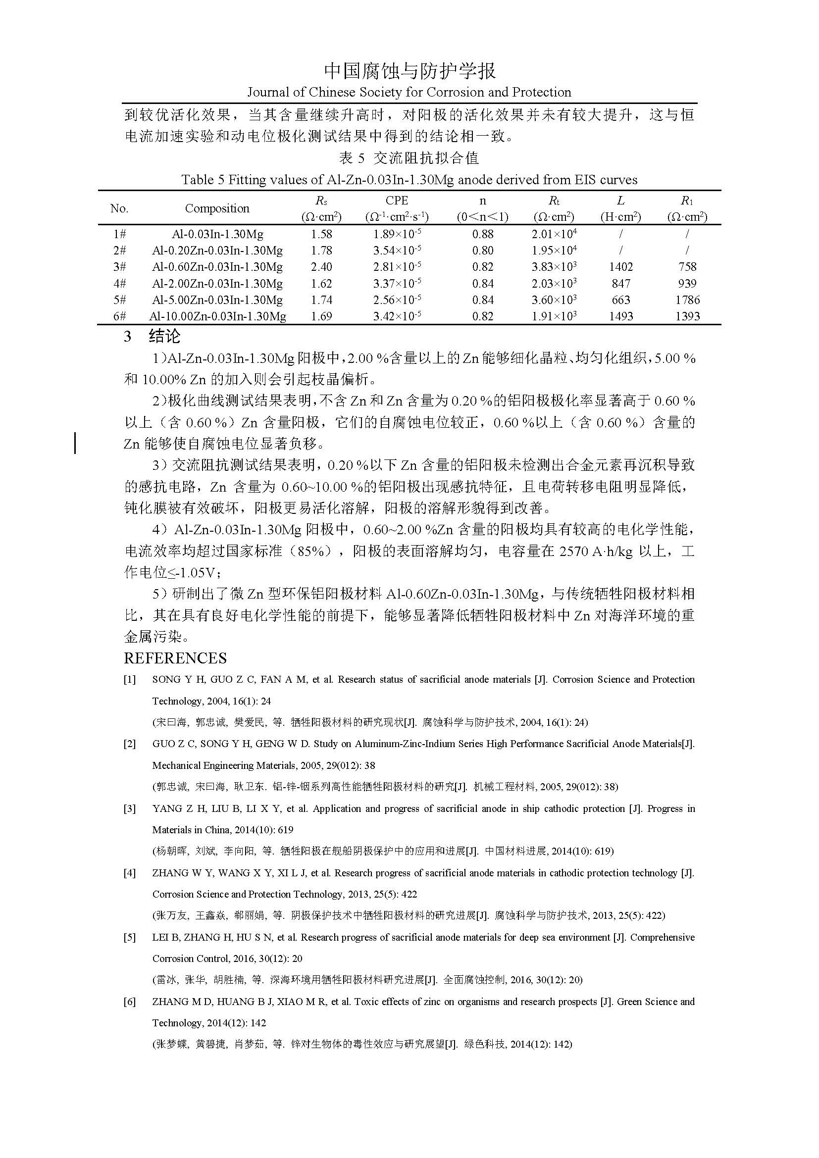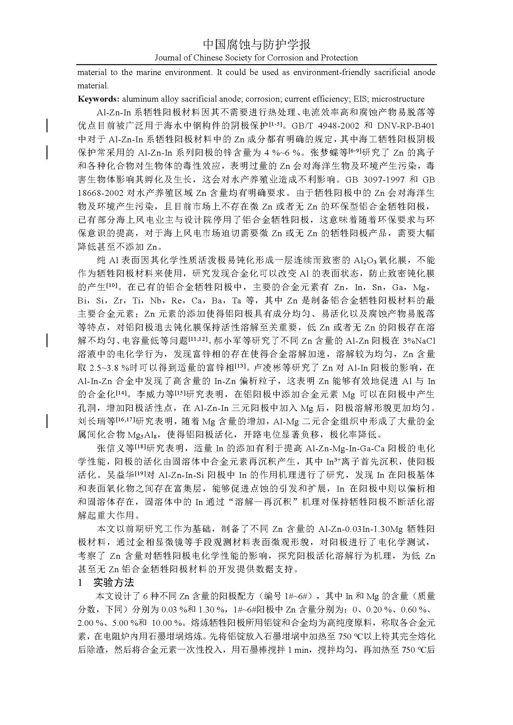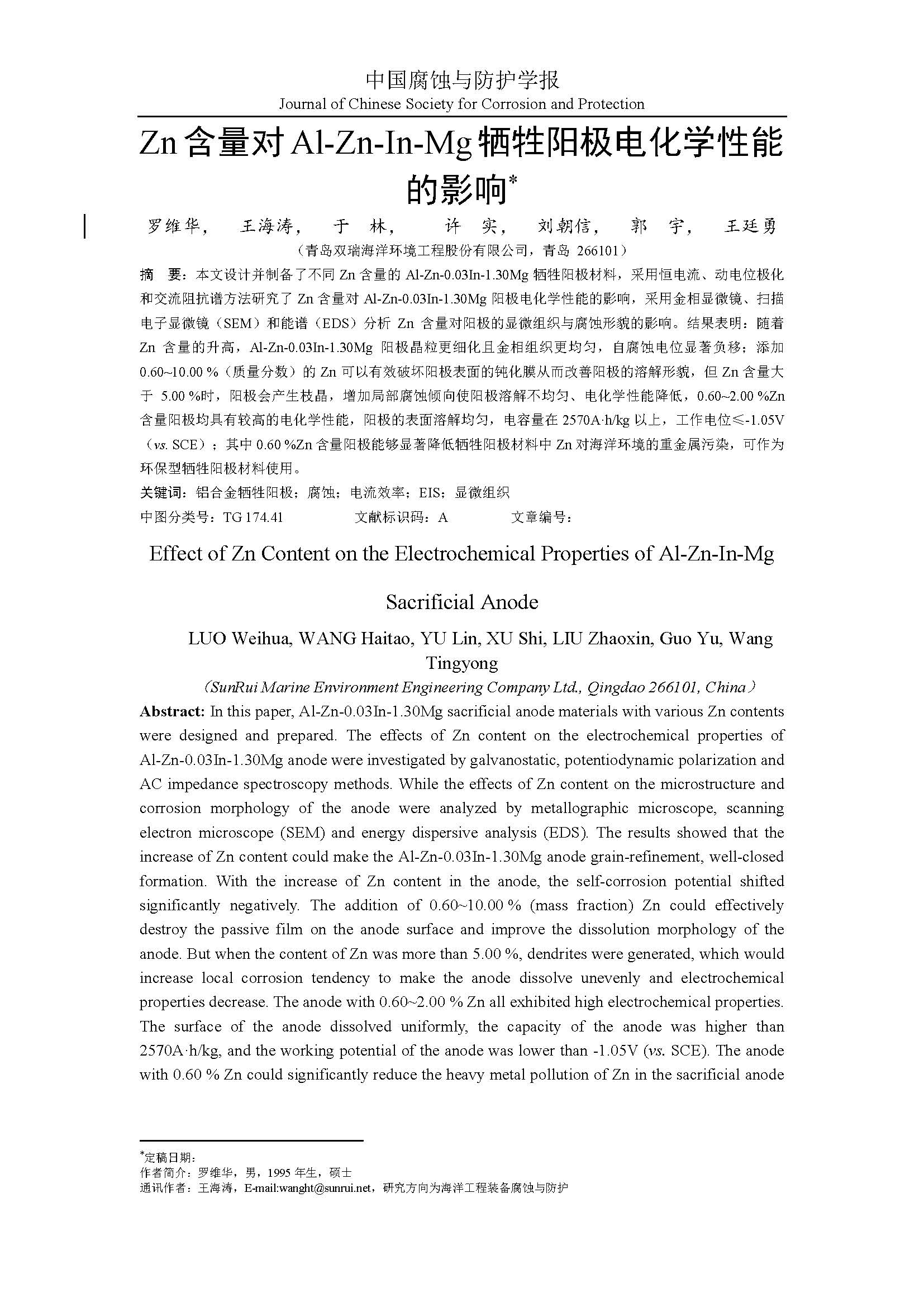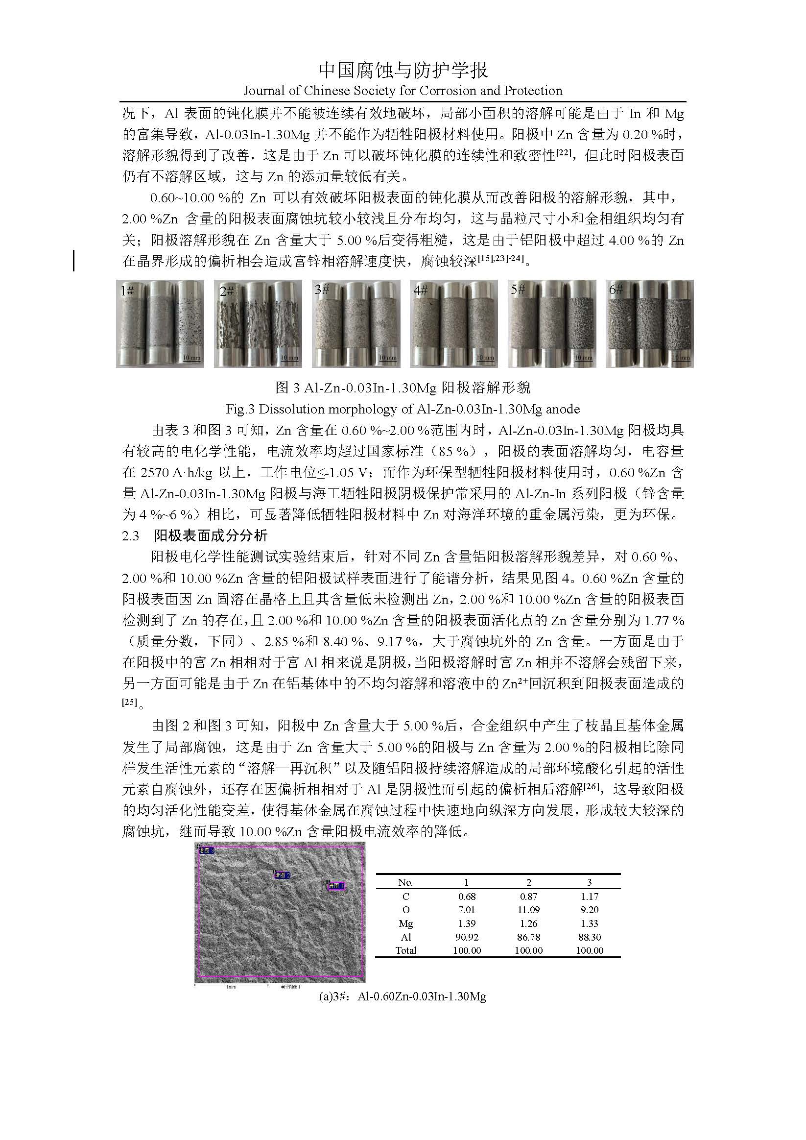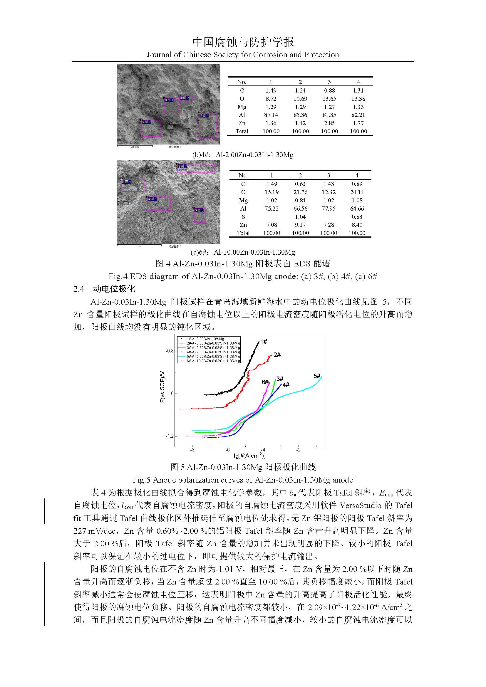 Zn含量对Al-Zn-In-Mg牺牲阳极电化学性能的影响