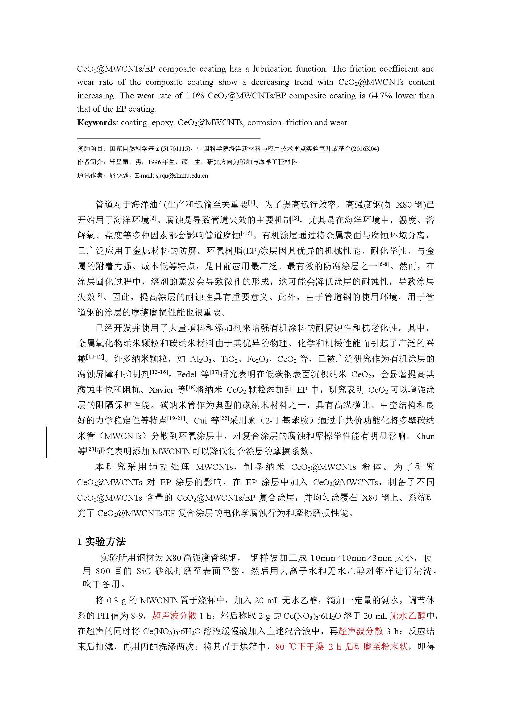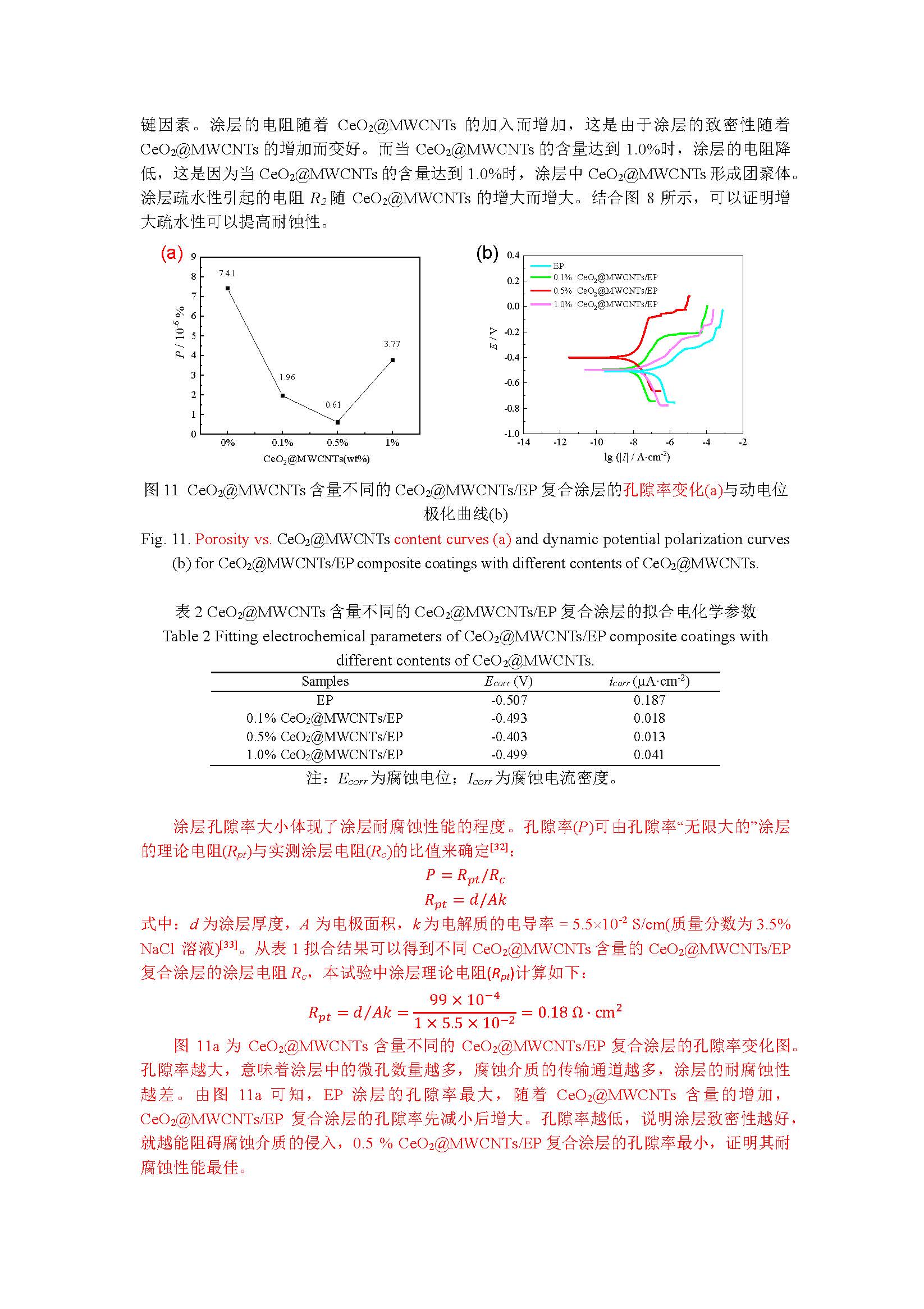 标签: 涂层, 环氧树脂, CeO2@MWCNTs, 腐蚀