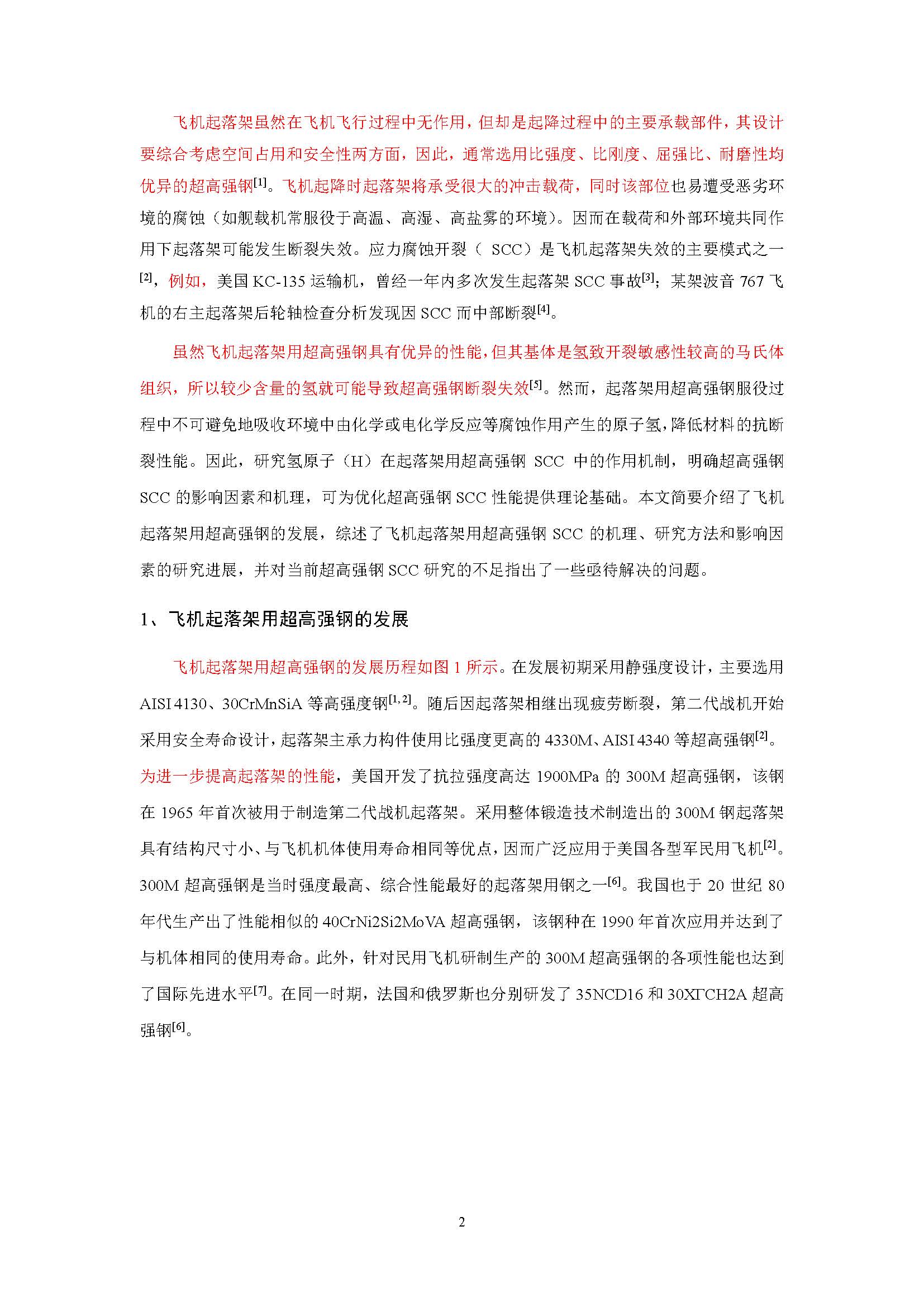 飞机起落架用超高强钢应力腐蚀开裂研究进展