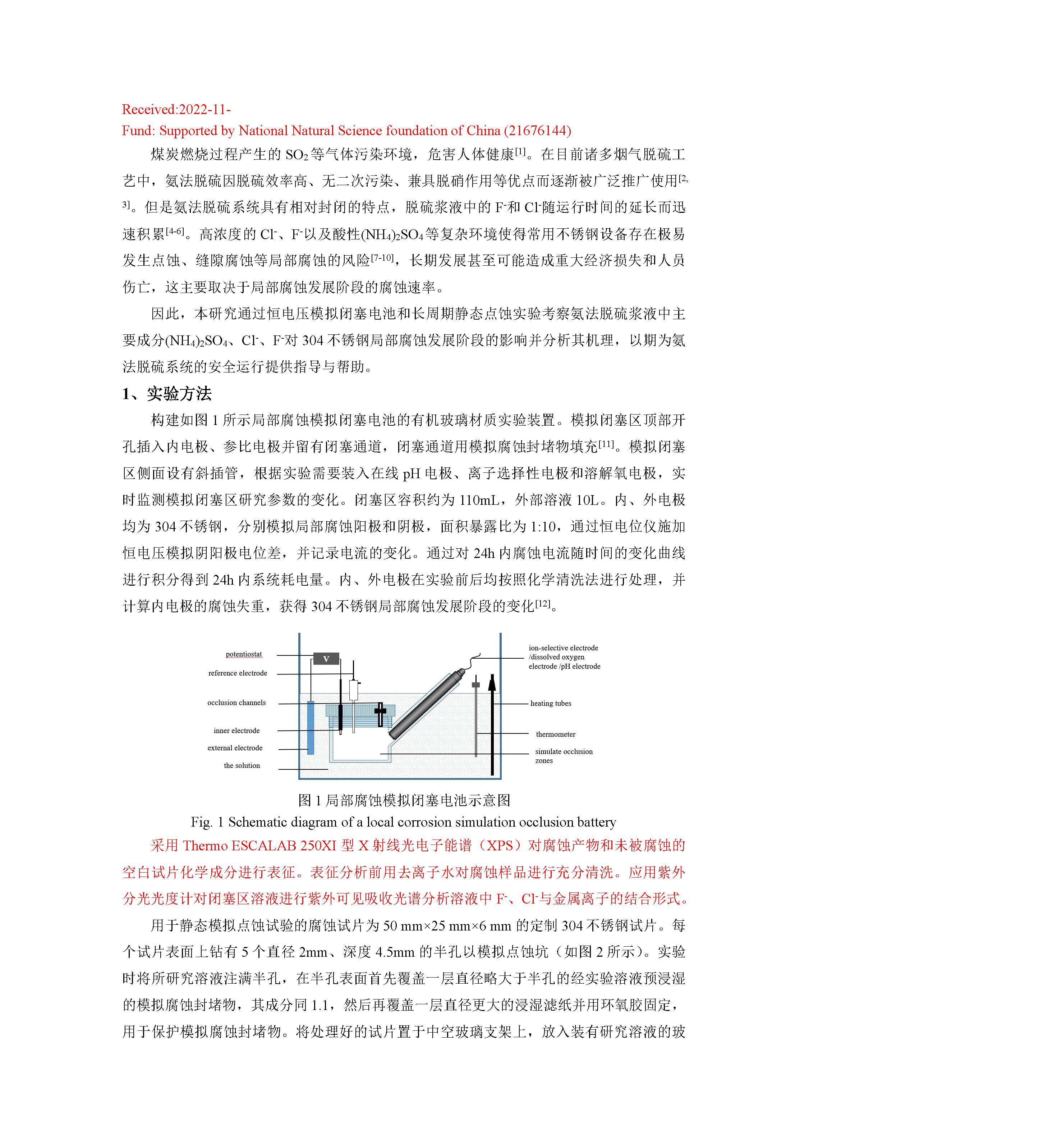 来源:中国腐蚀与防护学报