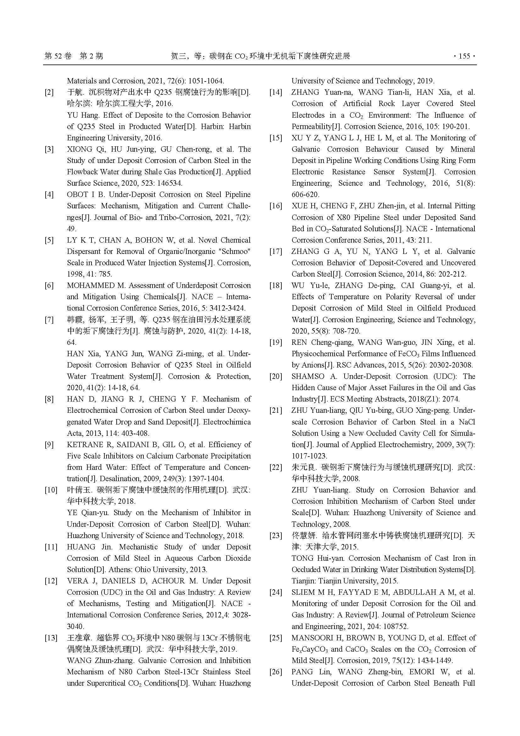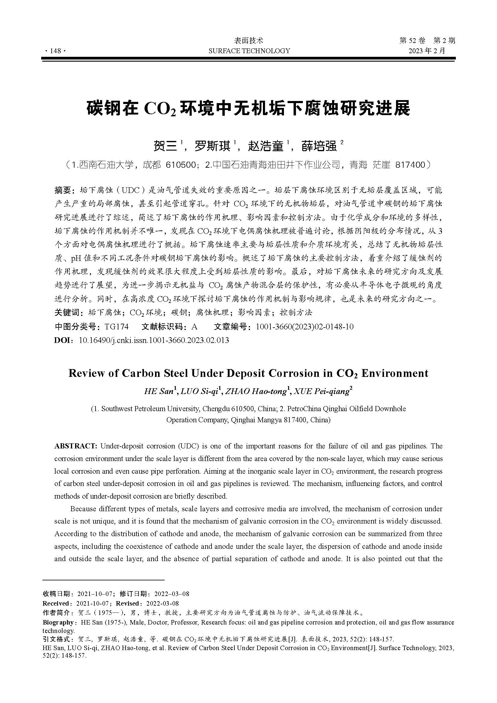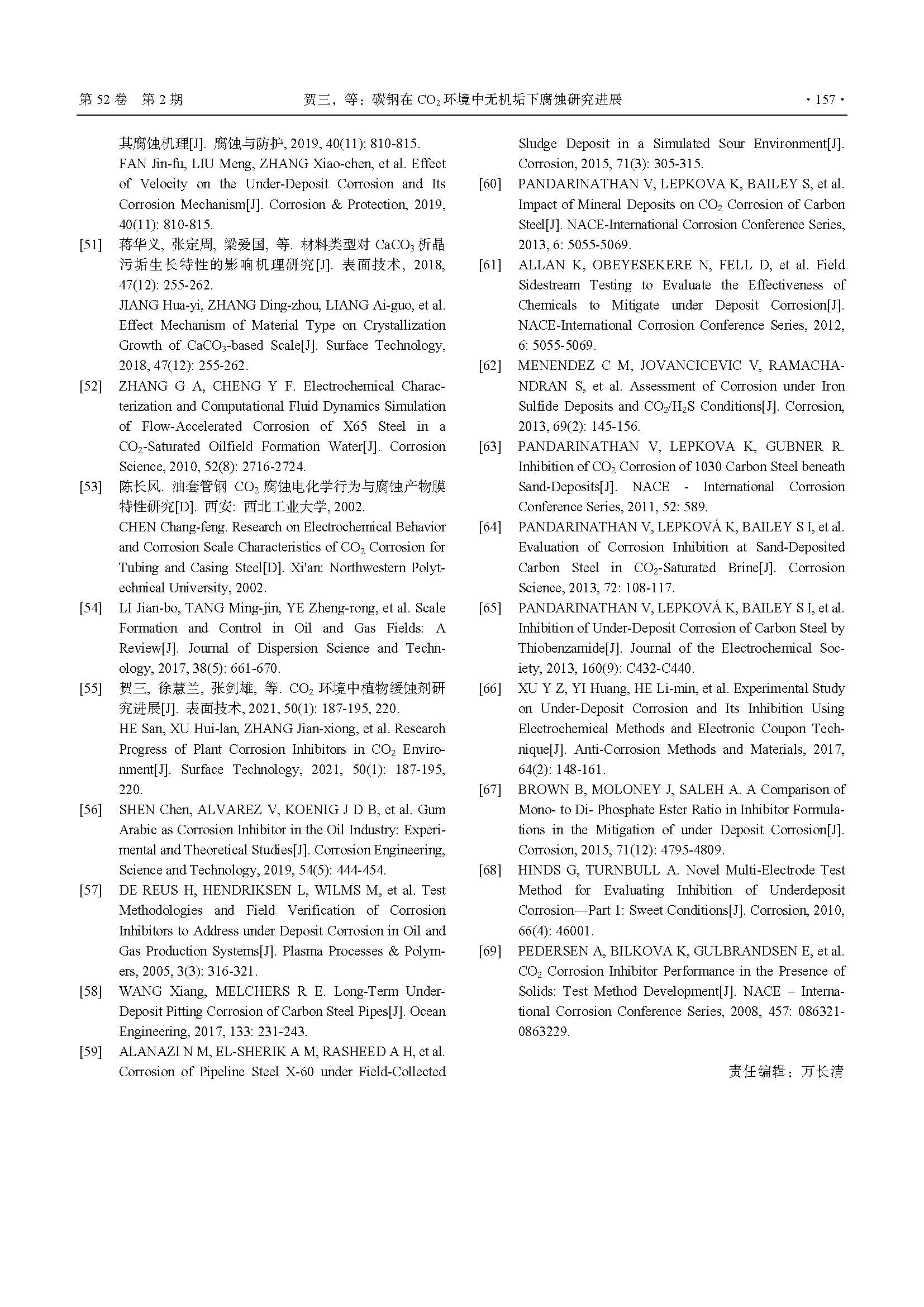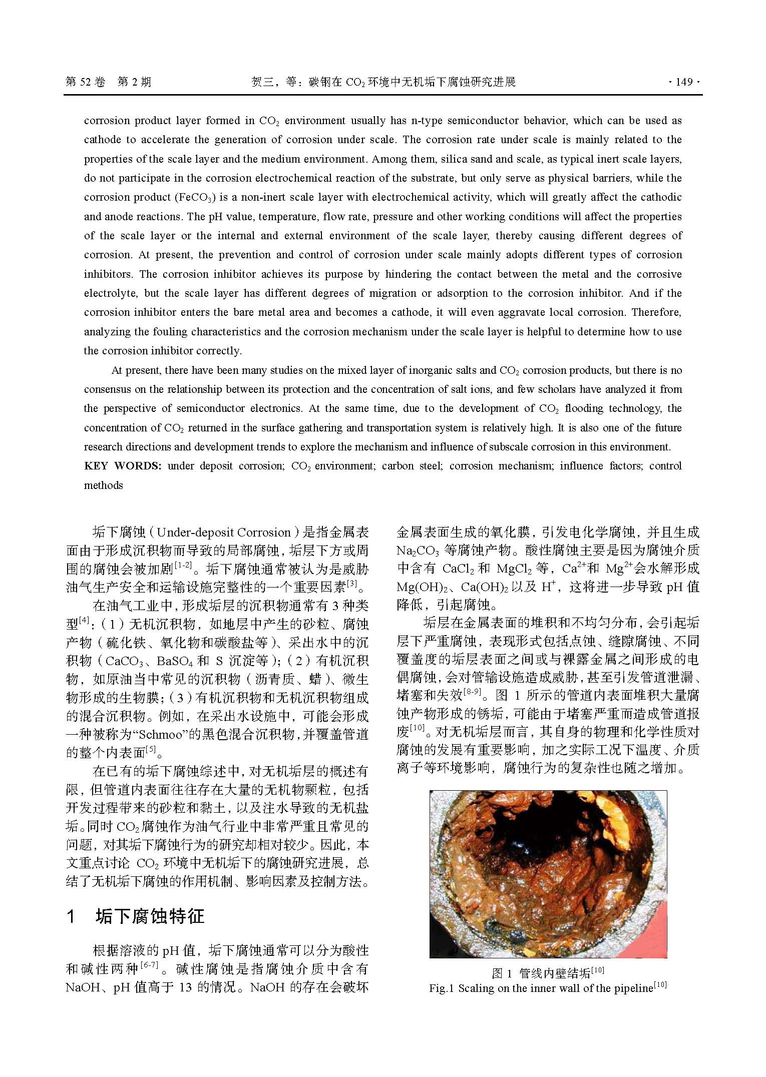 碳钢在 CO2 环境中无机垢下腐蚀研究进展