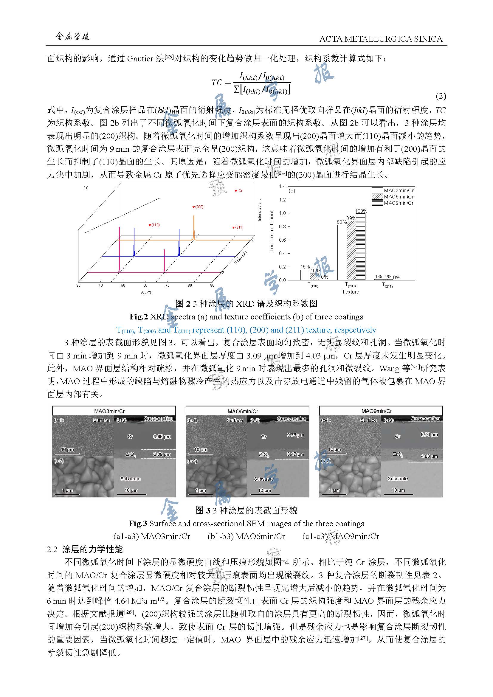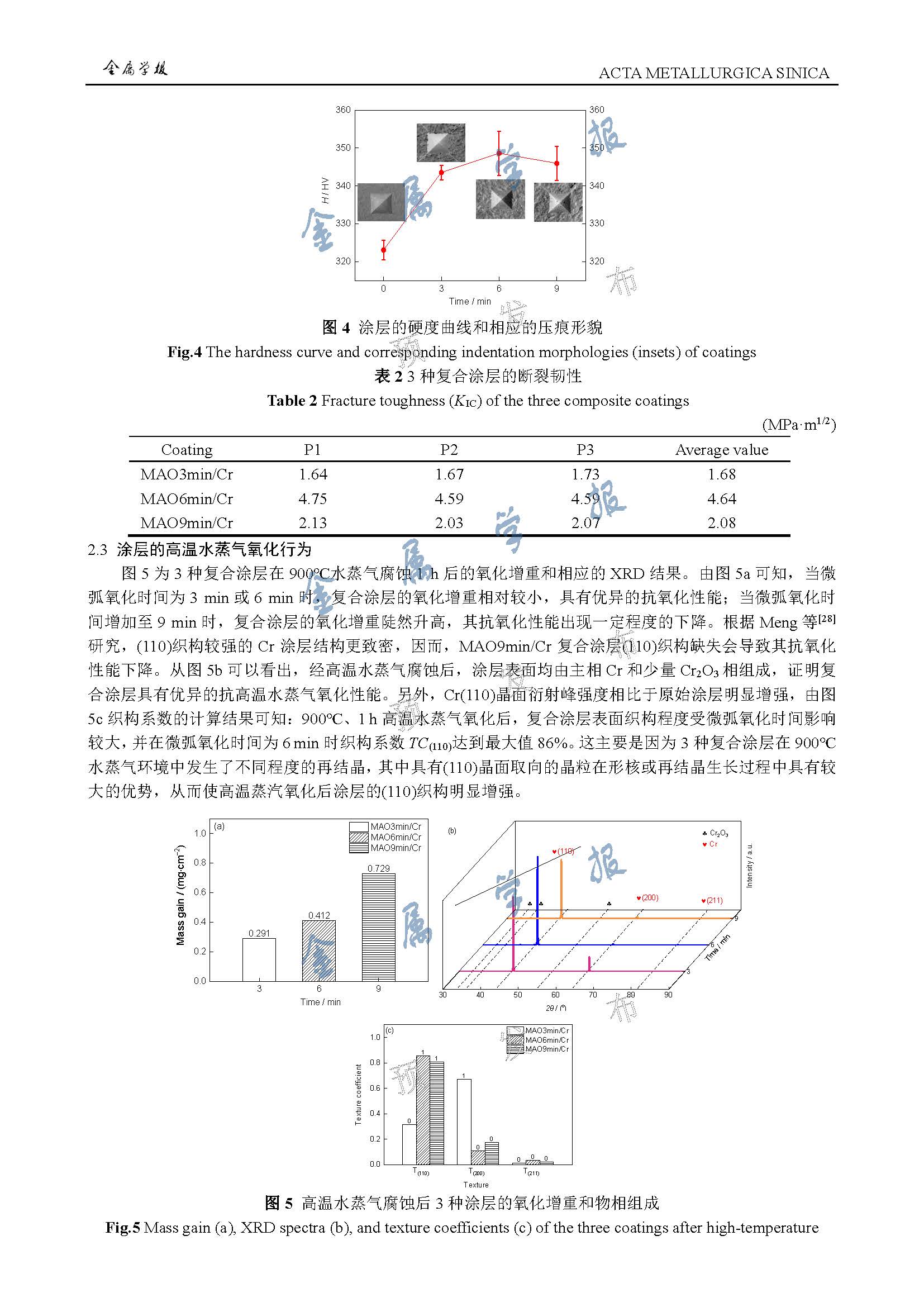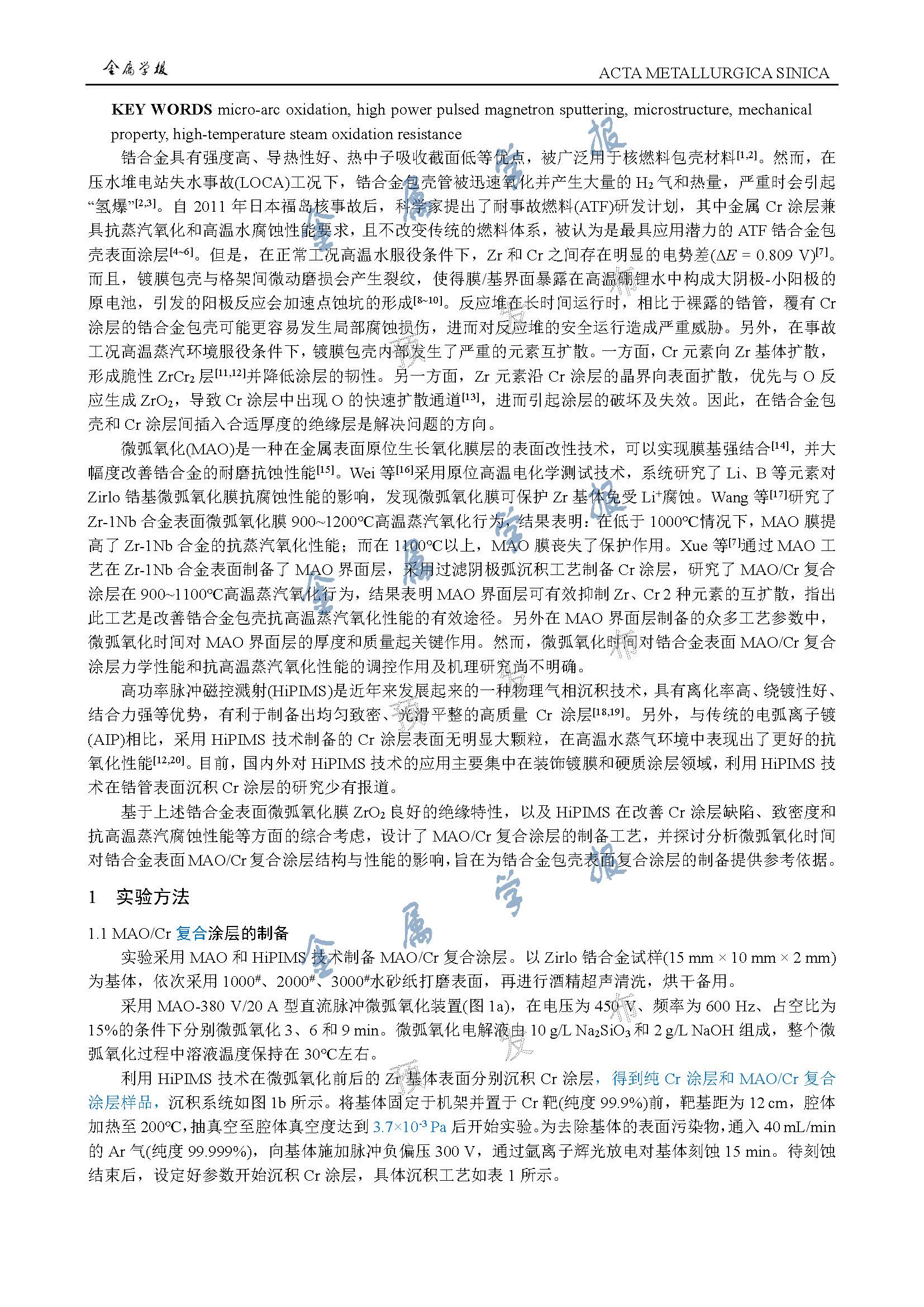 微弧氧化时间对锆合金表面 MAO/Cr 复合涂层结构与性能的影响
