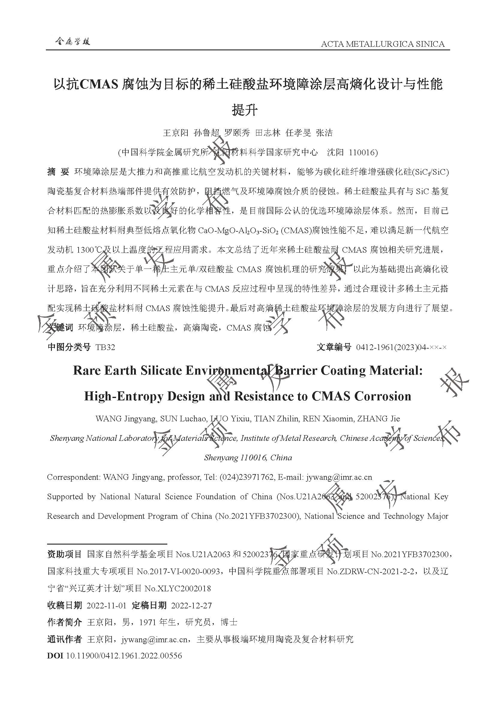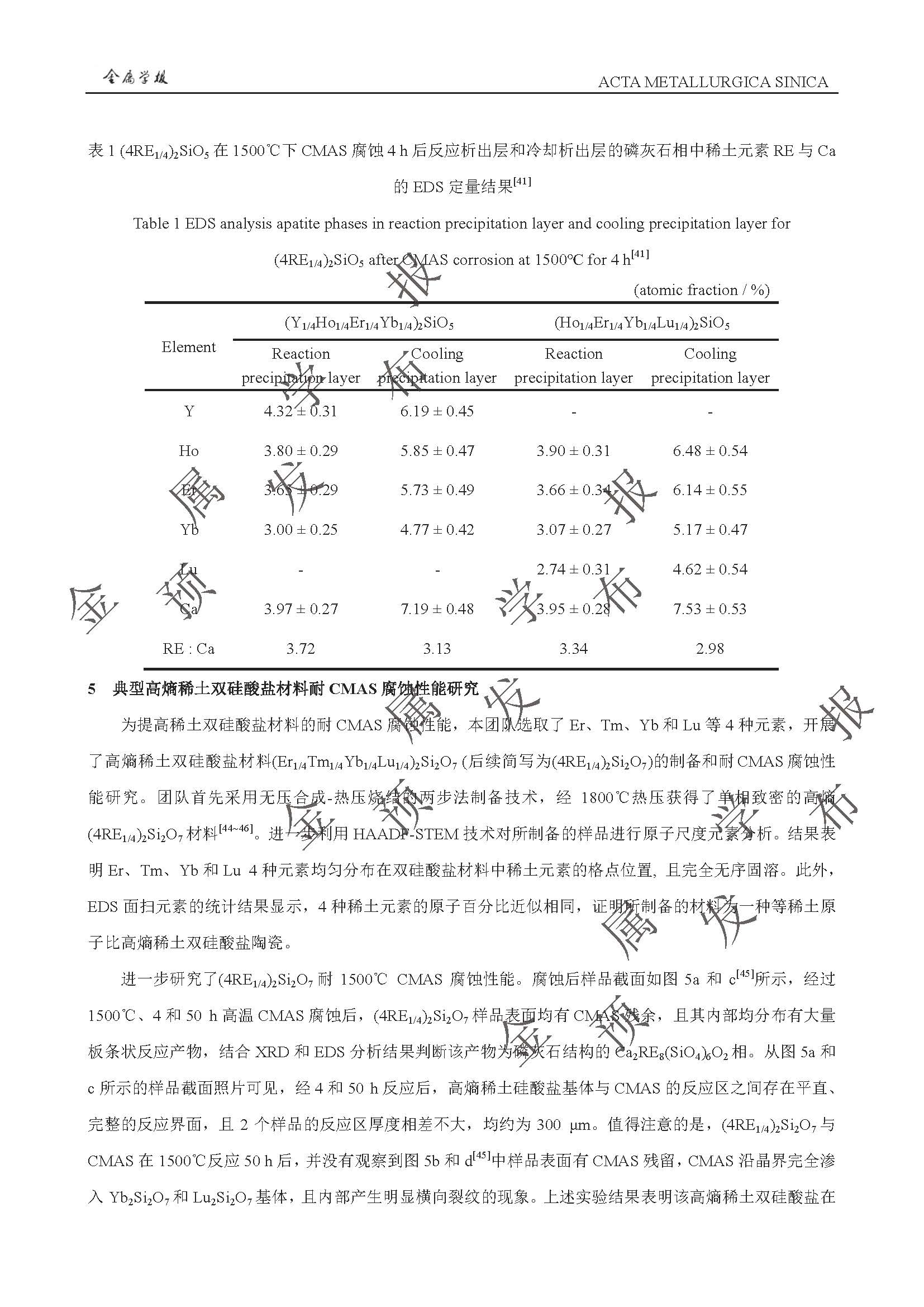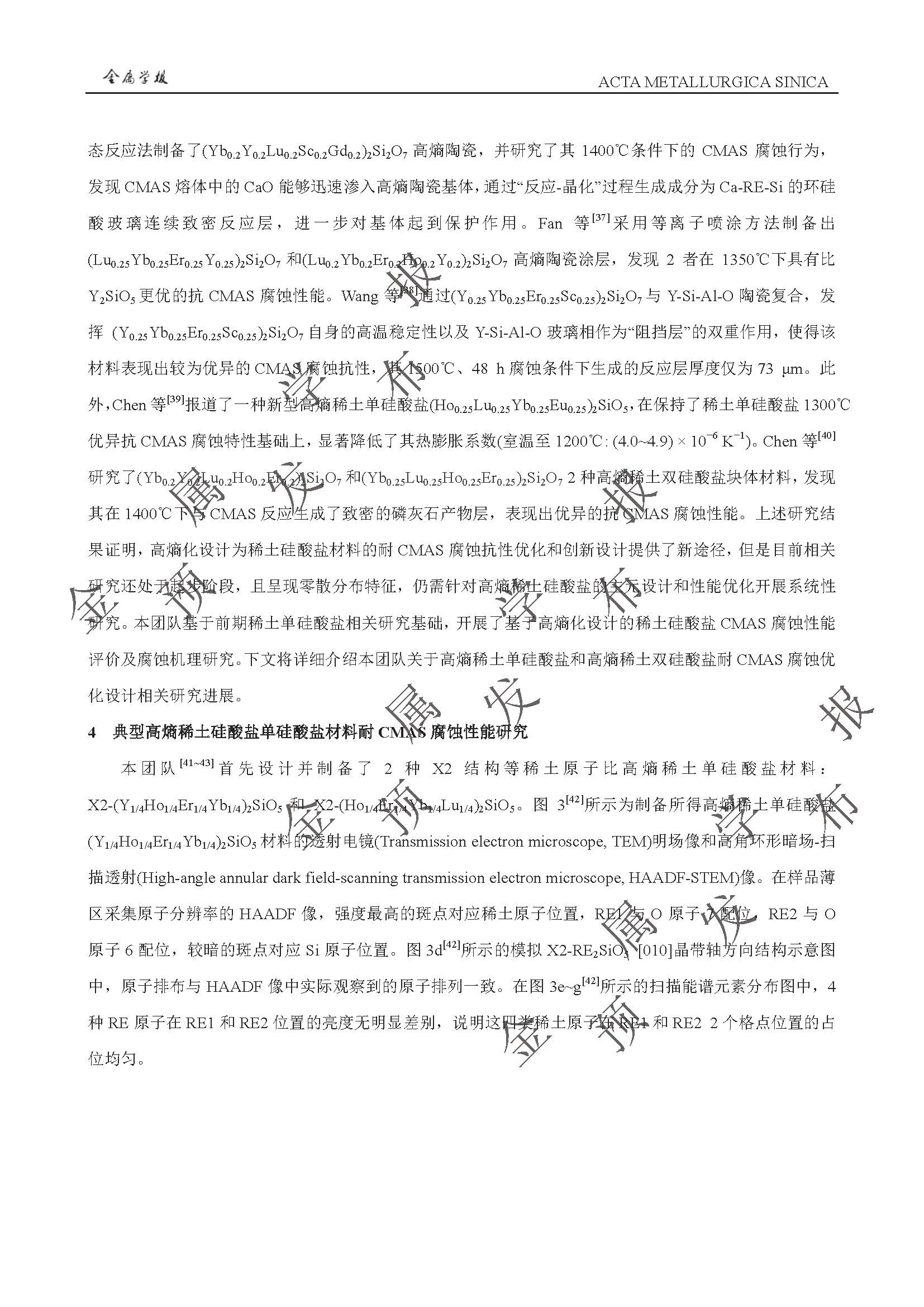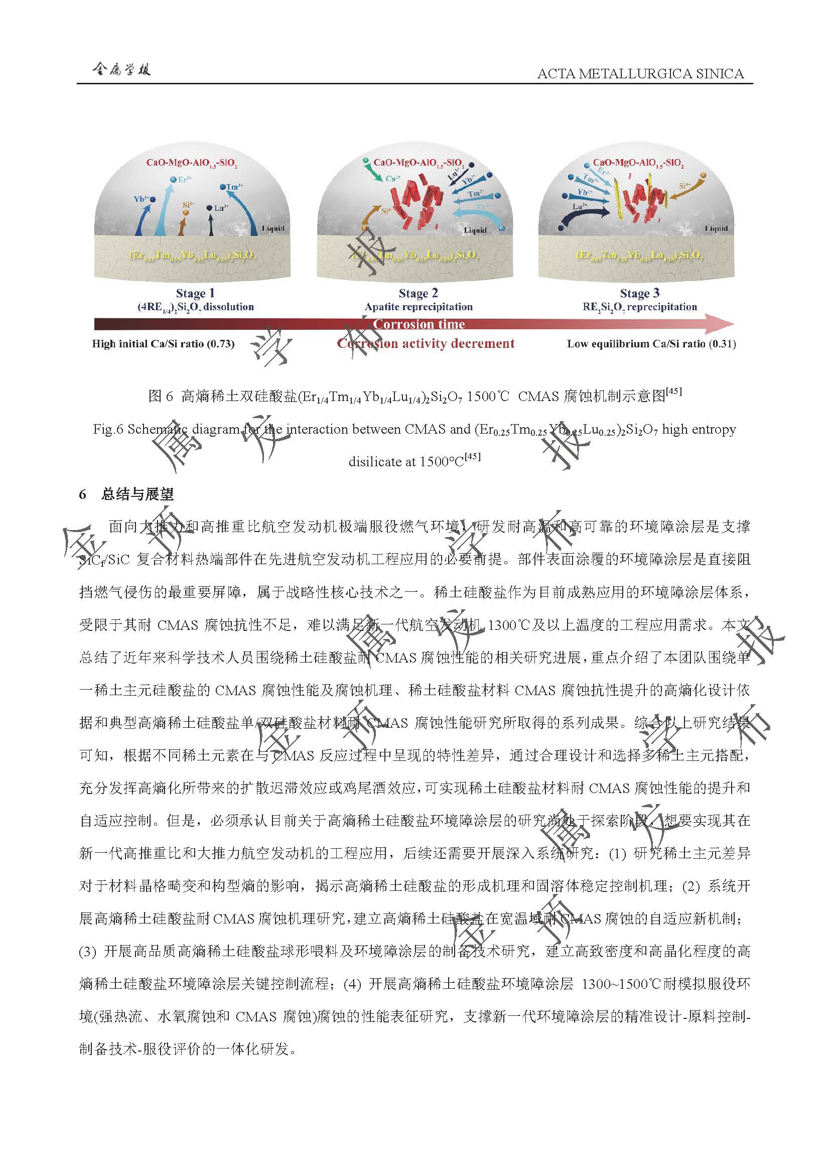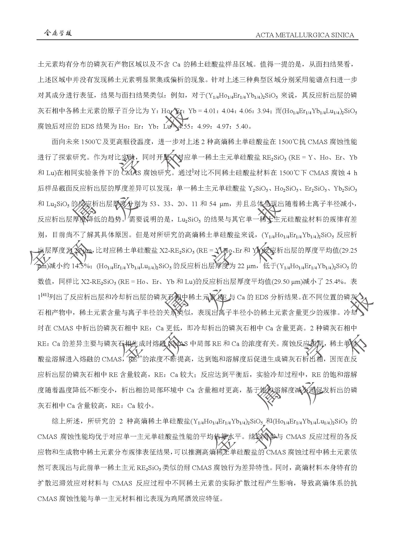 以抗CMAS 腐蚀为目标的稀土硅酸盐环境障涂层高熵化设计与性能提升