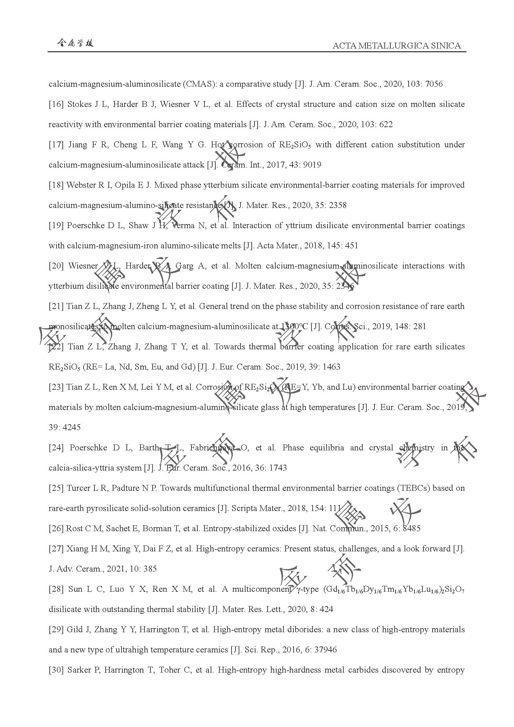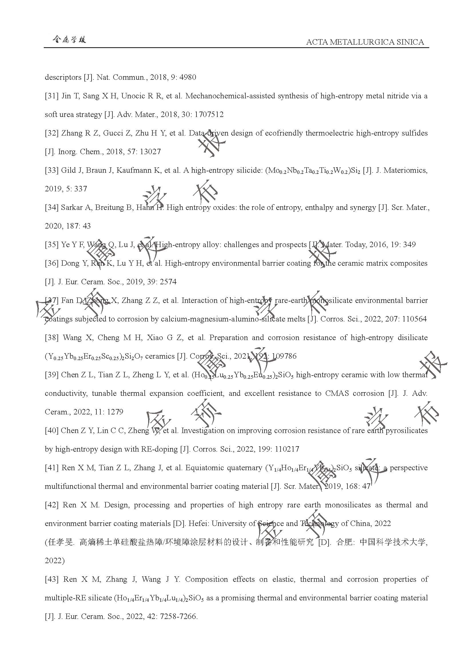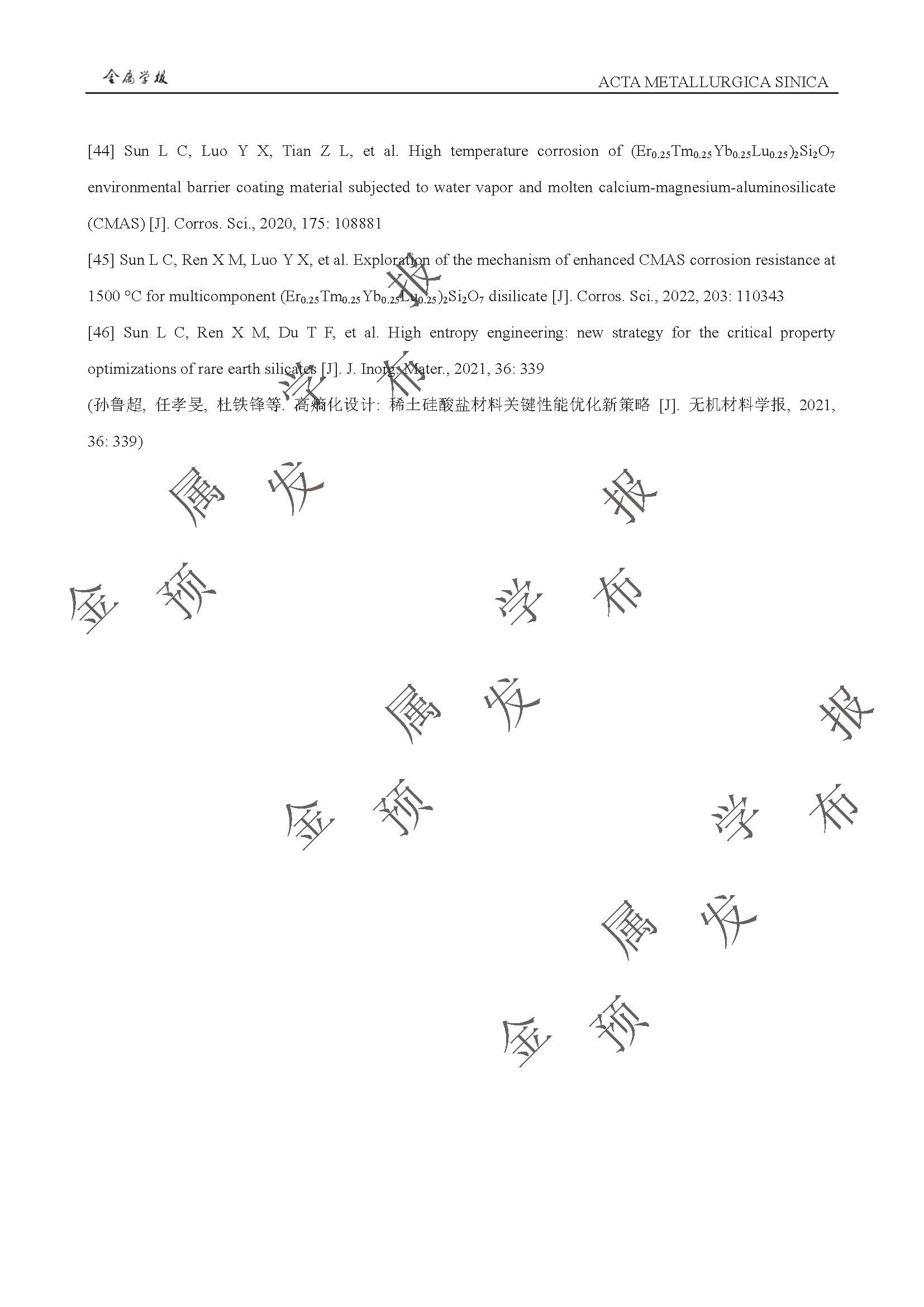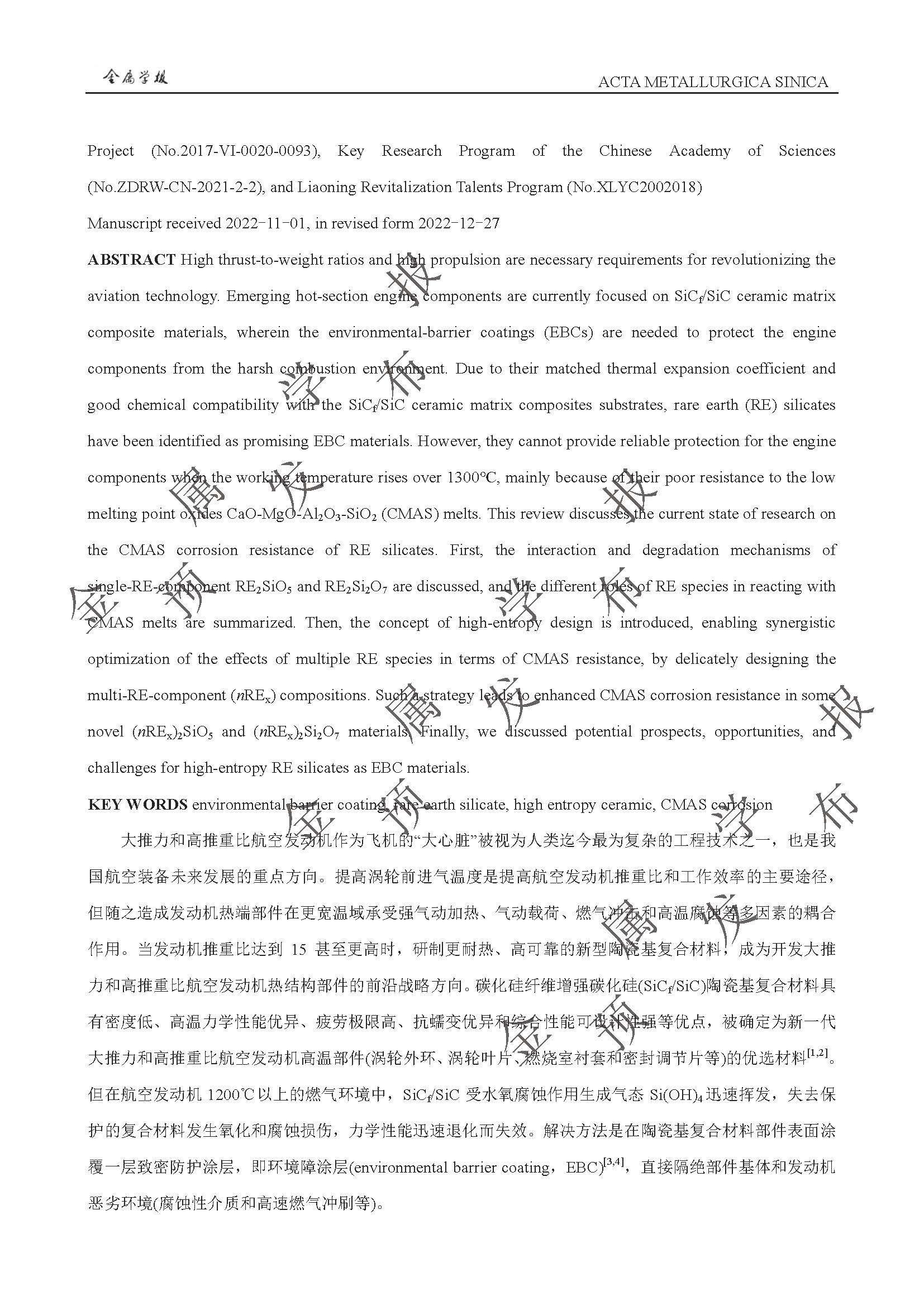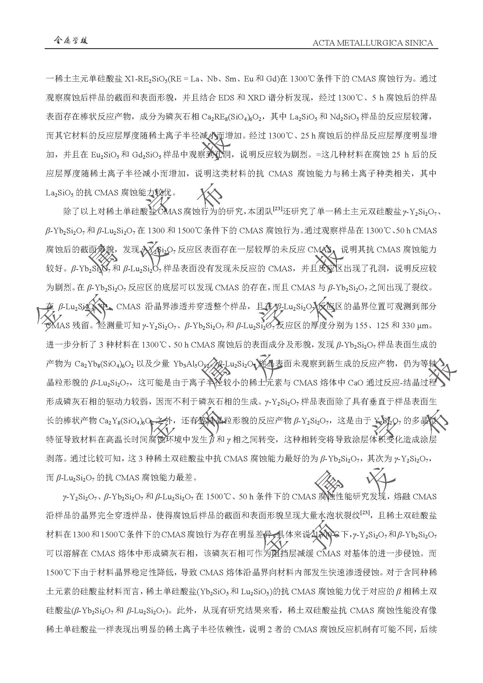 以抗CMAS 腐蚀为目标的稀土硅酸盐环境障涂层高熵化设计与性能提升