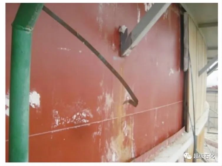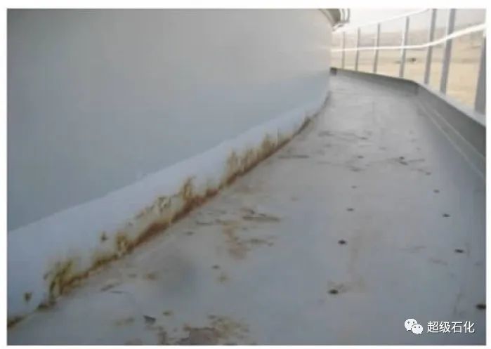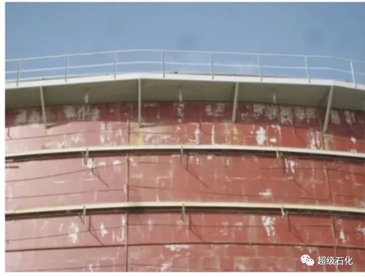 (5) 抗风圈踏板、扶梯的支撑等与罐壁焊接的附件位置,要做好与保温外护层的密封或采取导流措施,防止自然降雨通过支撑接触罐壁,造成保温层变潮湿进而形成腐蚀条件。