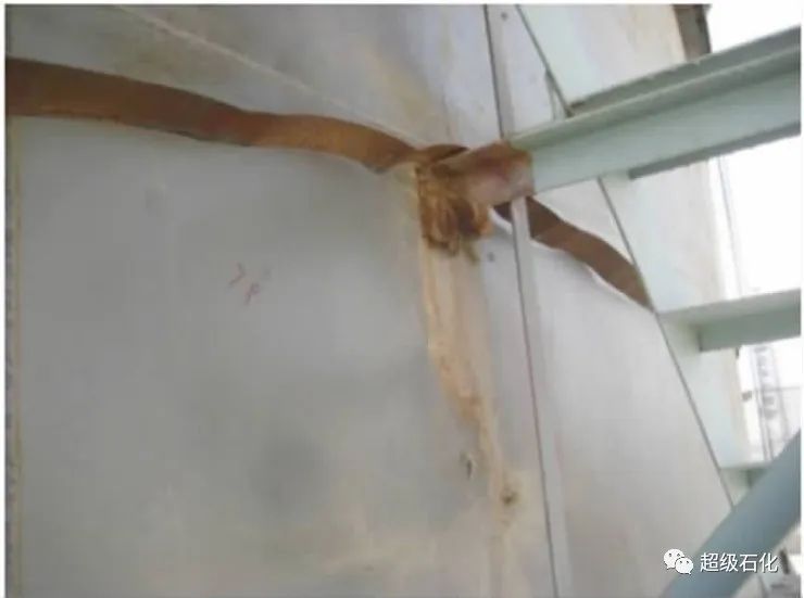 图4 抗风圈踏板与罐壁焊接部位的腐蚀状况