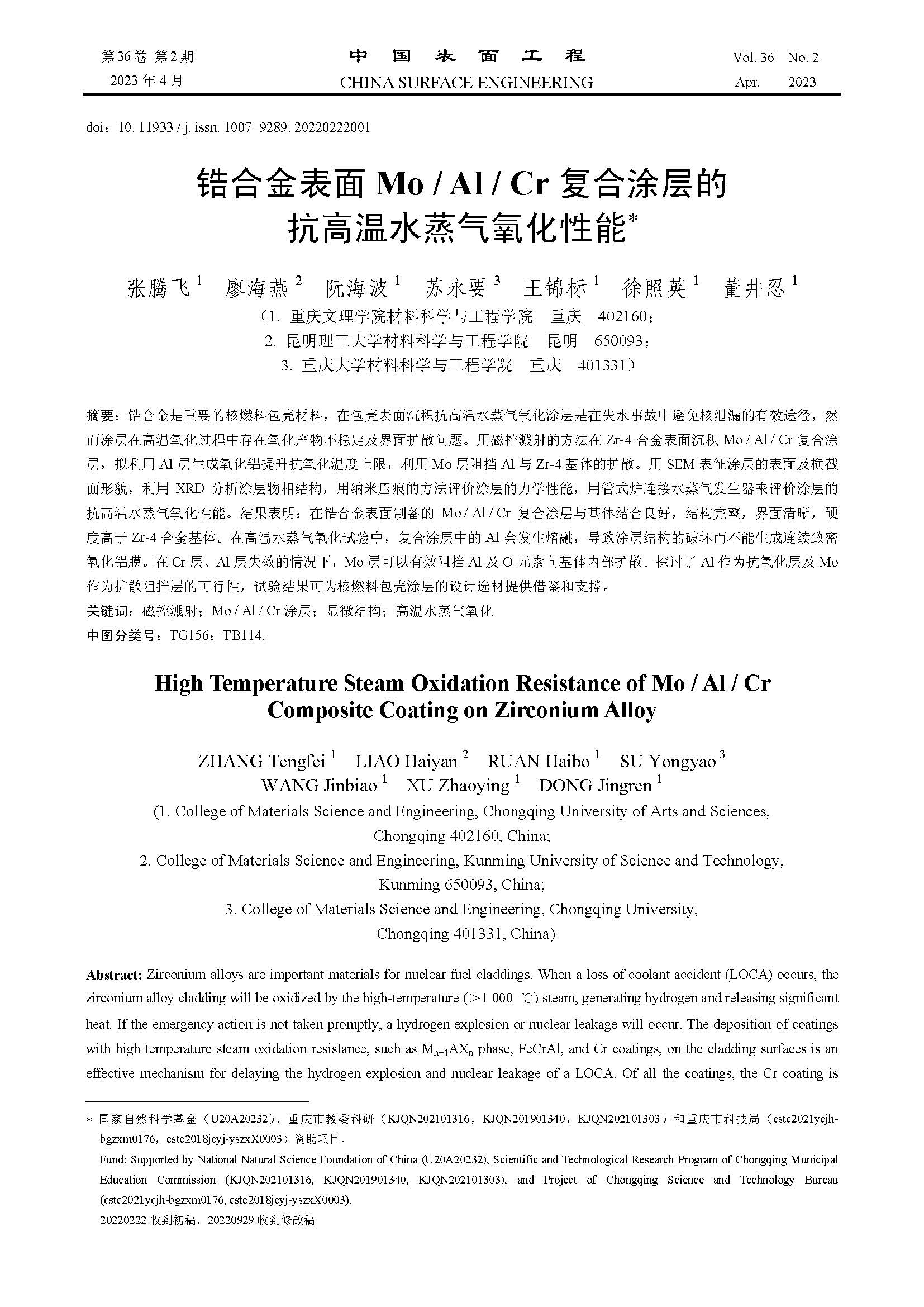 标签: 磁控溅射, Mo / Al / Cr 涂层, 显微结构