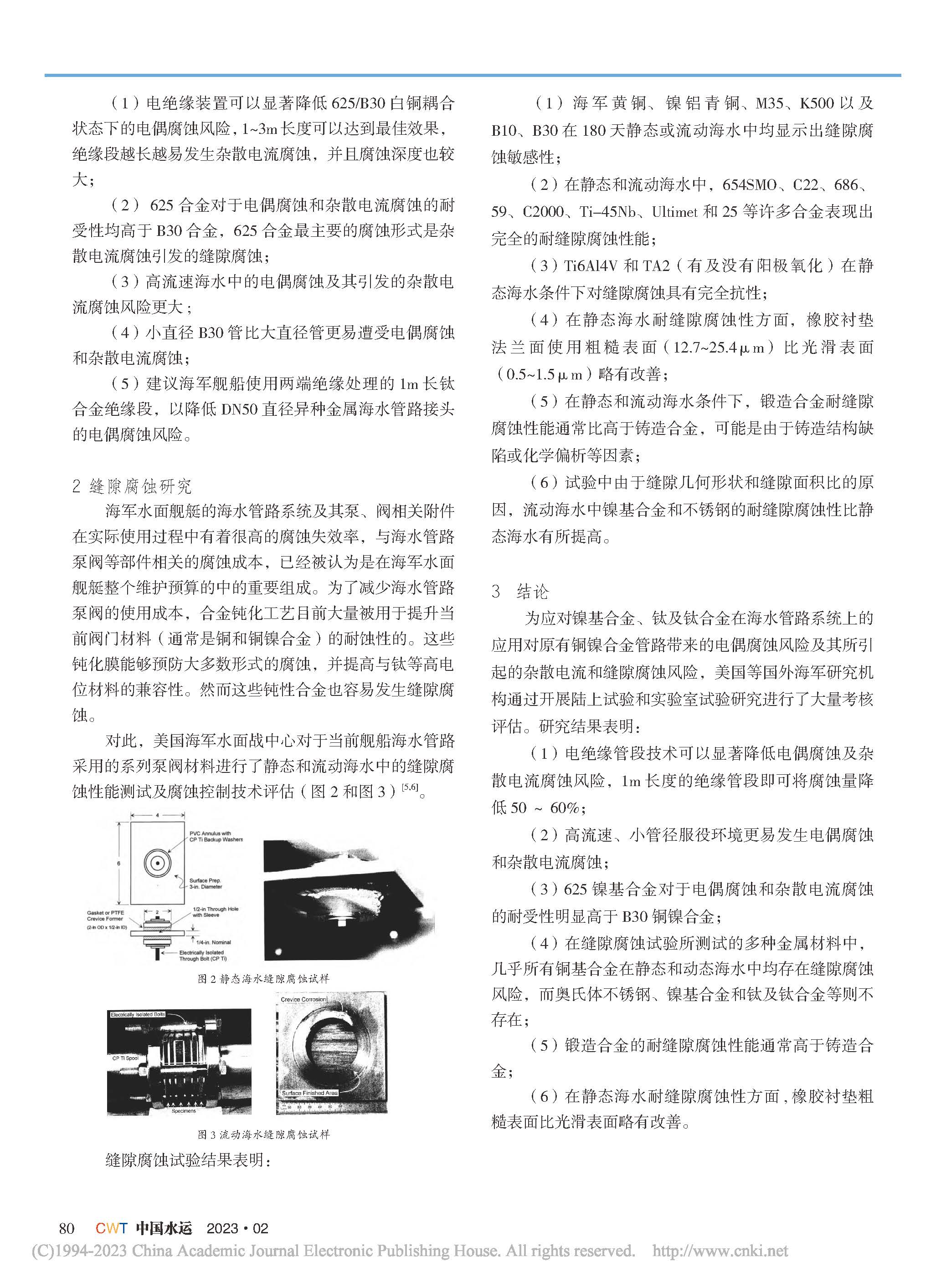 国外海军舰船海水管系杂散电流腐蚀和缝隙腐蚀研究概述