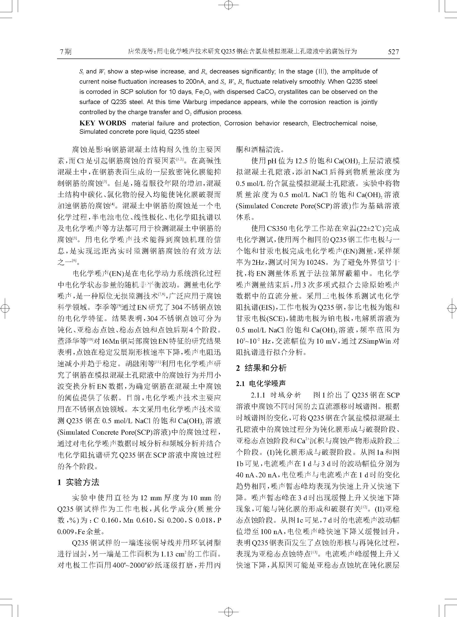 用电化学噪声技术研究Q235钢在含氯盐模拟混凝土孔隙液中的腐蚀行为