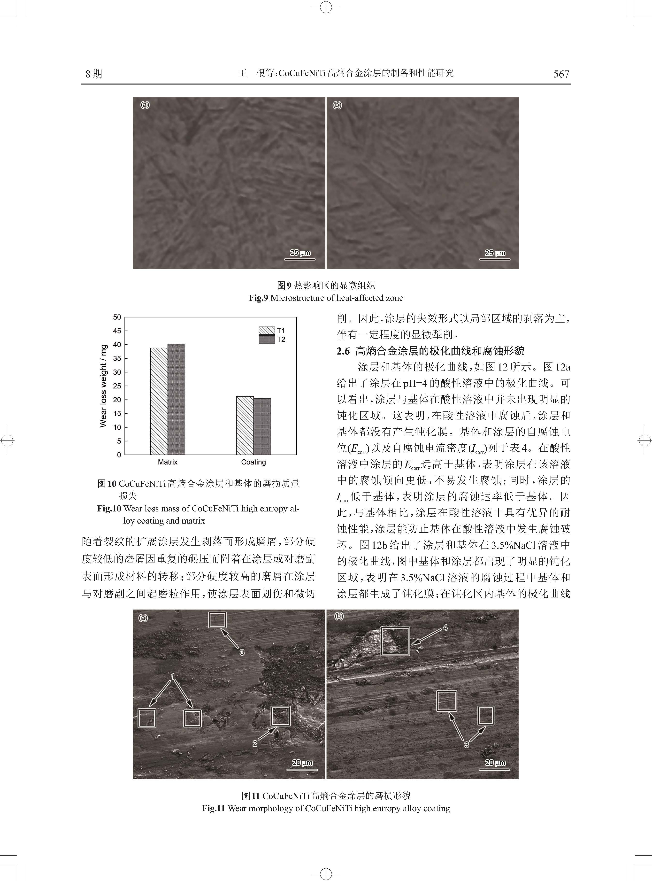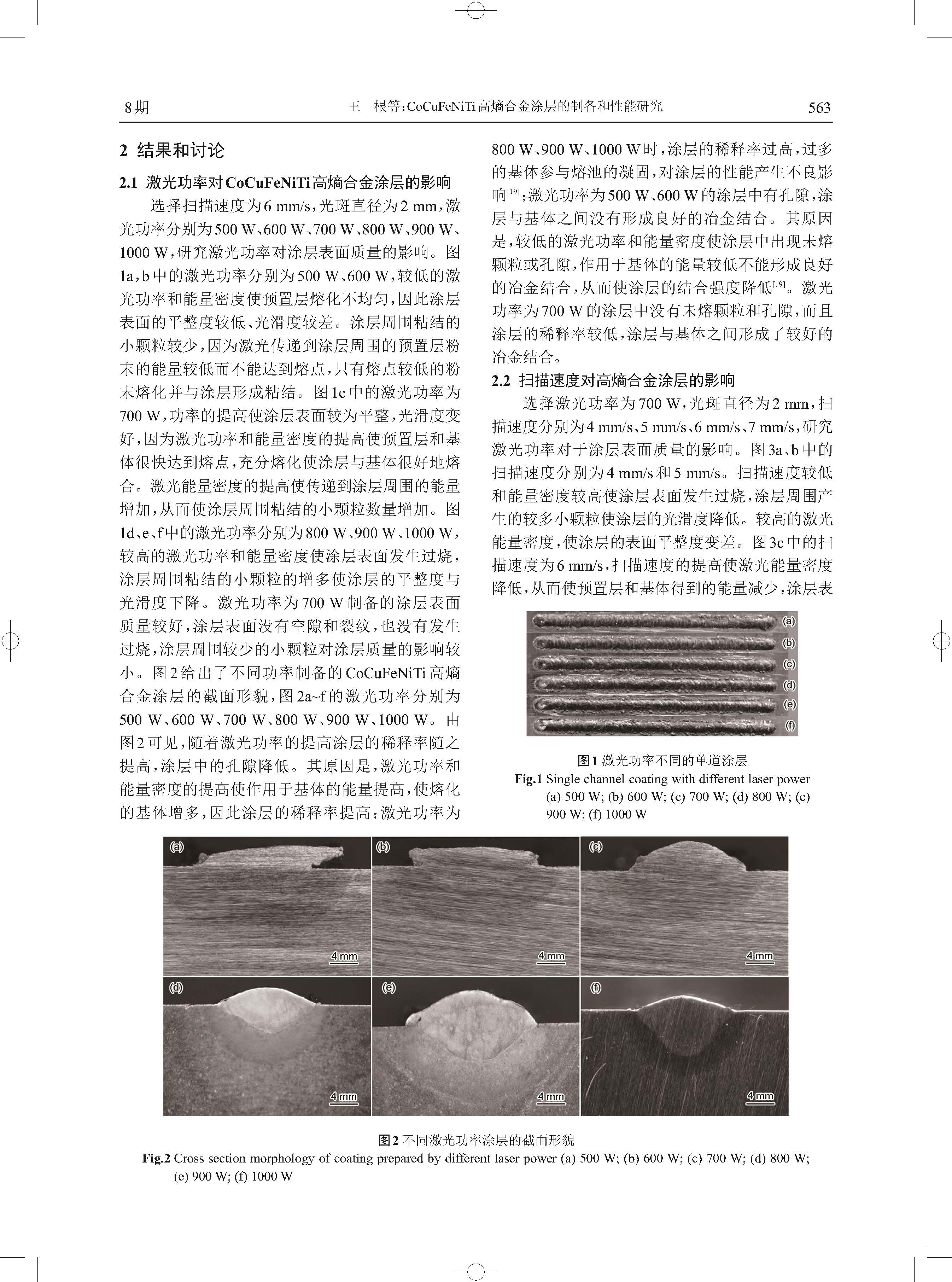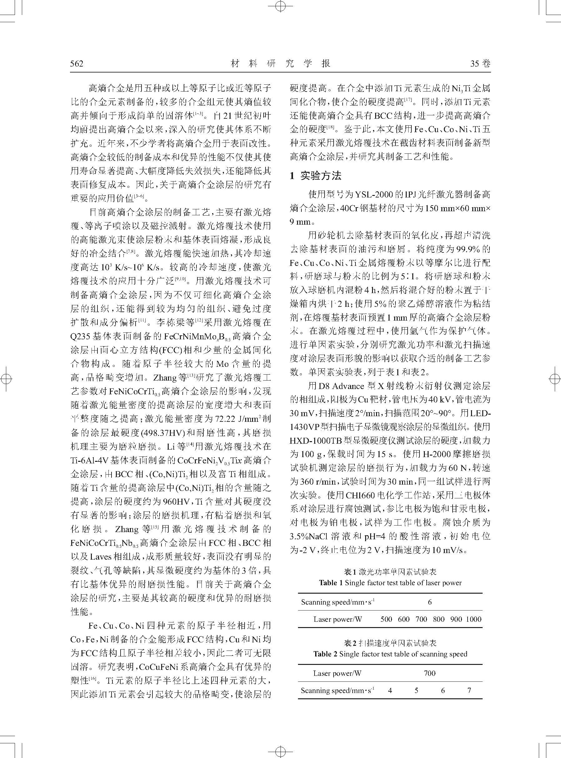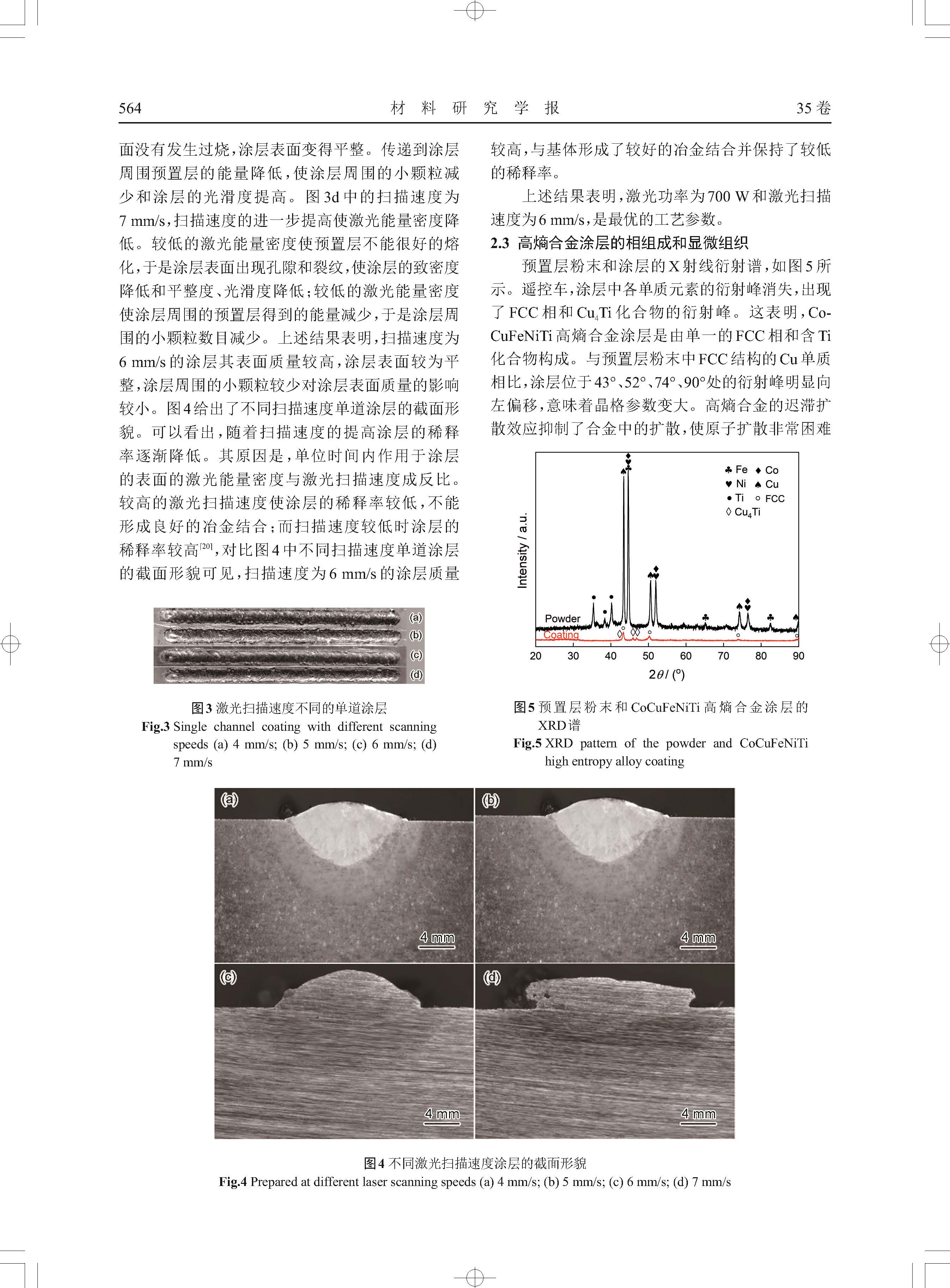 CoCuFeNiTi高熵合金涂层的制备和性能研究