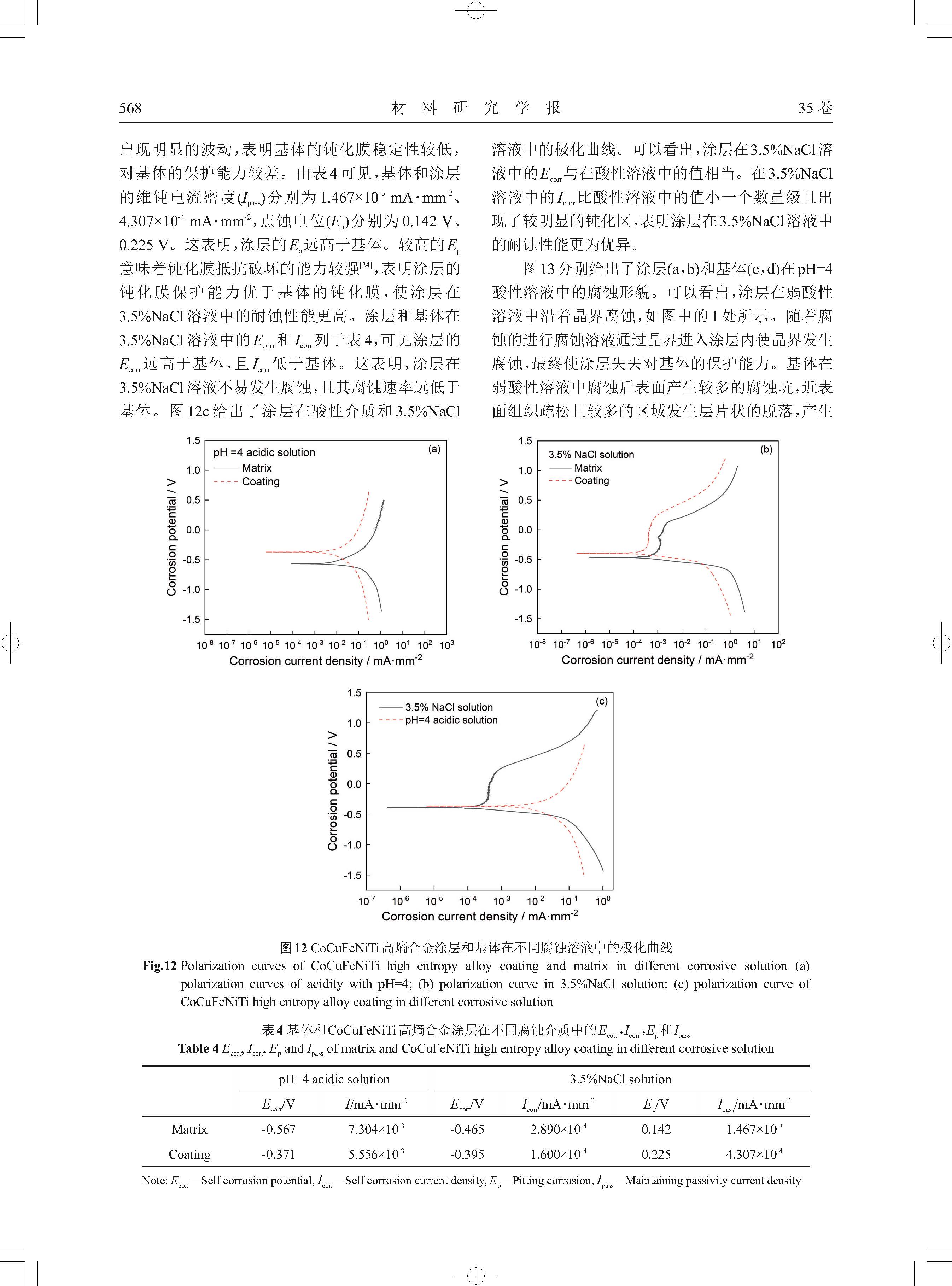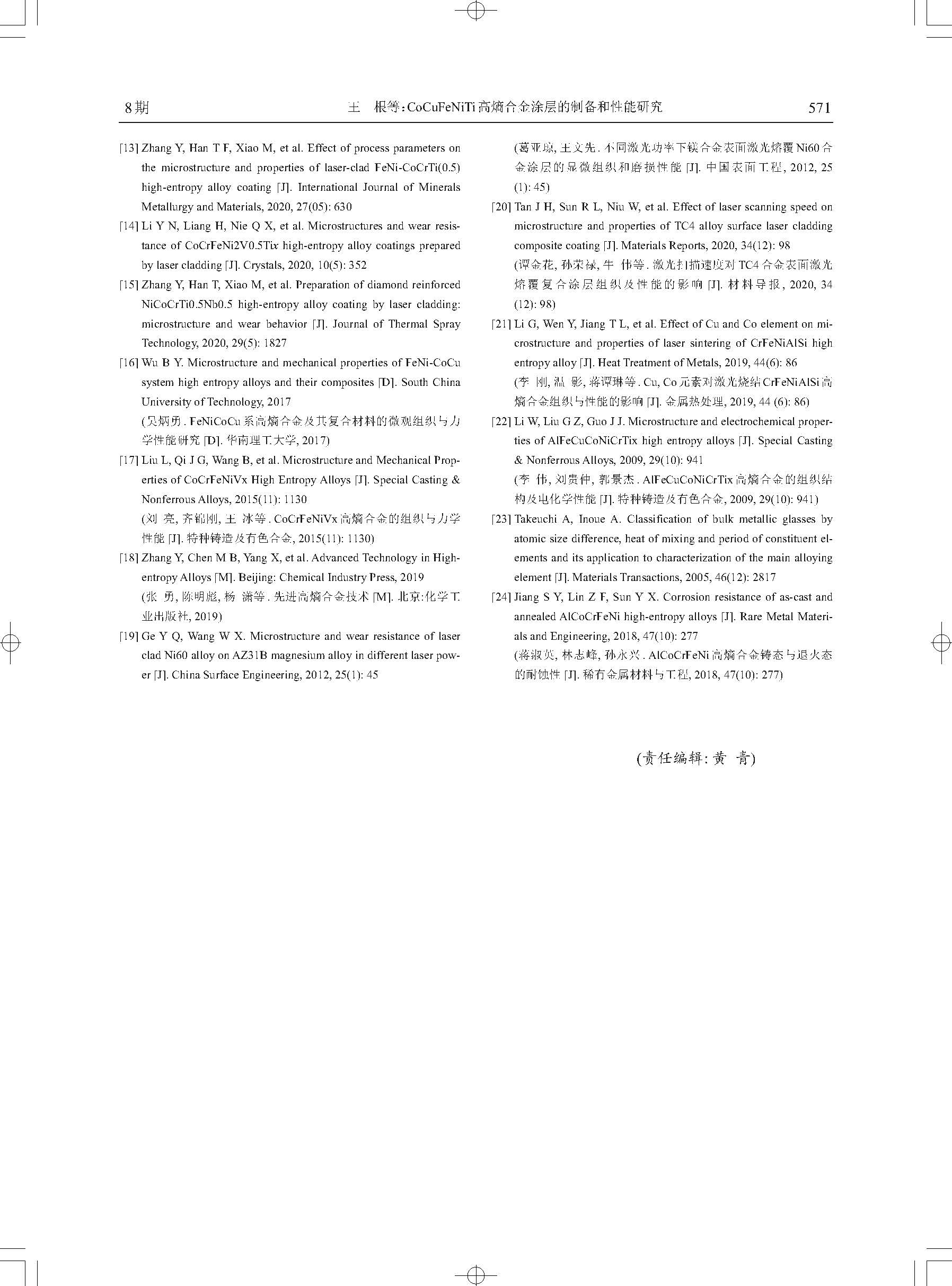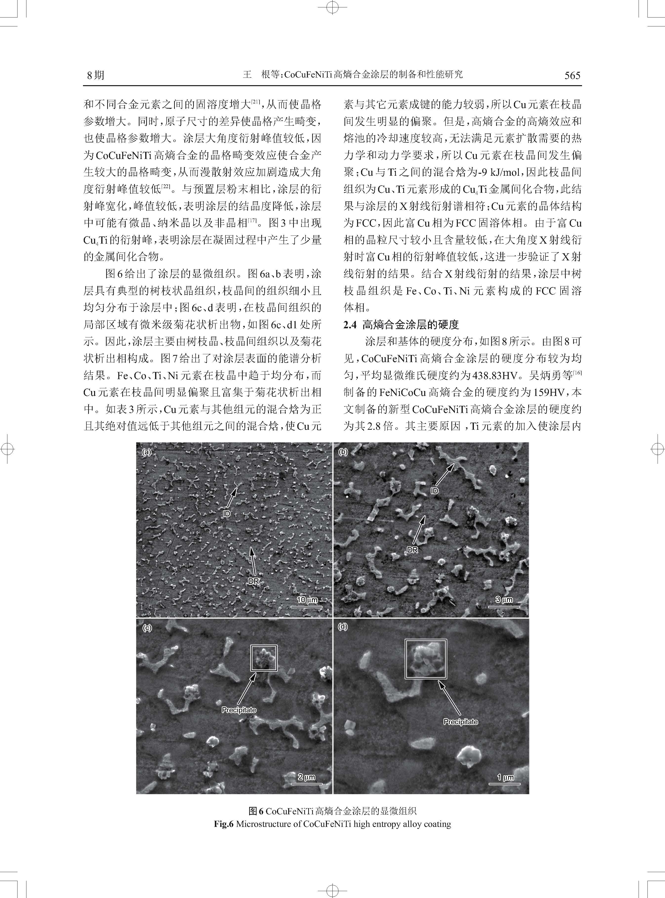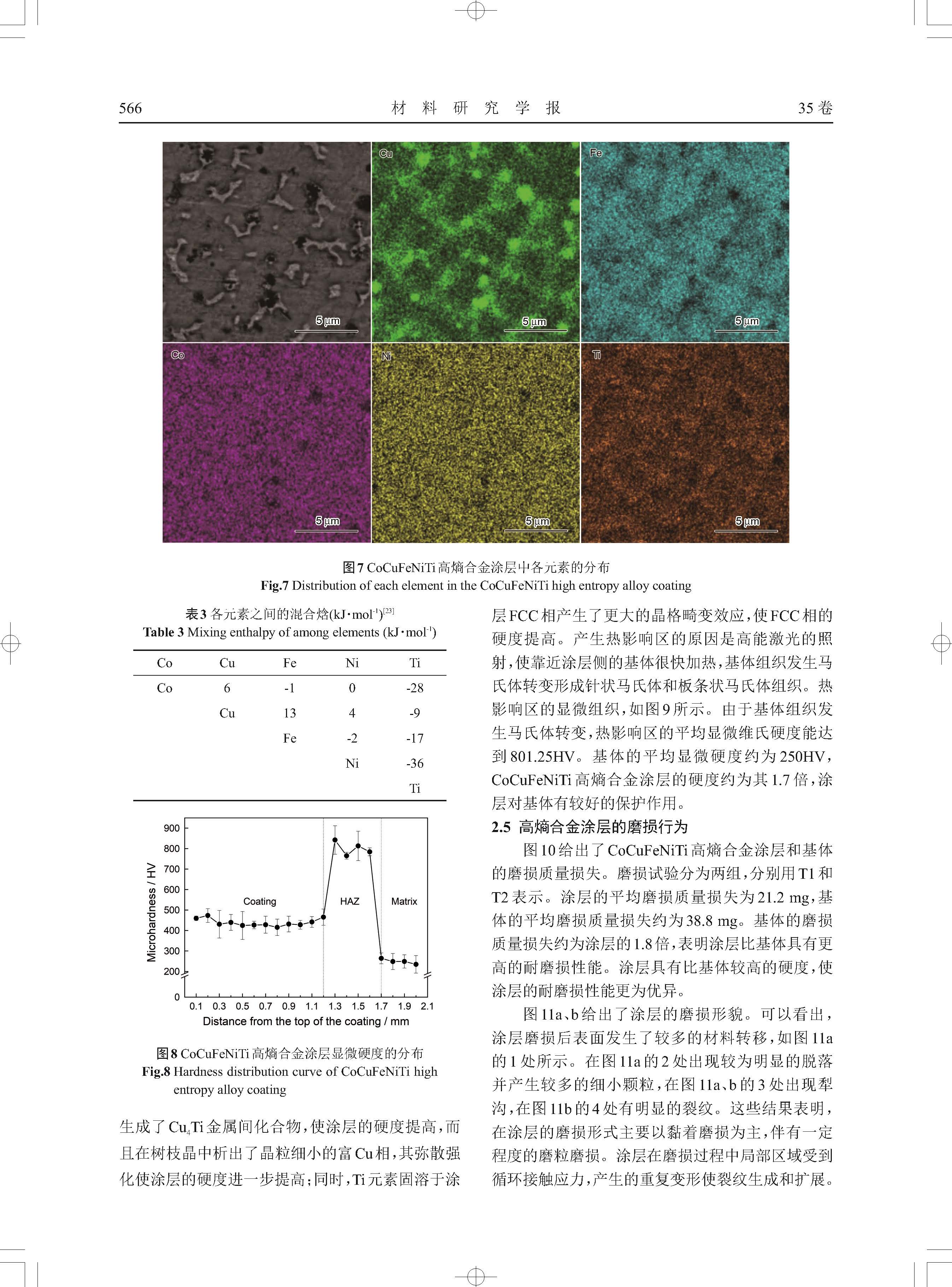 CoCuFeNiTi高熵合金涂层的制备和性能研究