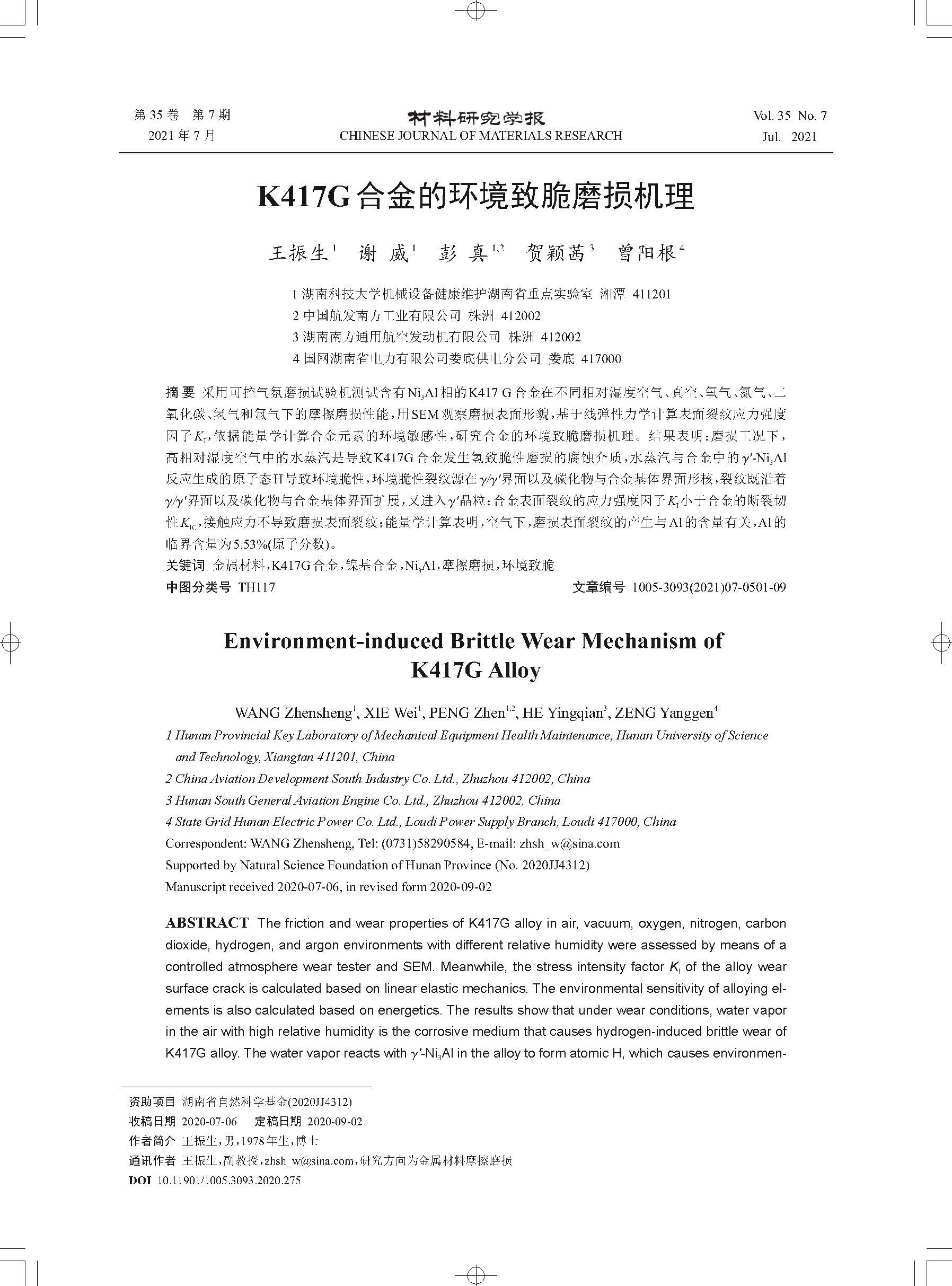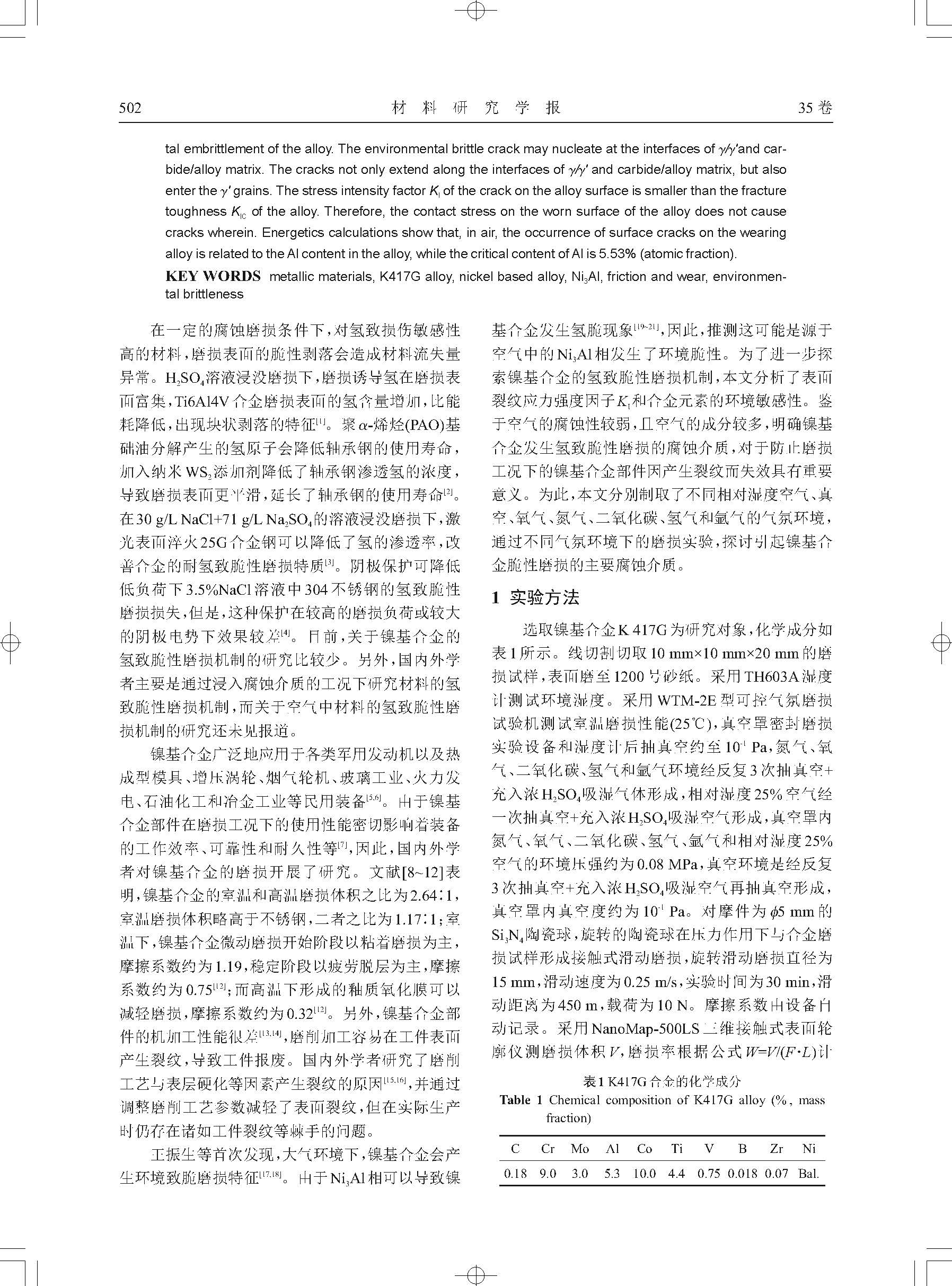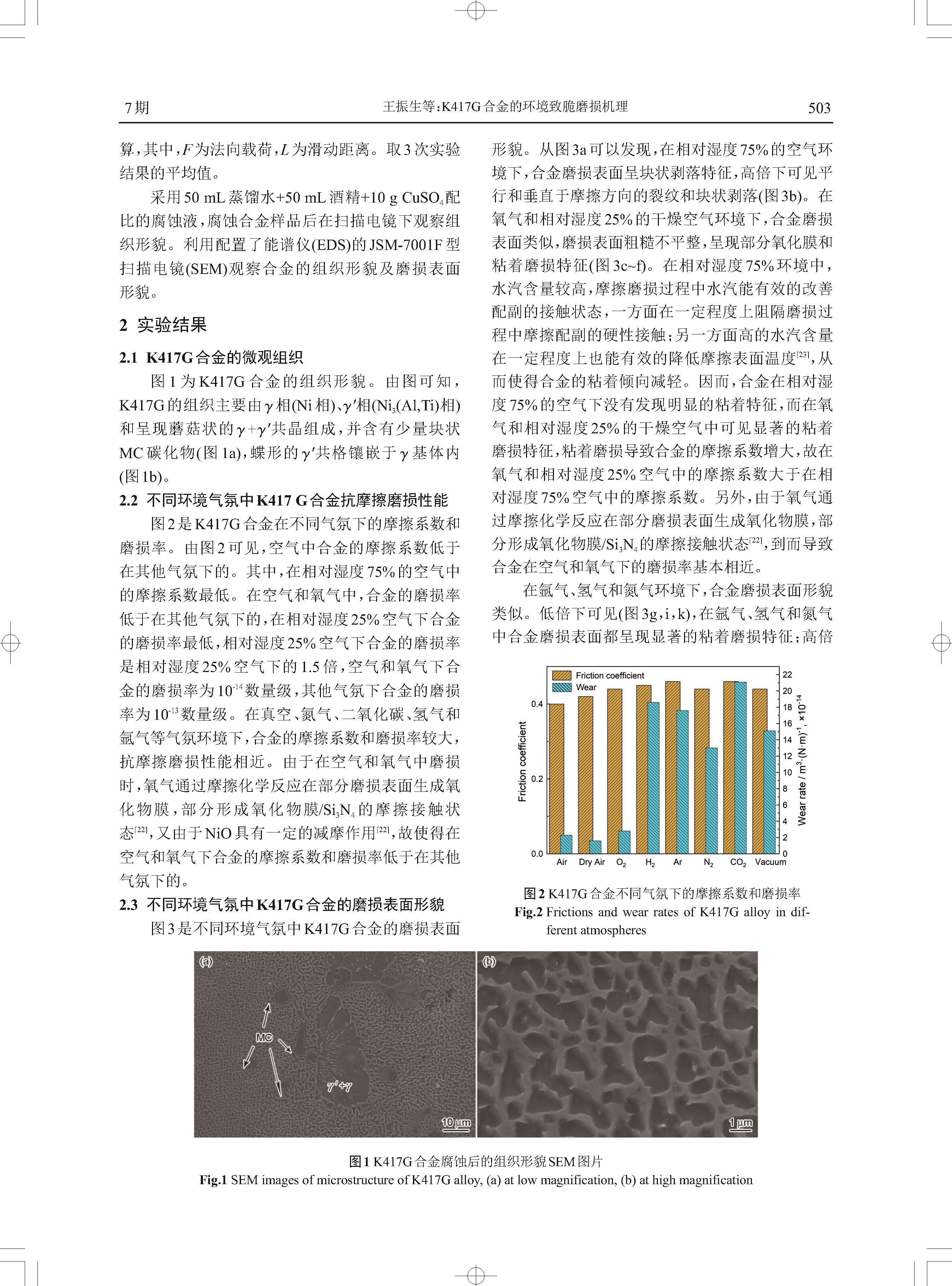 K417G合金的环境致脆磨损机理
