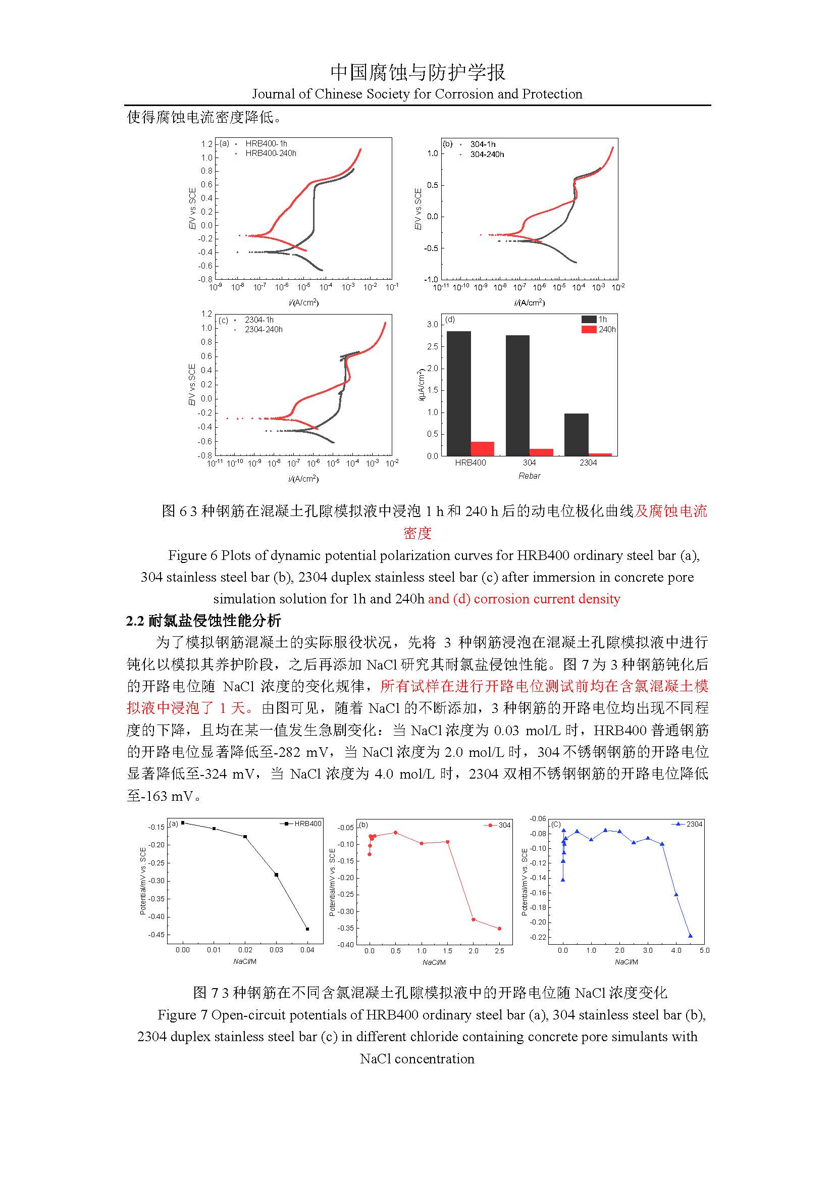 2304 双相不锈钢钢筋在混凝土孔隙模拟液中的电化学腐蚀行为研究
