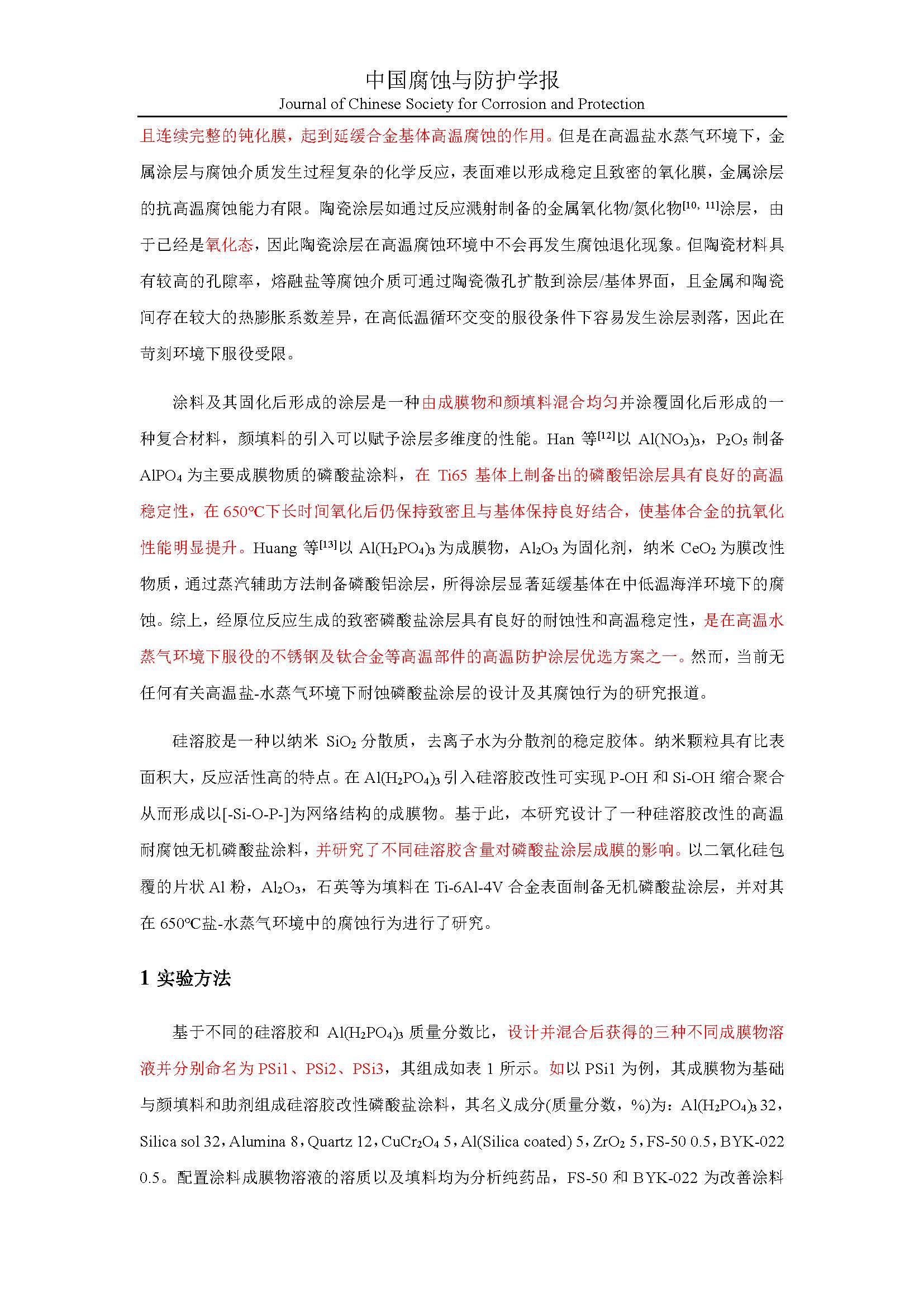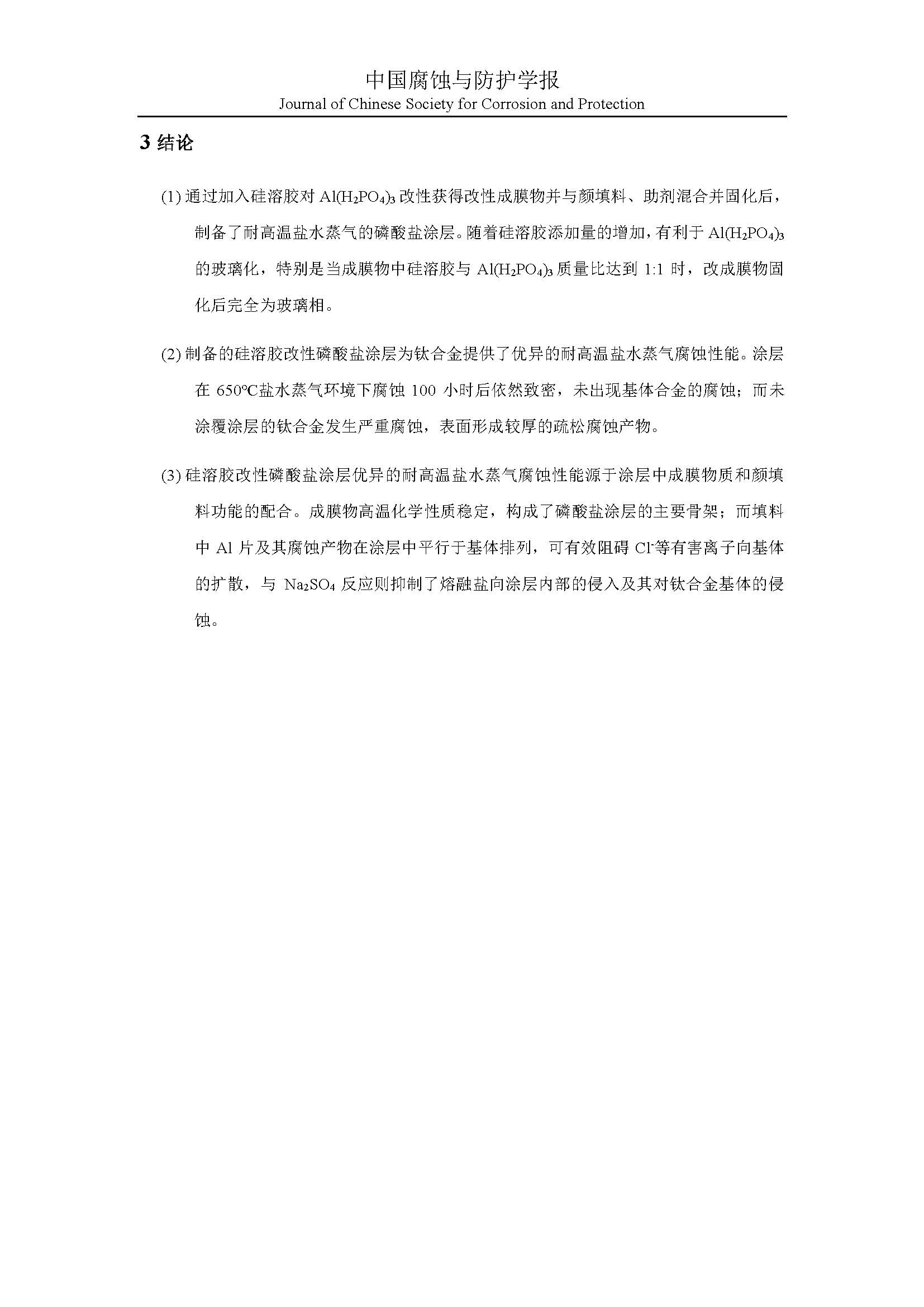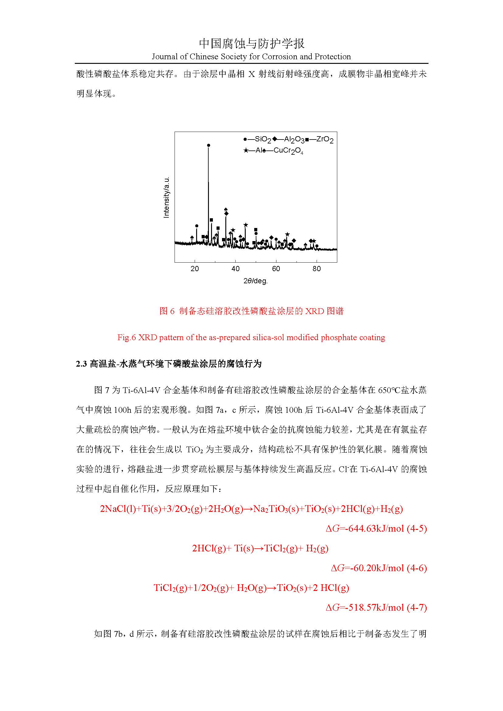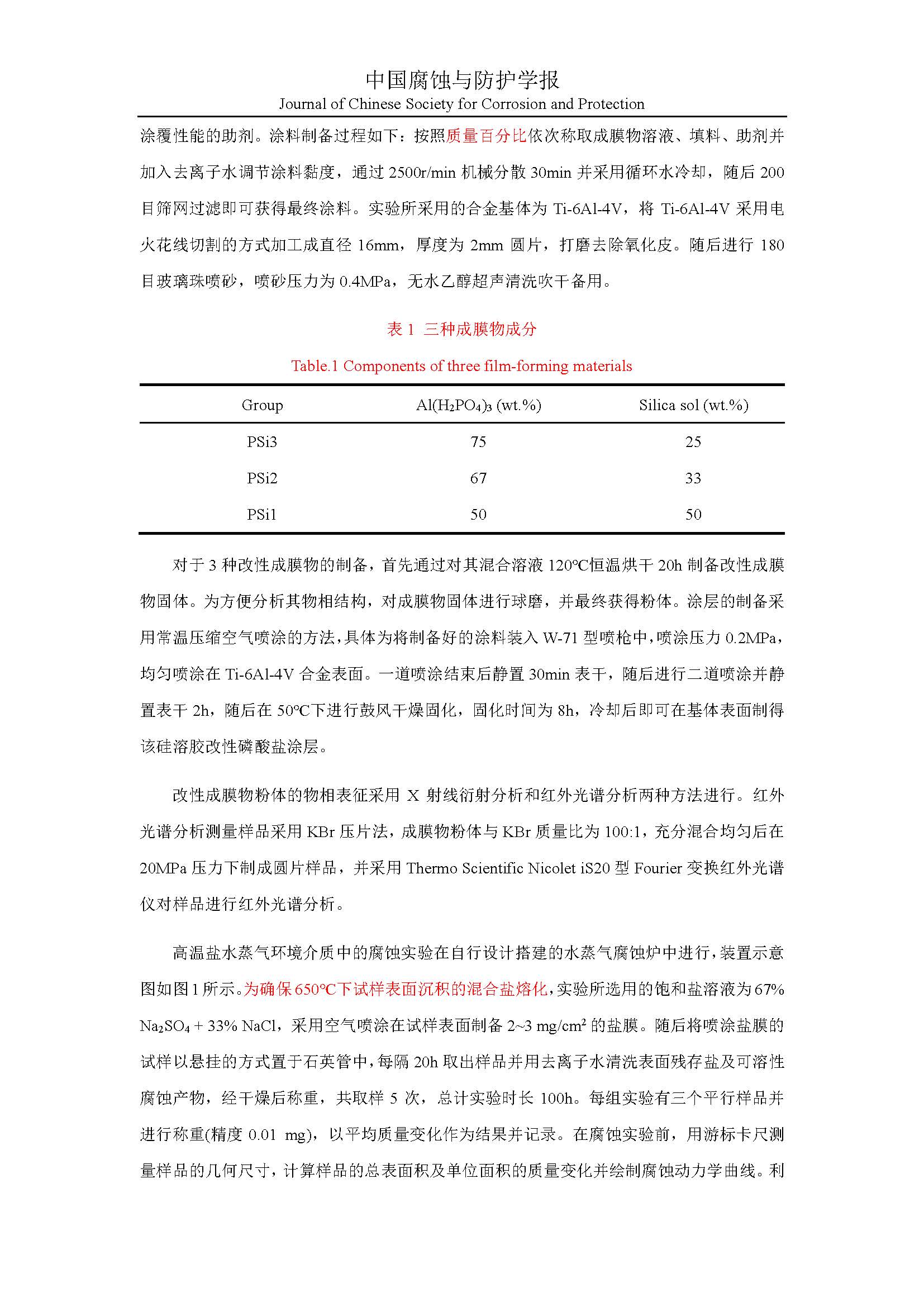 钛合金表面磷酸盐涂层的制备及在高温盐水蒸气环境中的腐蚀行为研究