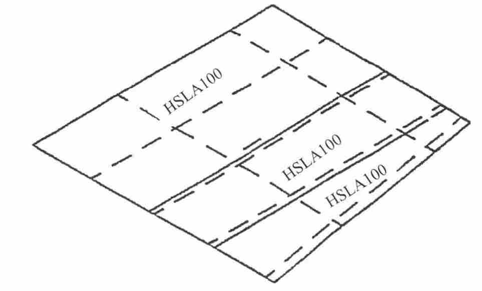 图3 HSLA-100 甲板应用示意图 (虚线表示背面结构)