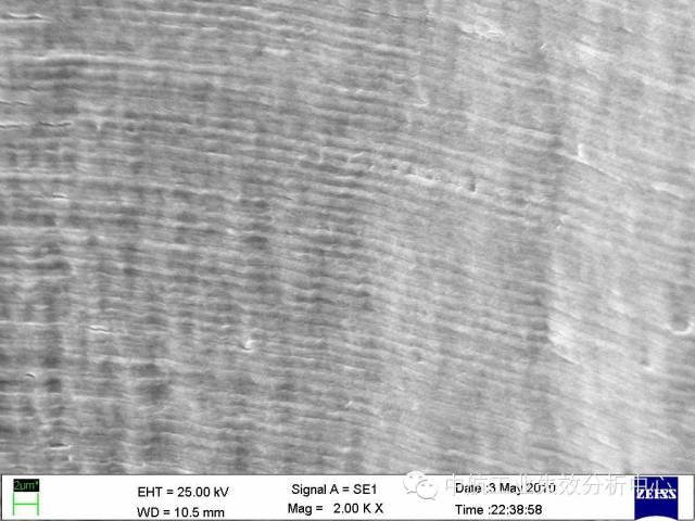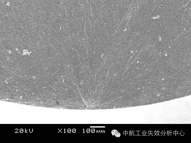 材料在受到低于断裂强度的交变应力作用下,发生的脆性断裂,称之为疲劳,常可见疲劳条带(或称疲劳辉纹)的典型特征。 对于疲劳源区而言,最简单的是收敛类源区: 源区附近呈放射性,其收敛位置即为源区。 源区附近呈弧线式,其圆心位置即为源区。 这类源区附近的断面一般较为平坦,之后断面的起伏度和粗糙度均会增大。收敛类的疲劳起源占疲劳失效的较大比例,另一种情况,疲劳源区则为解理面或准/类解理面交错,常见于铜合金和高温合金,部分钛合金也有该情况。 高温合金源区的解理特征 铜合金源区的类解理特征 钛合金源区的解理特征 这类的源区附近断面由于交错分布多个解理面,因此比较粗糙,之后的疲劳扩展前、中期则会转为平坦,最后失稳后的快速扩展又重新变得起伏大和粗糙。此外,有些疲劳并不一定从试样表面起源,有可能在试样内部,此时往往可能由于内部存在缺陷或亚表面处于特殊应力状态导致。 有的起源也不仅仅在一处位置起源,可能在多个位置均萌生疲劳源,这时我们就可以看到多个疲劳源之间产生类似台阶的特征,这是由于多处萌生裂纹并扩展过程中,不可能在一个平面上扩展,当裂纹相互交汇到一起时,必然通过剪切撕裂的方式使不同的扩展平面连接起来,从而形成台阶。 试样边缘多个交汇台阶 以上说了这么多,大家是不是反而晕菜了?怎么好像什么模式都有,我们到底应该如何判断? 首先,当然是通过棱线的收敛去判断,毕竟绝大多数的疲劳都有该特征。 其次,看看是不是铜合金、高温合金这种特殊的合金,对于他们来说,找解理面就差不多了。 再次,关注台阶,台阶必然意味着有多条裂纹交汇在一起,也就是说,一个台阶的两侧存在源区的可能性很大。 然后,我们还有几个辅助判断的手段: 第一,条带方向。几乎所有的疲劳断裂都可以观察到条带特征,此时,条带弧线的圆心位置,就是指向源区了。但是,需要注意的是,条带只是极微观的特征,而且在局部位置由于应力改变,可能造成条带扩展方向转变的情况。因此,该方法只能作为辅助判别手段。 第二,瞬断区判别。源区实在不好找,可以先去找瞬断区,因为瞬断区往往以韧性断裂模式为主,一般可见与疲劳区不同的韧窝特征。此外,瞬断区由于主要在剪切力作用下快速断裂,一般与主断面存在一定的倾斜角度,比较好辨别。找到瞬断区后,与之相对的位置一般就是源区了。 该断口左侧即为瞬断区,由此推出右侧为源区 看到这儿,大家是不是觉得又明白了一些呢?那么下面我们来检验一下自己吧:请问下图断口的源区在哪?有几处源区?