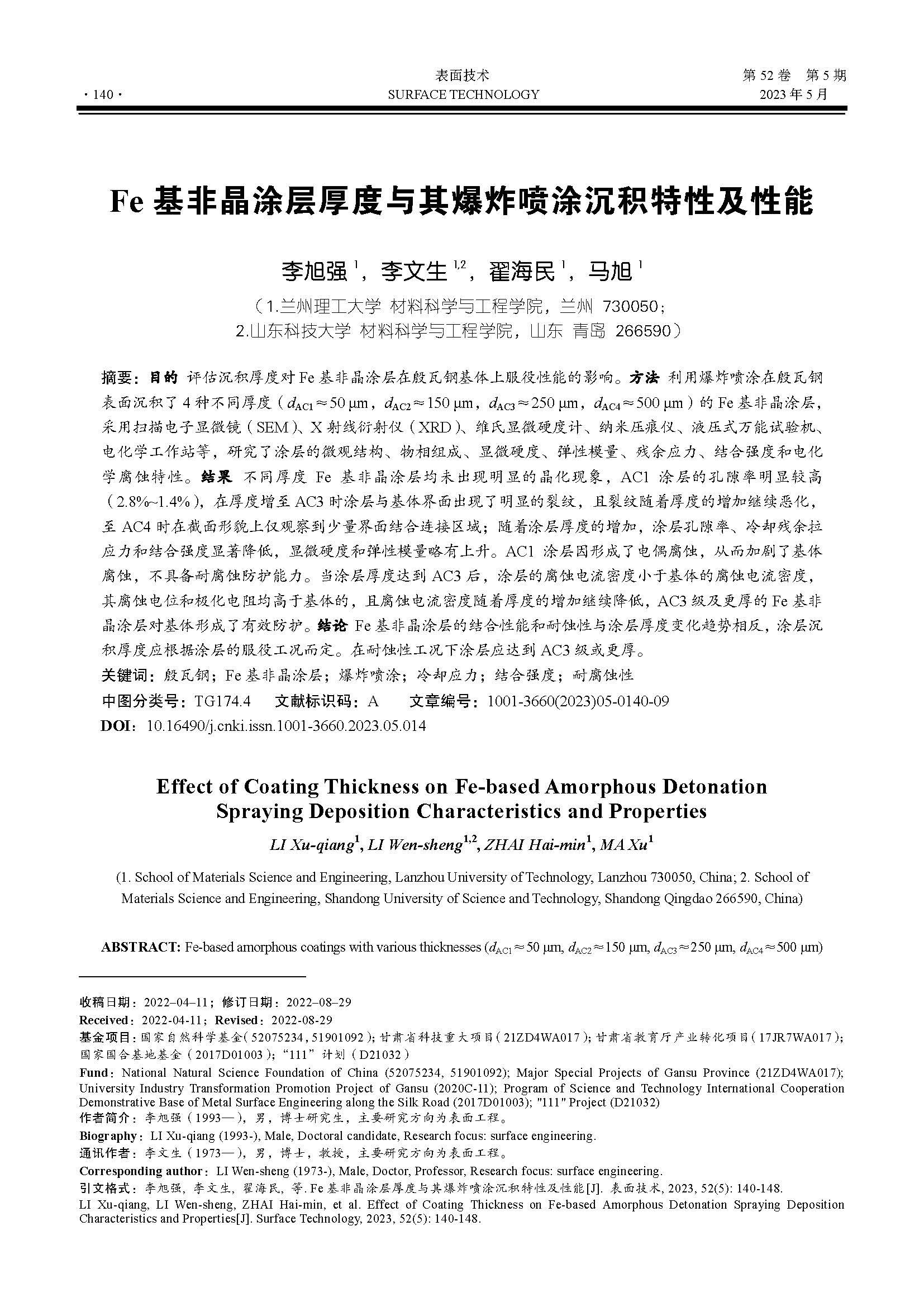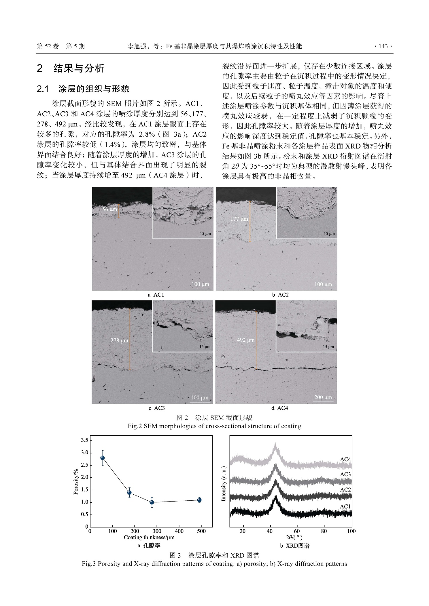 Fe 基非晶涂层厚度与其爆炸喷涂沉积特性及性能