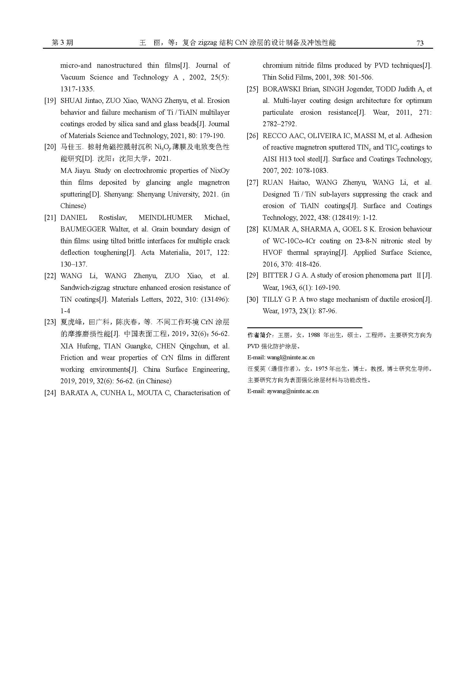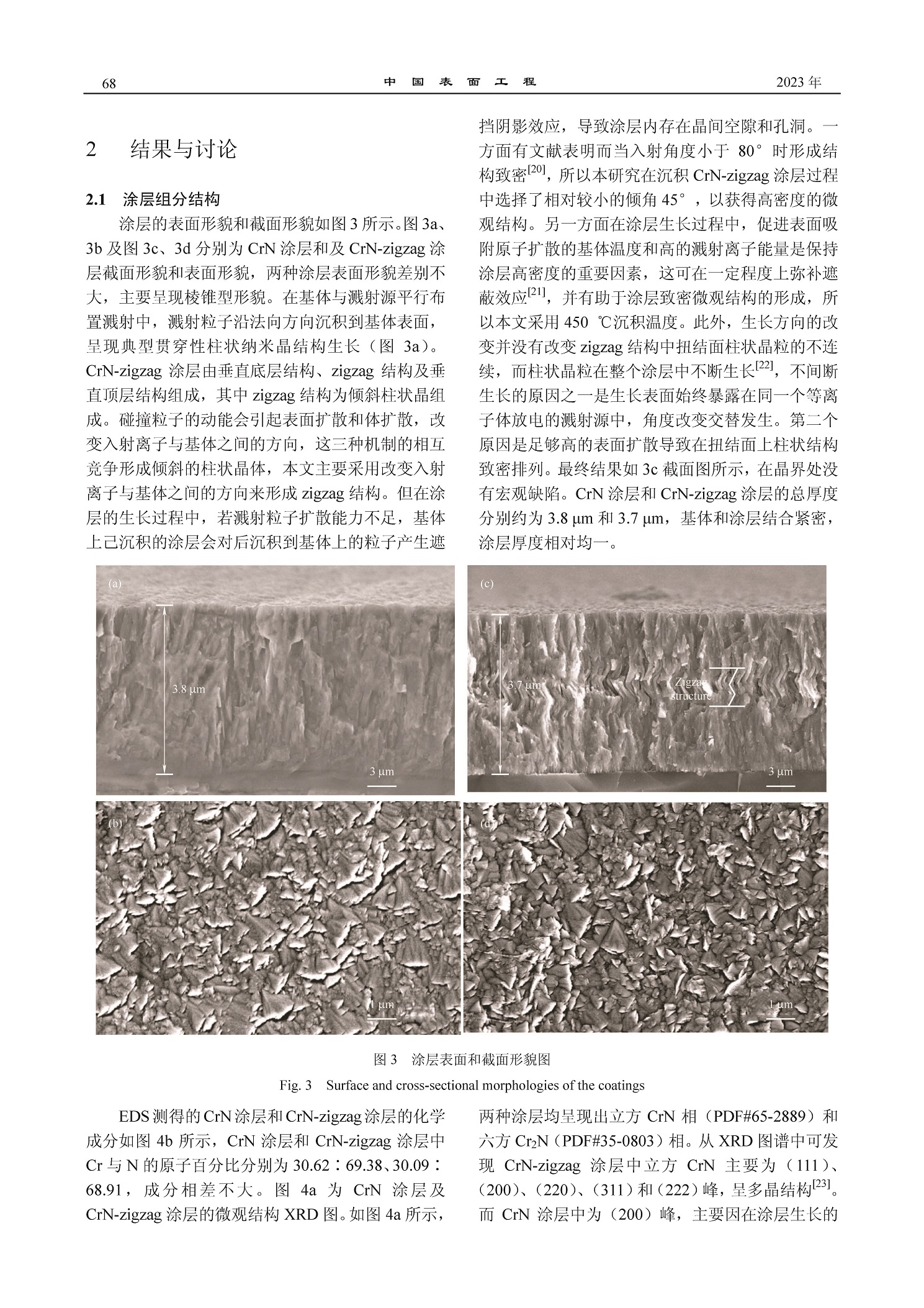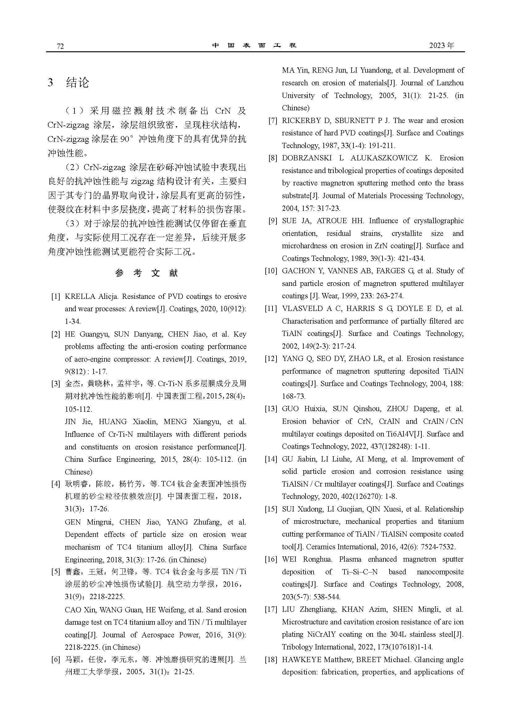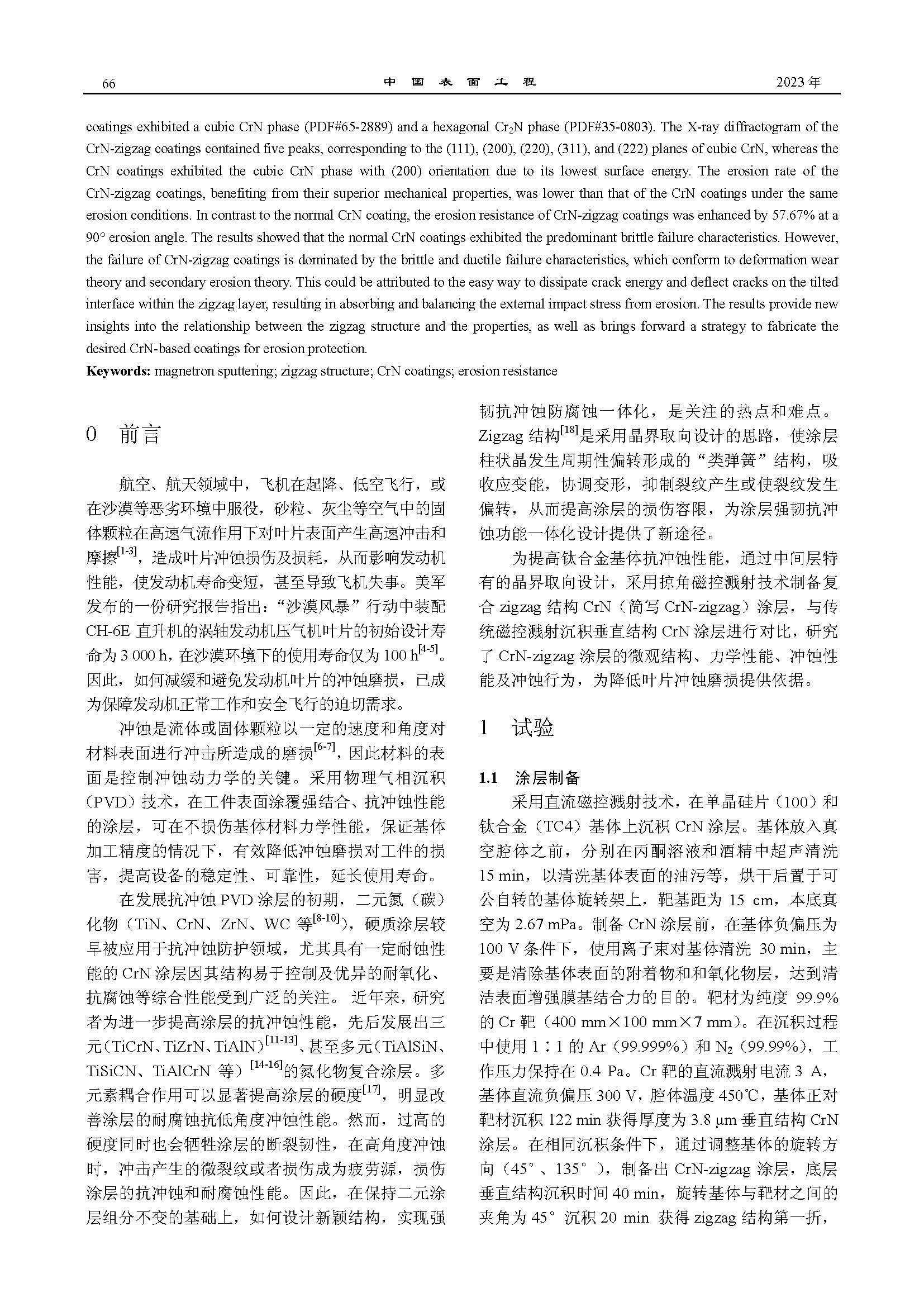复合 zigzag 结构 CrN 涂层的设计制备及冲蚀性能