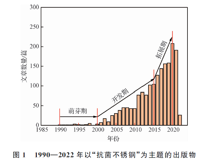 20世纪90年代,日本的川崎制铁株式会社率先开发出含银抗菌不锈钢,但是由于银(Ag)在高温冶金制备过程易挥发、成分控制难,且在不锈钢基体中溶解度较低很难实现均匀化,因此导致抗菌性能稳定性差。另外,Ag的成本较高,而且相应的废钢无法回收再利用,使其很难实现规模化应用。