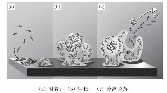 家用电器 含Cu抗菌不锈钢对耐海洋 微生物腐蚀的应用研究现状 海水环境中的微生物在海洋工程的安全失效中扮有重要角色,微生物作用下海洋工程装备的安全失效机制一直是海洋科学与材料科学的难点与热点方向。金属材料腐蚀是海洋工程装备经济损失的重要部分,而微生物的存在导致这一过程被大大加速。 微生物在与金属表面接触后,可分泌出胞外多糖,由于金属材料表面会附着一定量的有机物、无机物,胞外多糖会与其或金属基体进行反应生成胞外聚合物(EPS),因此导致细菌微生物与EPS共同附着于金属表面,使其从可逆吸附转变为不可逆吸附,形成生物膜,形成过程如图7所示。 图7 生物膜发展的不同阶段