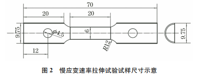 在成品包壳中截取试样,参照 GB/T15970.4—2000《金属和合金的腐蚀 应力腐蚀试验 第4部分:单轴加载拉伸试样的制备和应用》设计试样,沿包壳轴向剖开,制备成如图2所示的试样。为消除加工给试样带来的应力集中,采用砂纸和抛光剂对所有切割面进行打磨和抛光。
