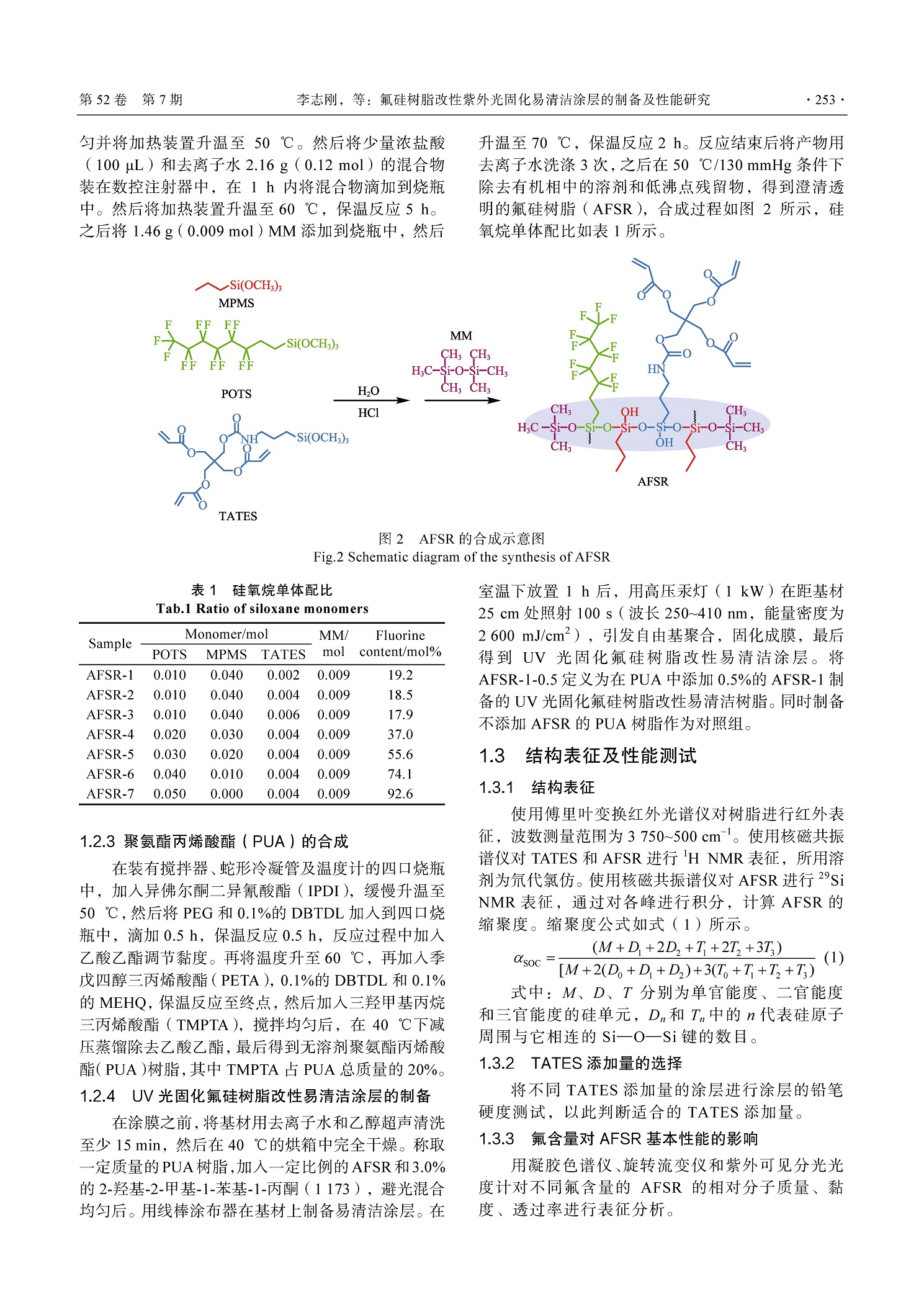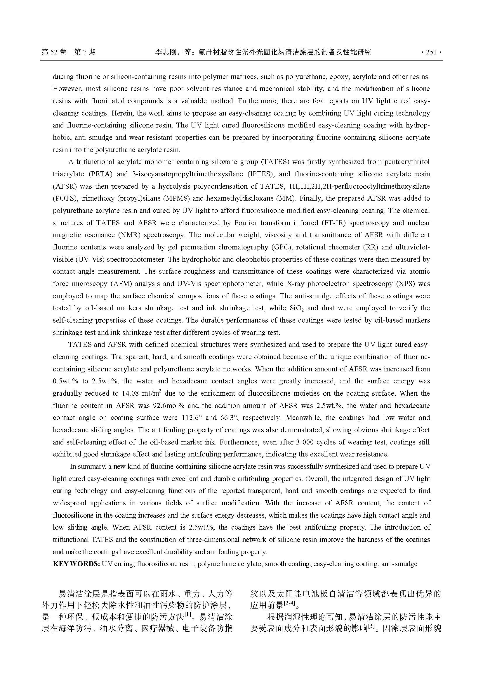 氟硅树脂改性紫外光固化易清洁涂层的制备及性能研究
