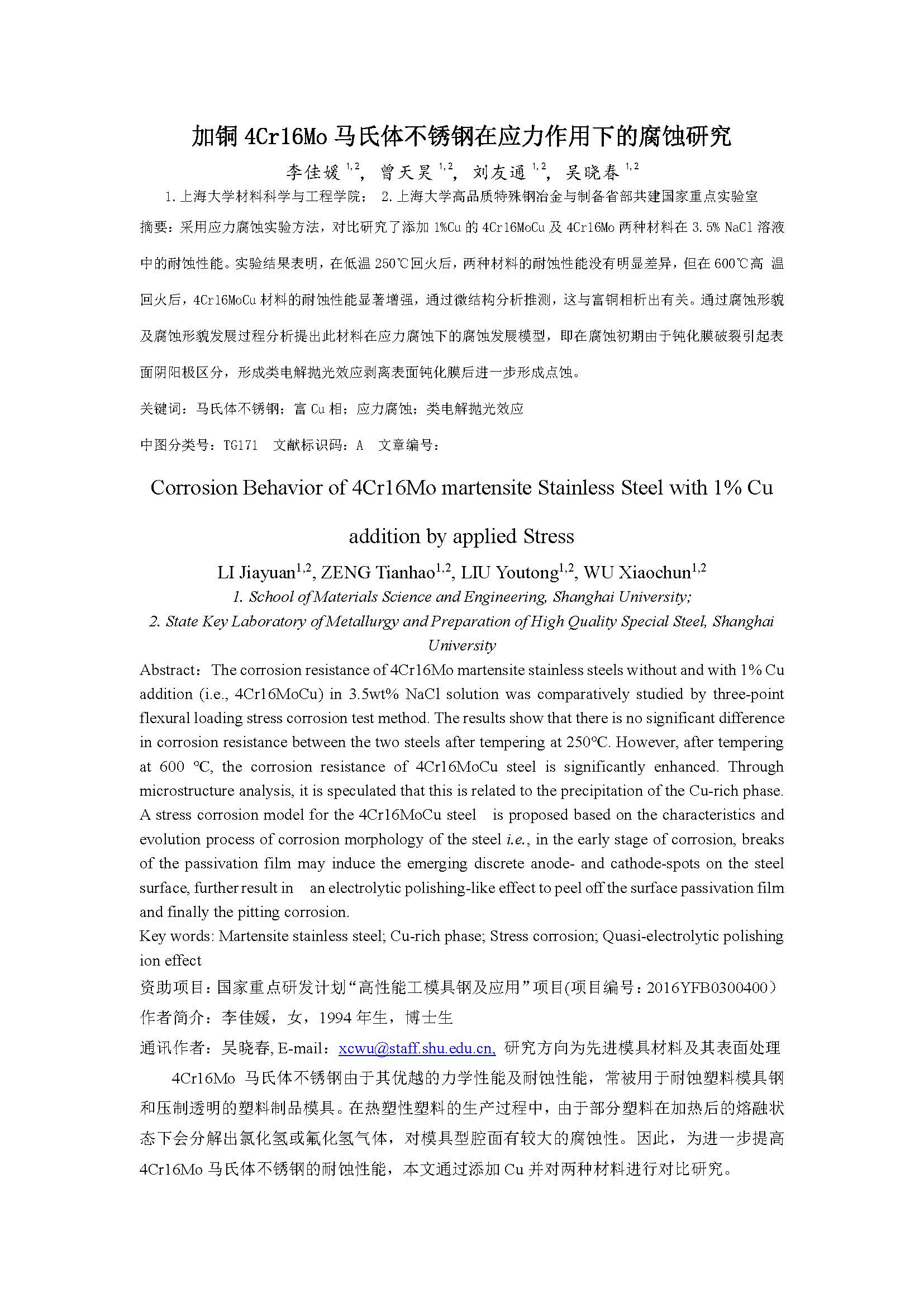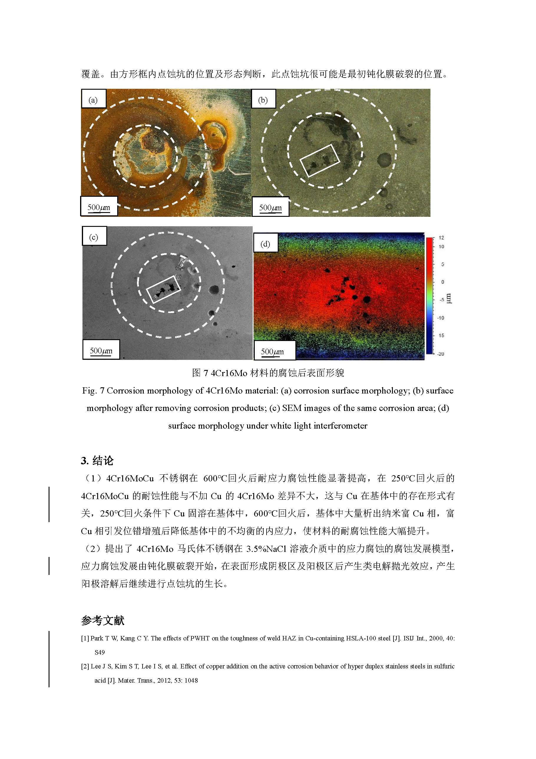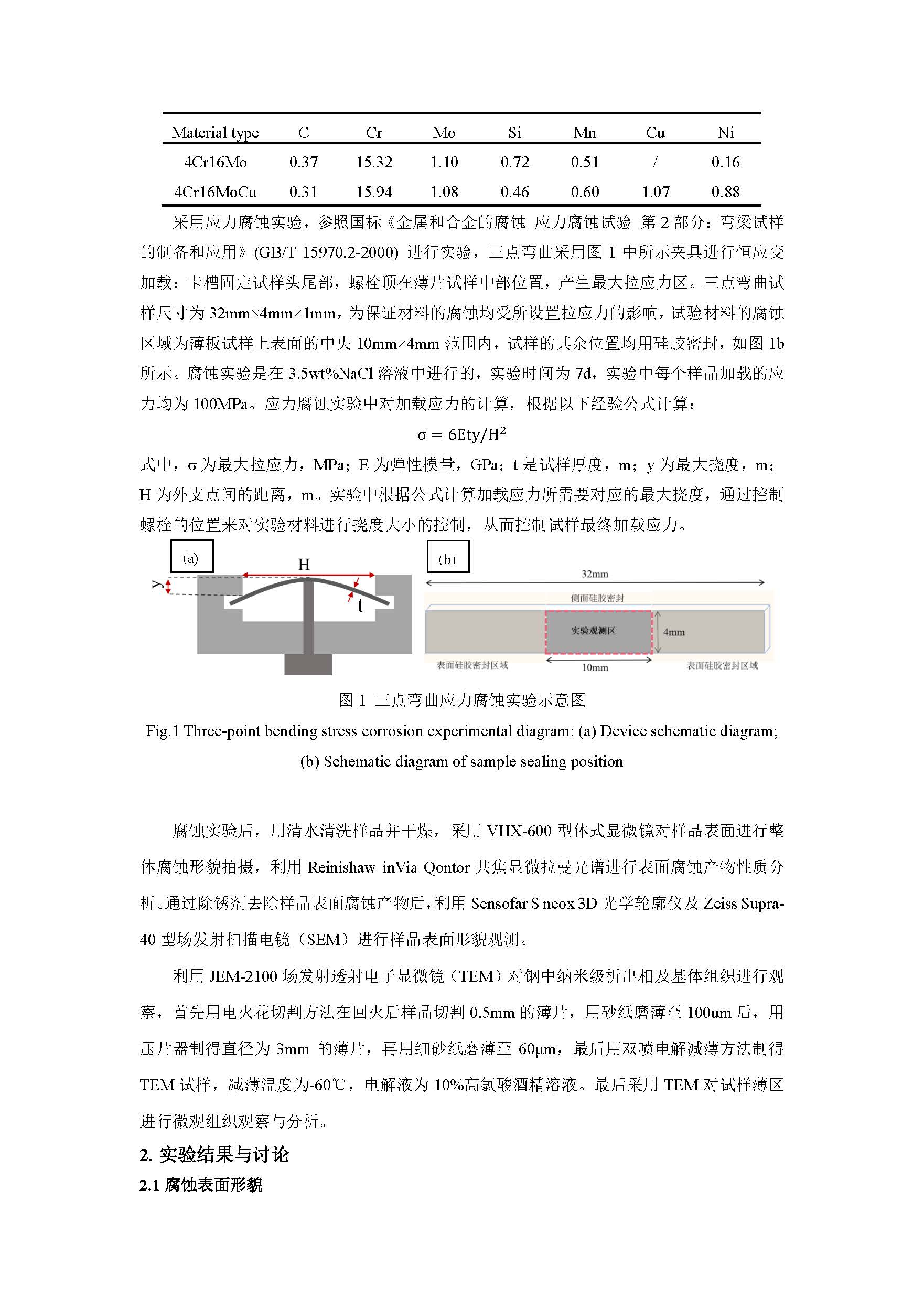 加铜 4Cr16Mo 马氏体不锈钢在应力作用下的腐蚀研究