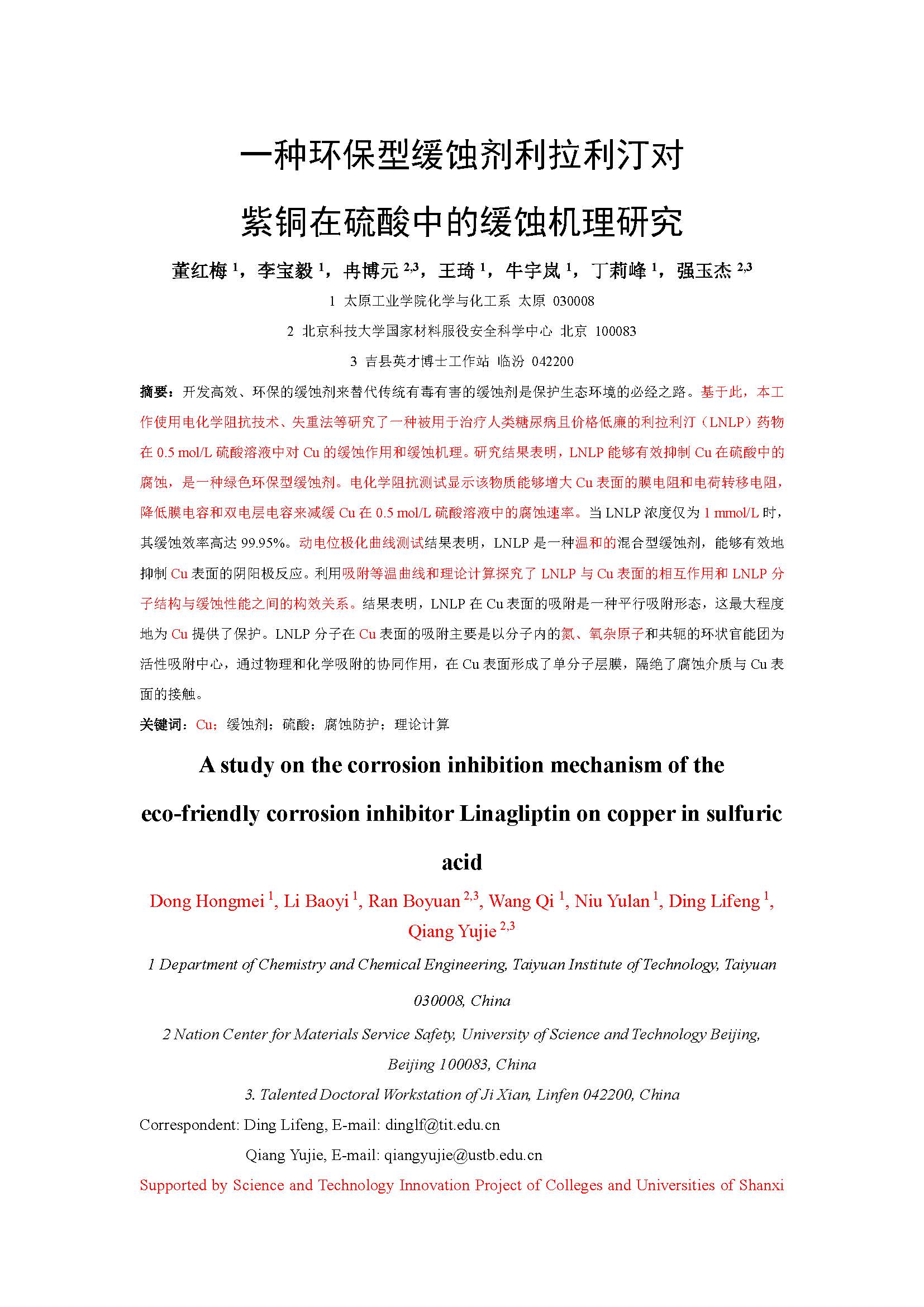 一种环保型缓蚀剂利拉利汀对紫铜在硫酸中的缓蚀机理研究