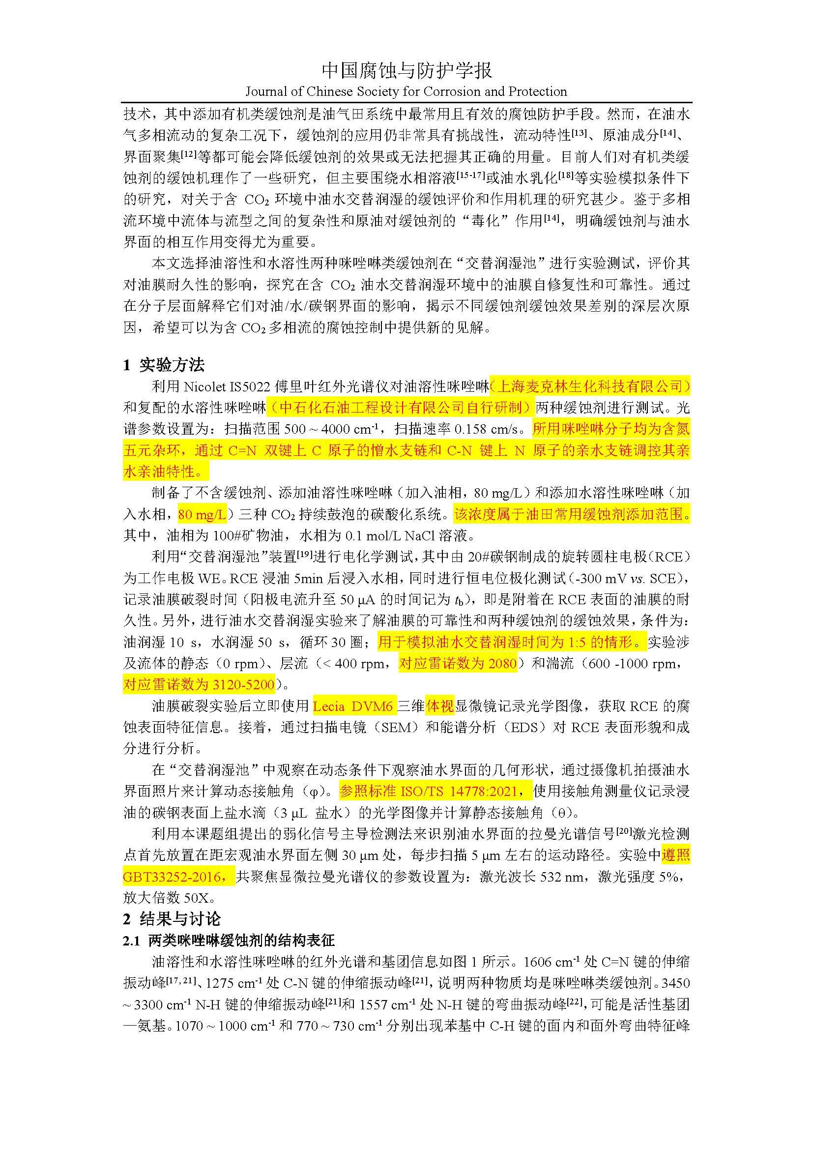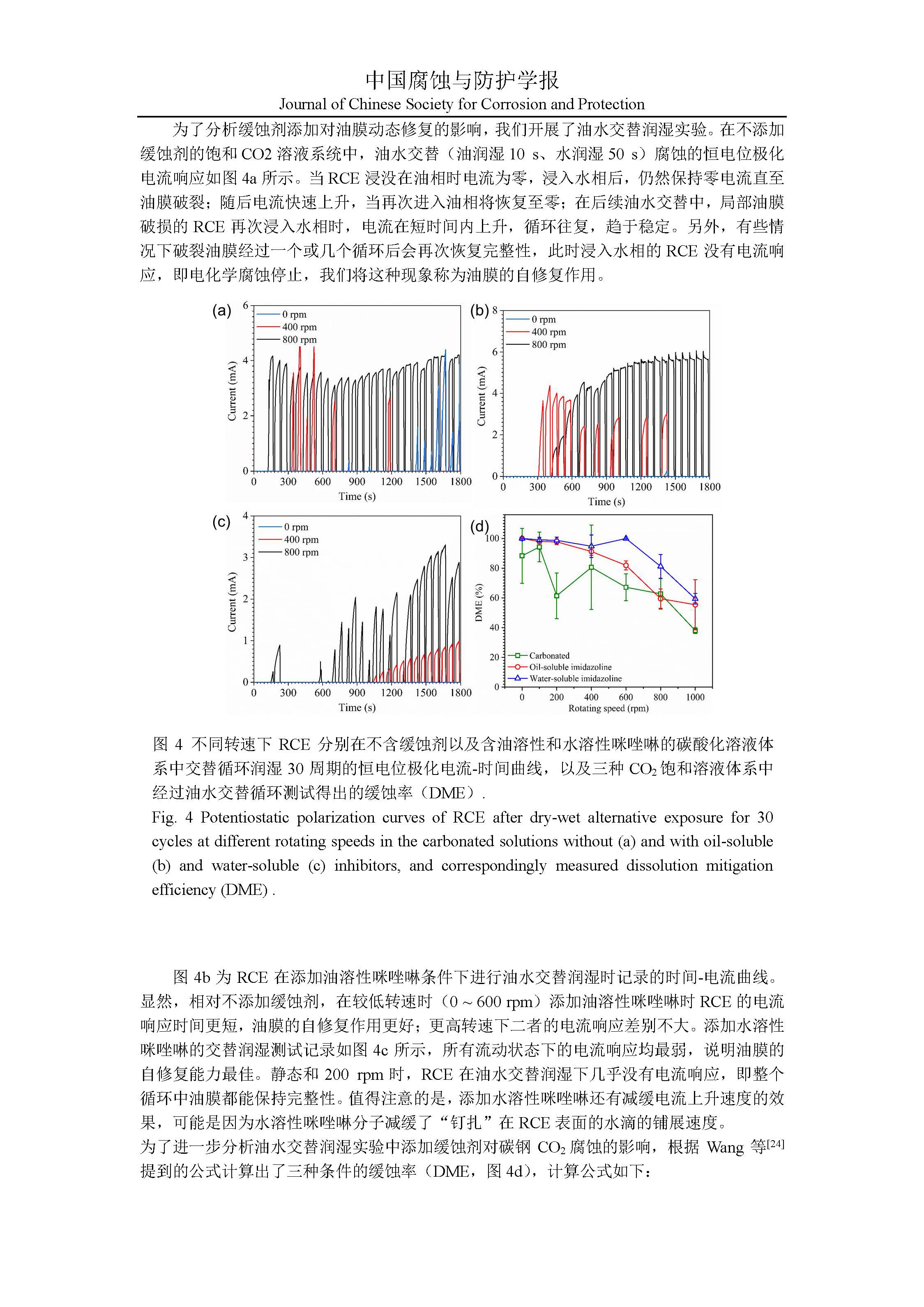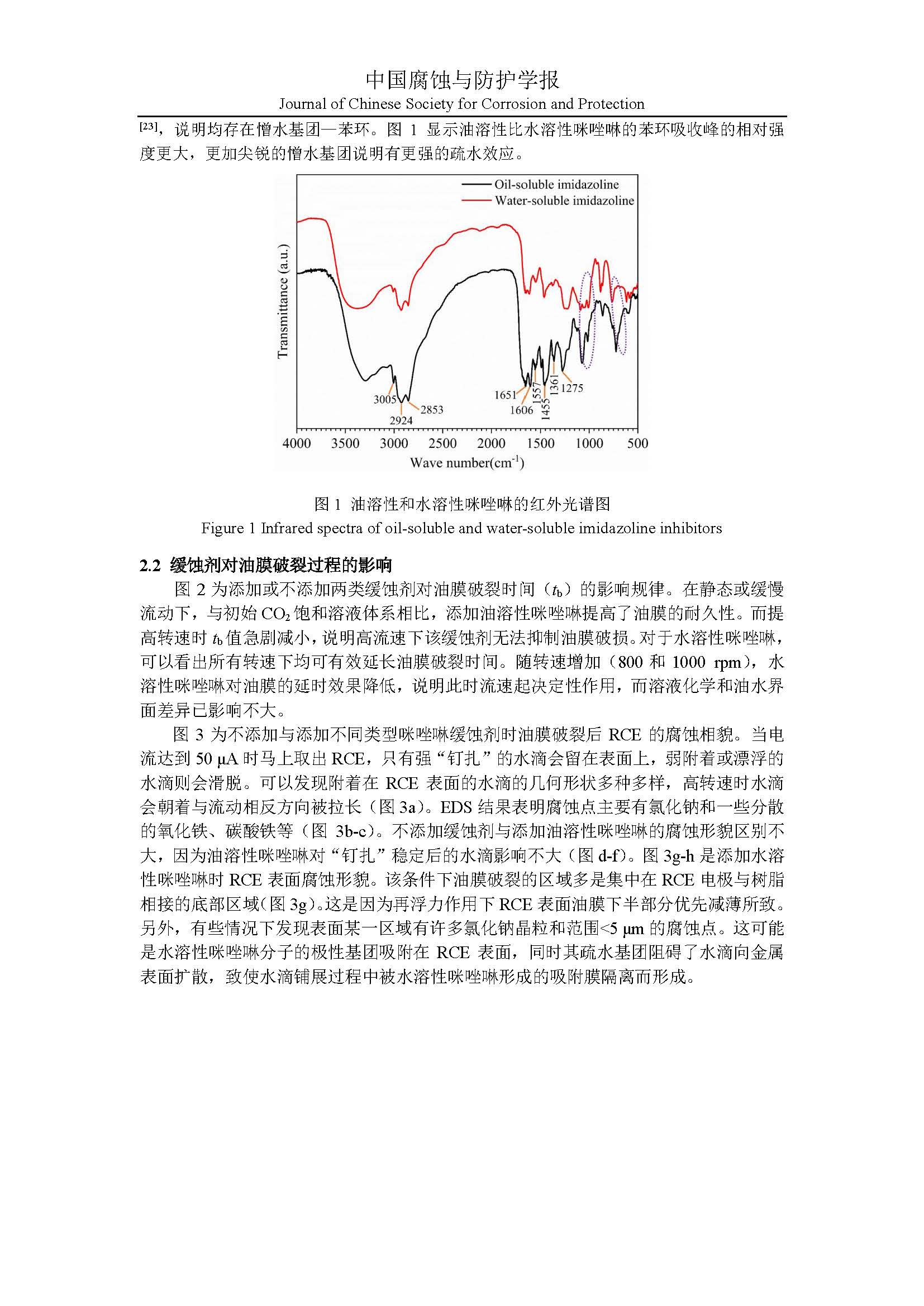油水交替环境中咪唑啉对CO2腐蚀的抑制作用研究