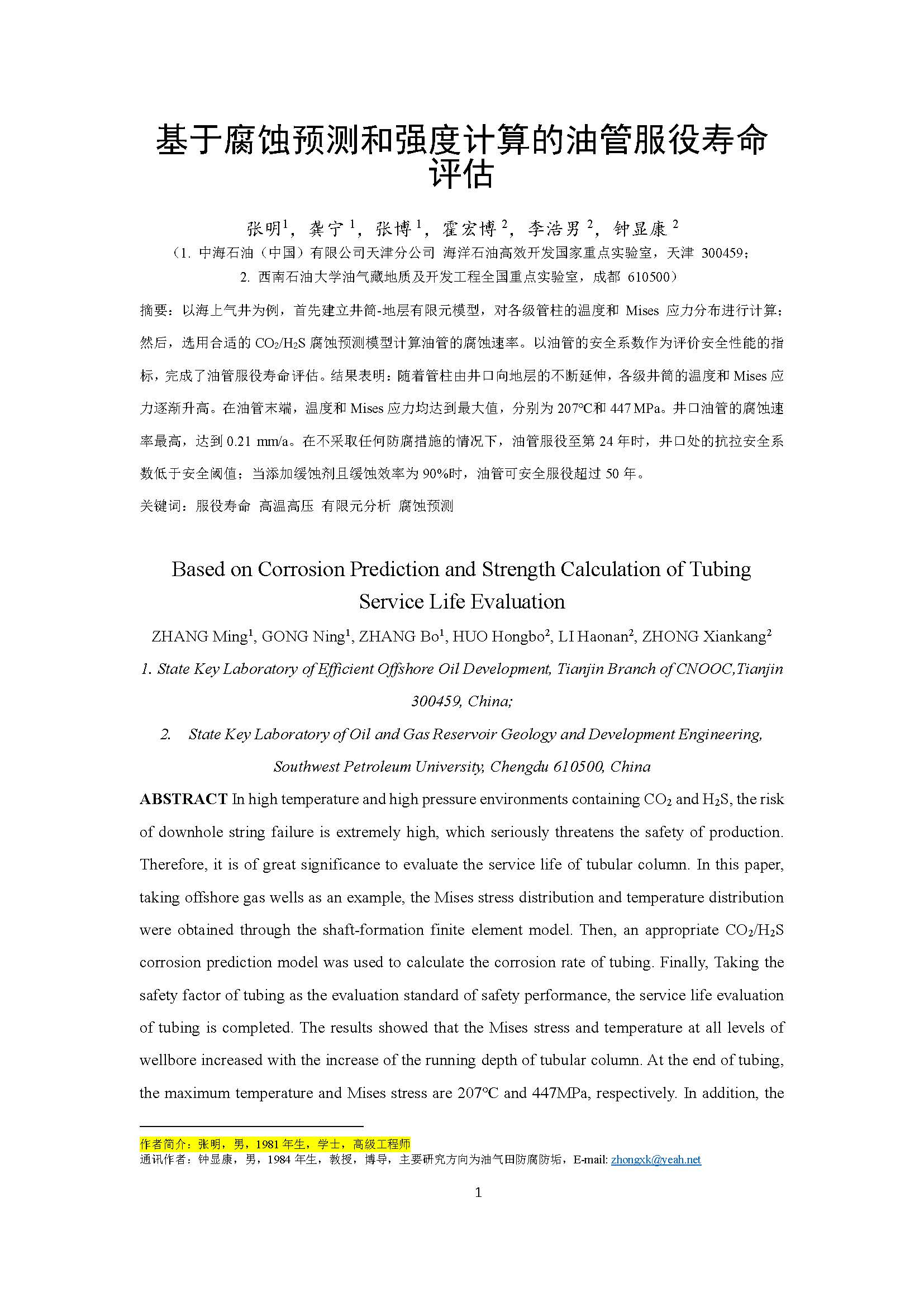 基于腐蚀预测和强度计算的油管服役寿命评估