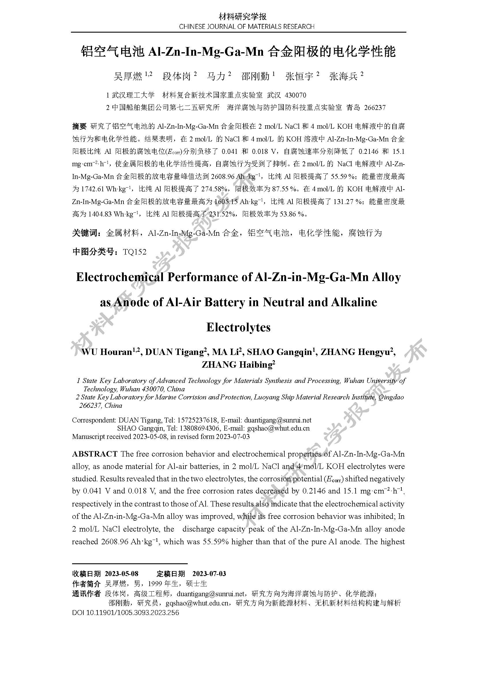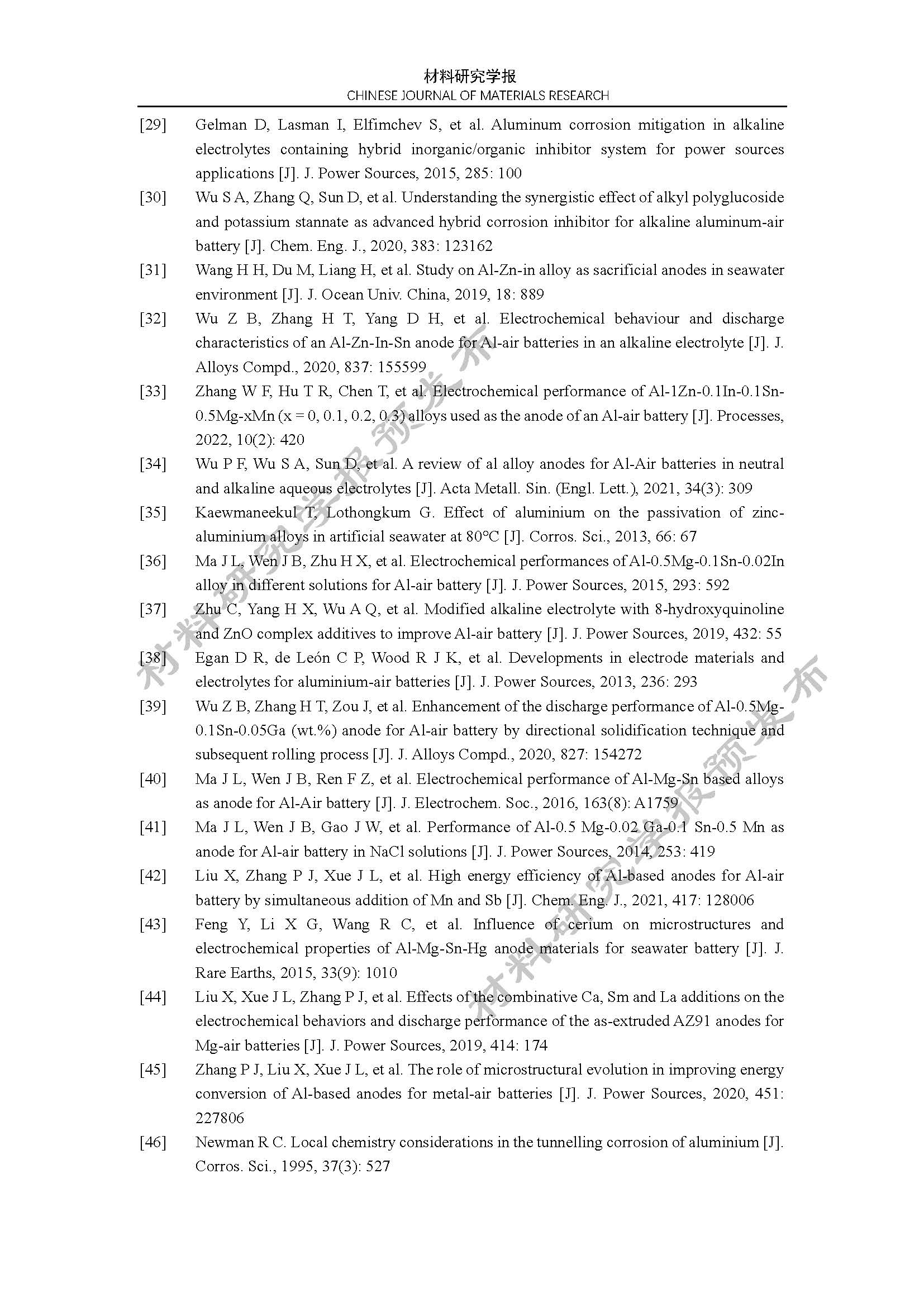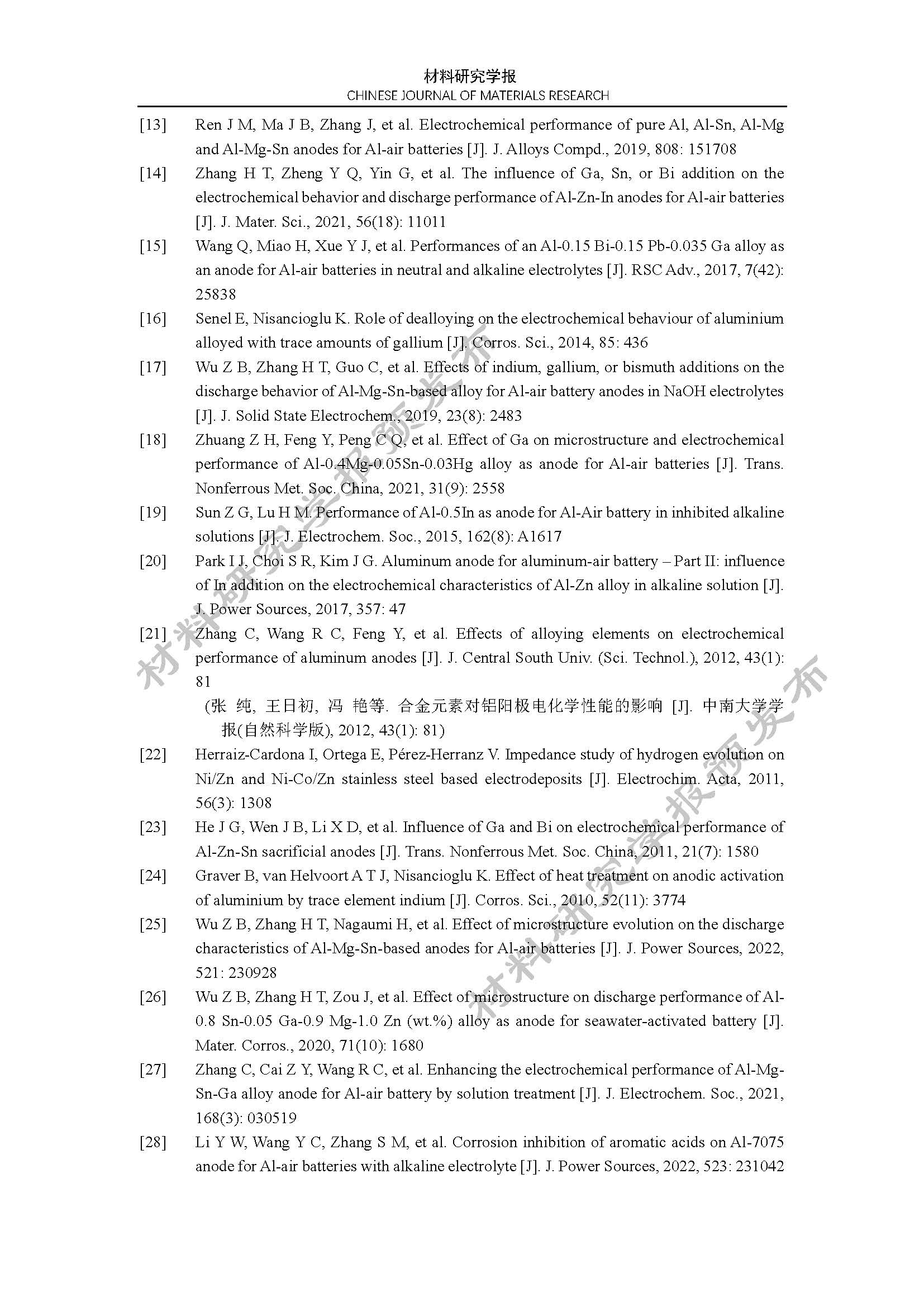 铝空气电池 Al-Zn-In-Mg-Ga-Mn 合金阳极的电化学性能