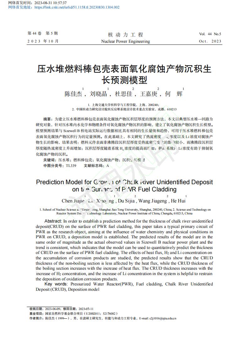 压水堆核电厂一回路水化学对燃料包壳表面CRUD(污垢)的影