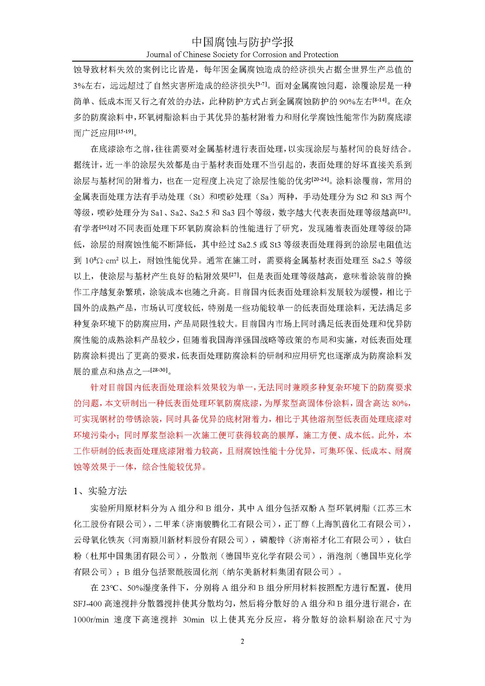 低表面处理环氧防腐底漆的制备及其耐蚀性研究