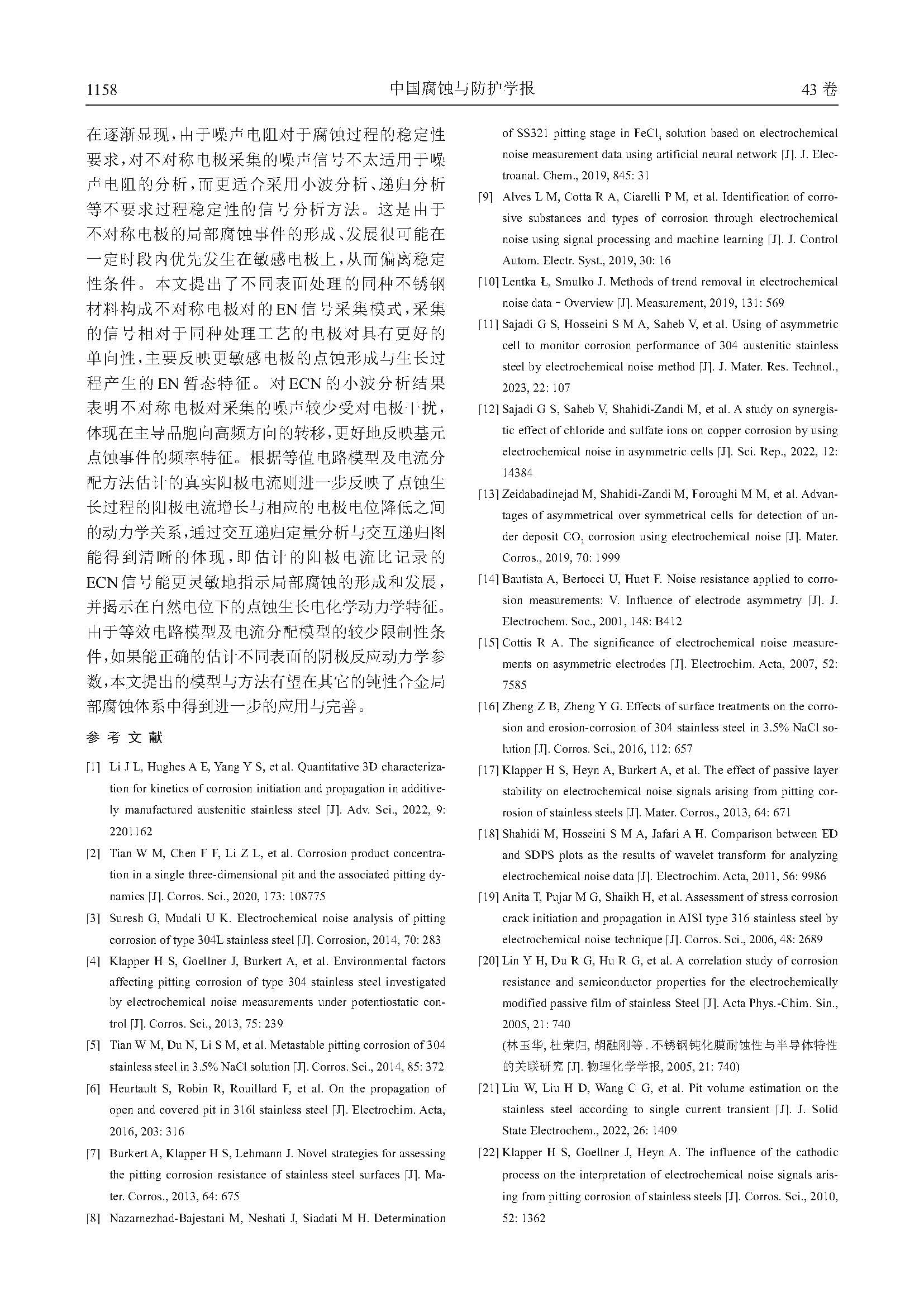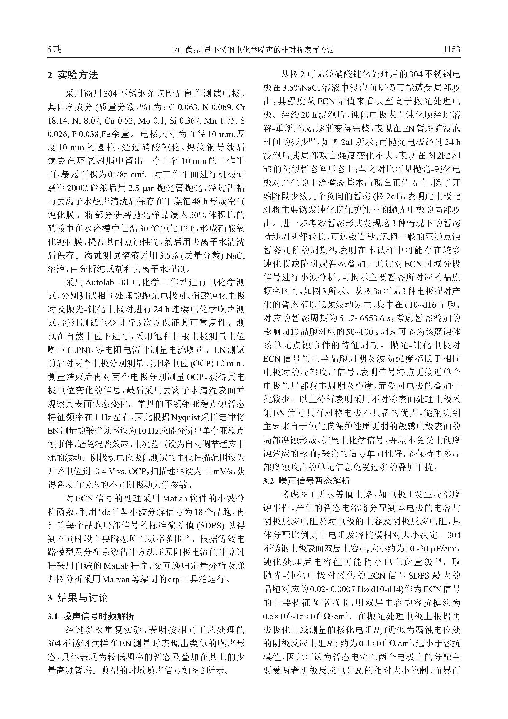 测量不锈钢电化学噪声的非对称表面方法