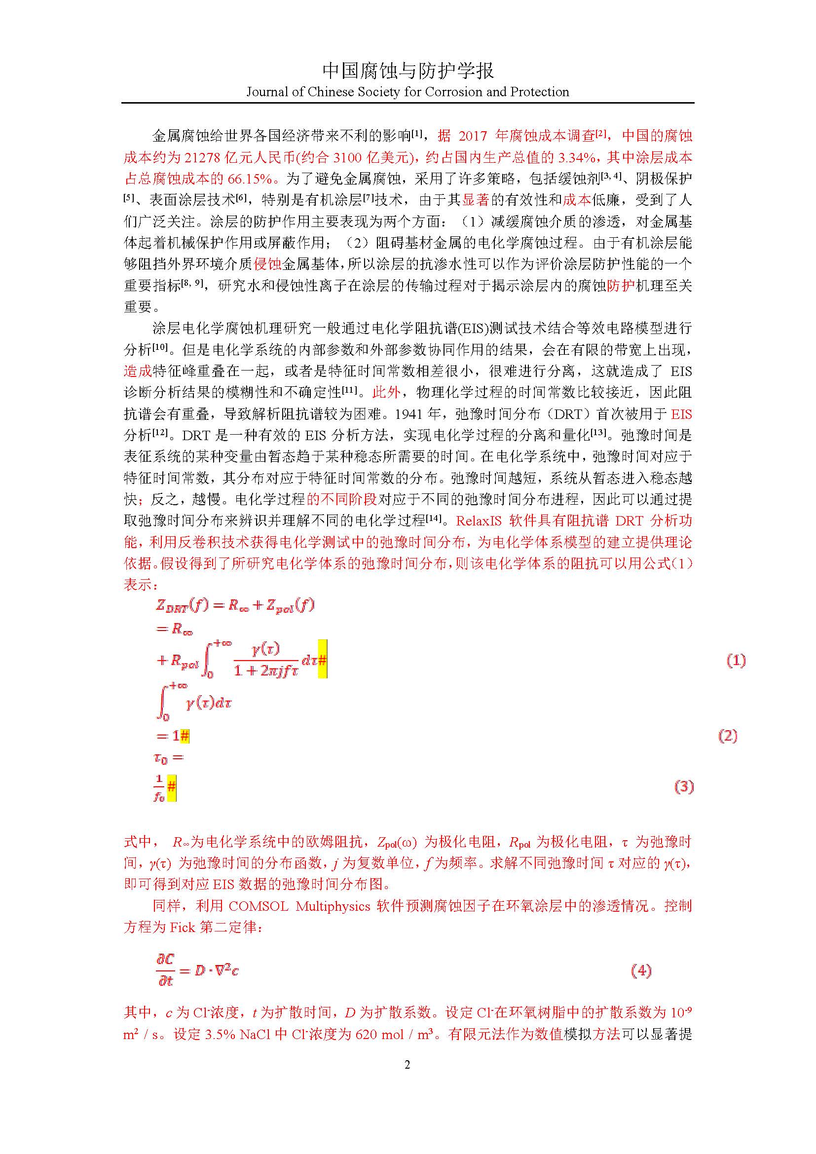 作者:基于弛豫时间分布和有限元模拟的环氧涂层渗水行为研究