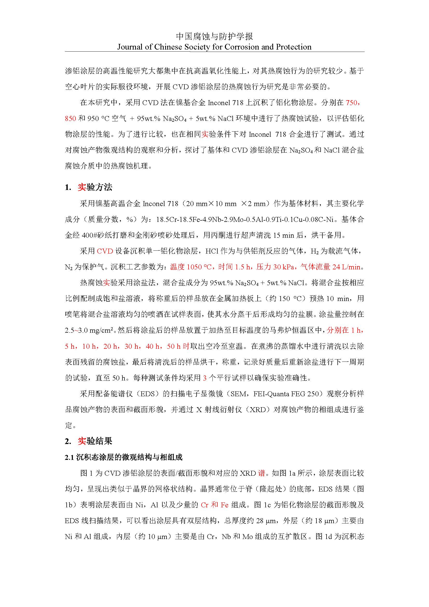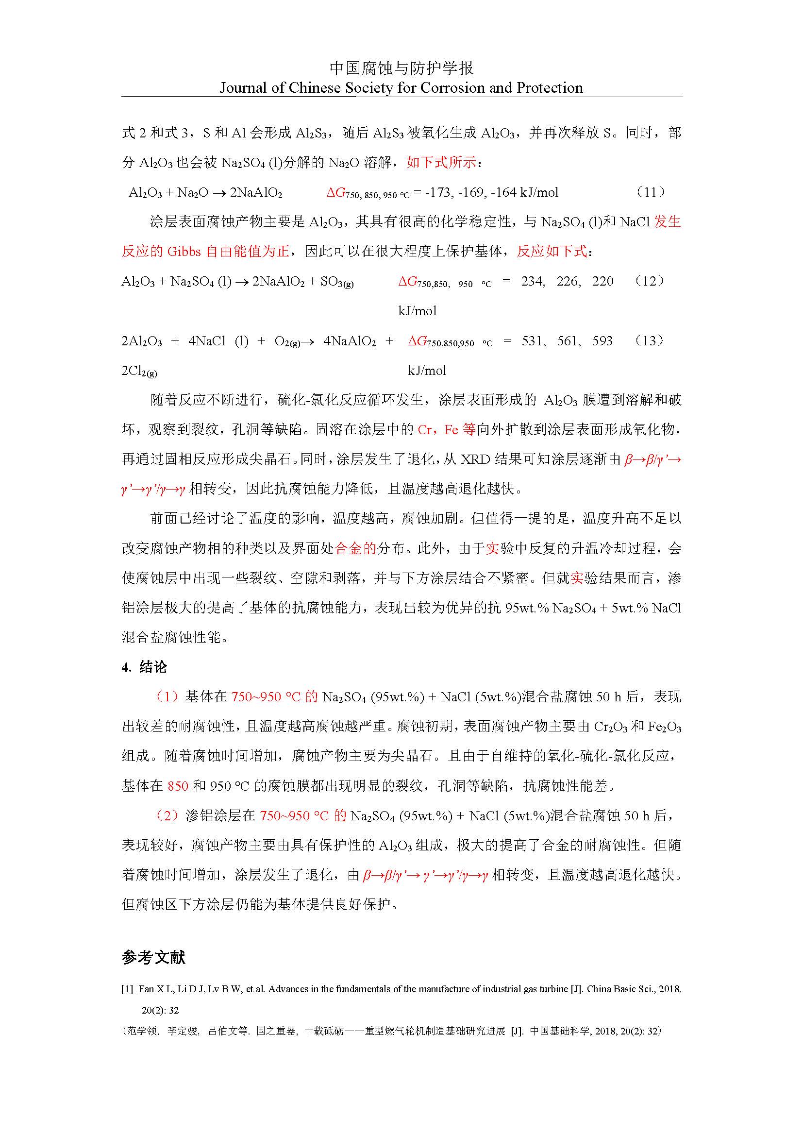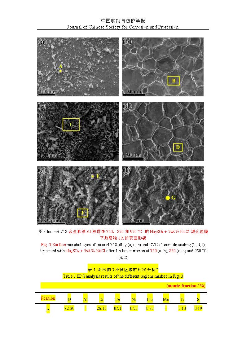 涂覆Na2SO4 (95wt. %) + NaCl (5wt. %)混合盐膜的Inconel 718及其渗铝涂层的热腐蚀行为