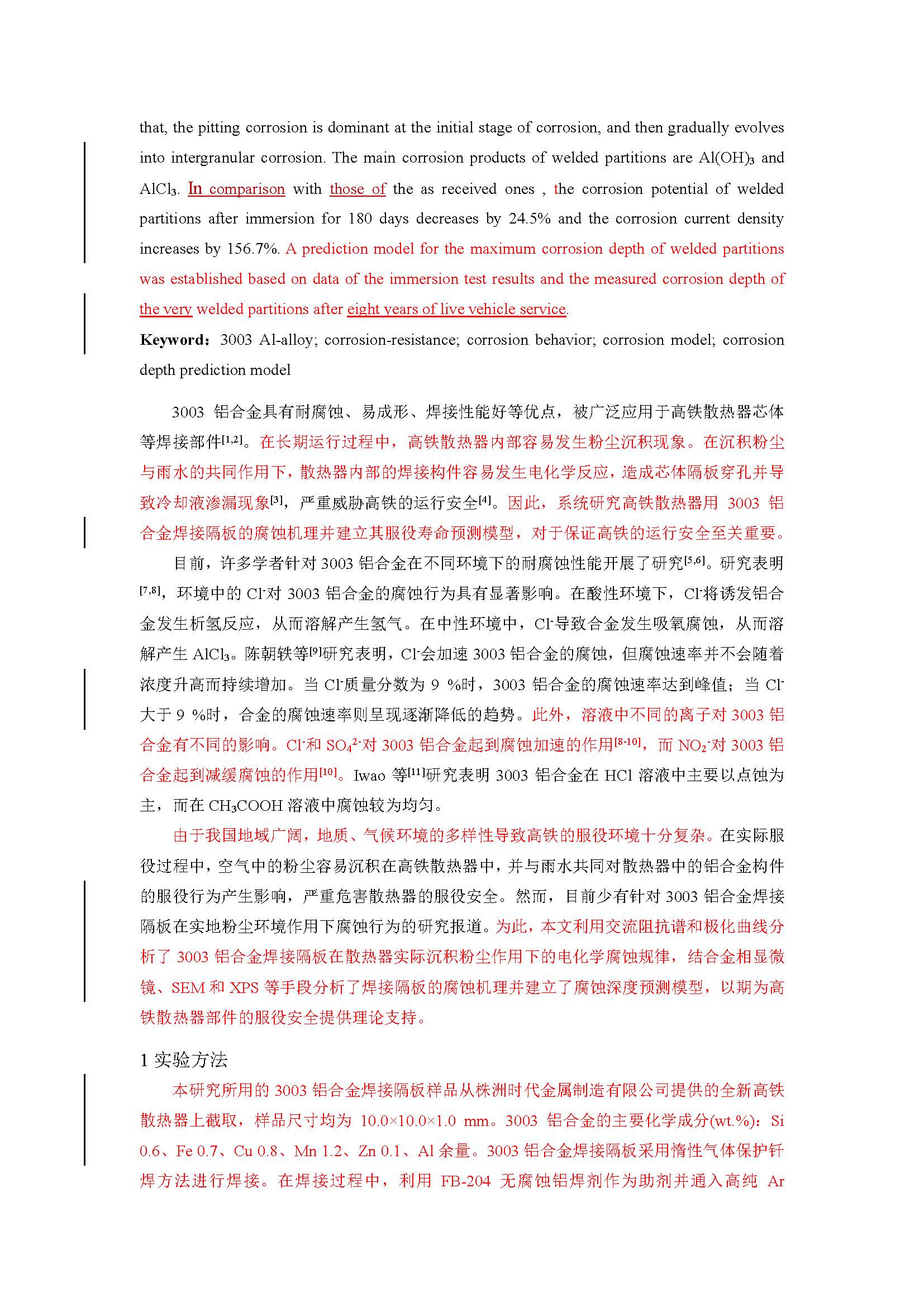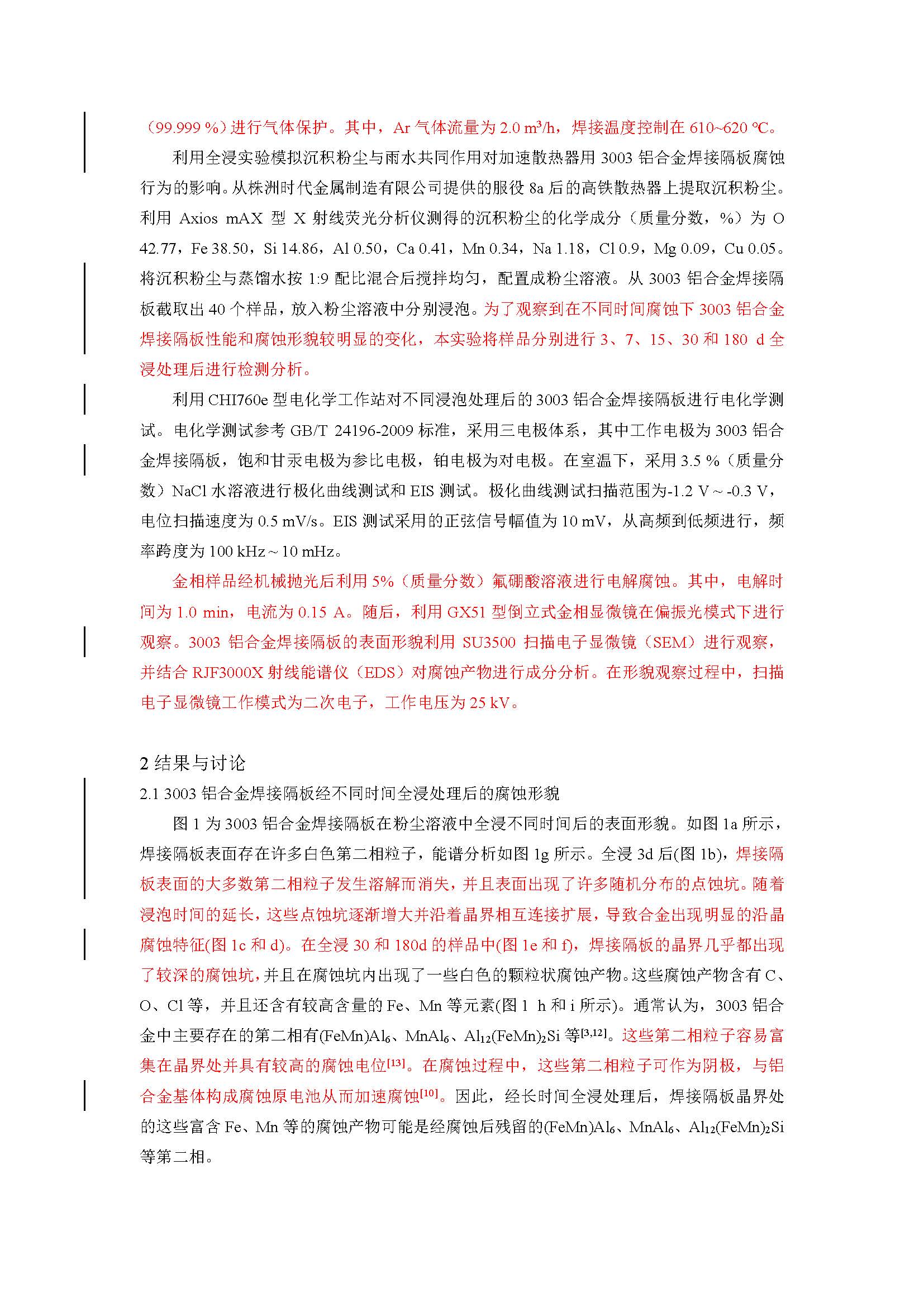 高铁散热器用3003铝合金焊件的腐蚀机理研究