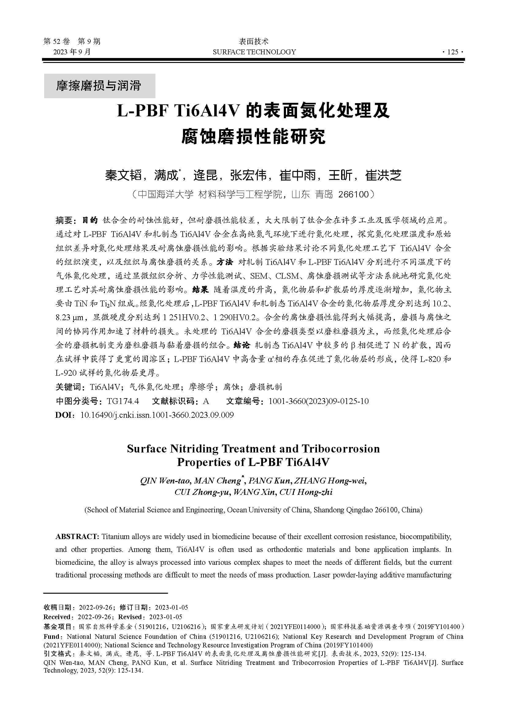 L-PBFTi6Al4V的表面氮化处理及腐蚀磨损性能研究