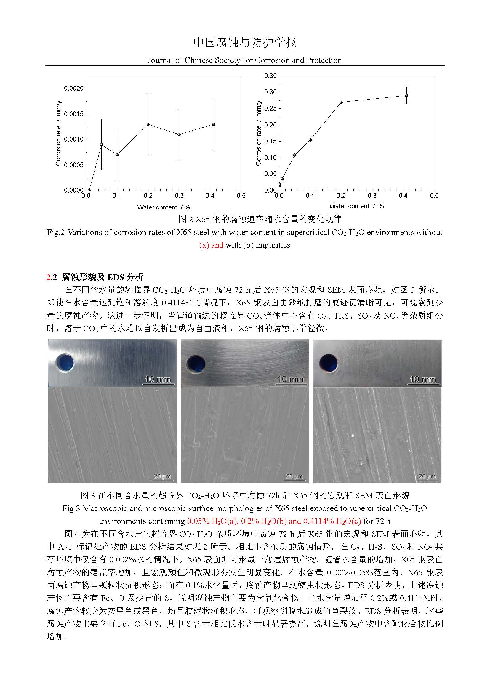 水含量对超临界CO2输送管道腐蚀的影响