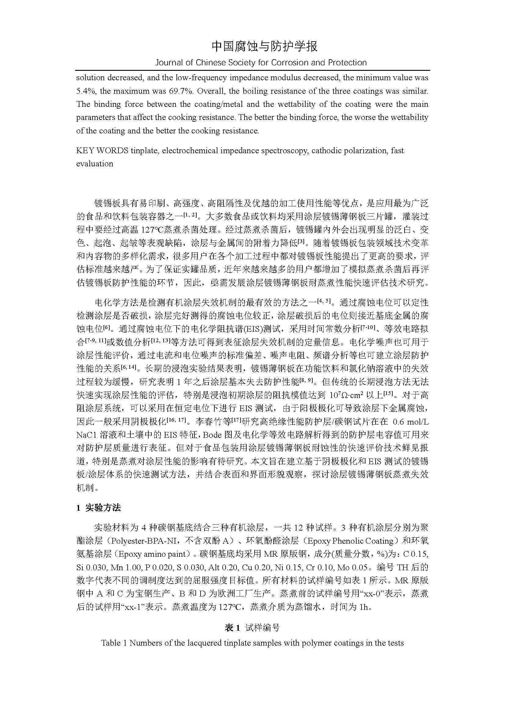 涂层镀锡薄钢板耐蒸煮性能电化学快速检测技术研究