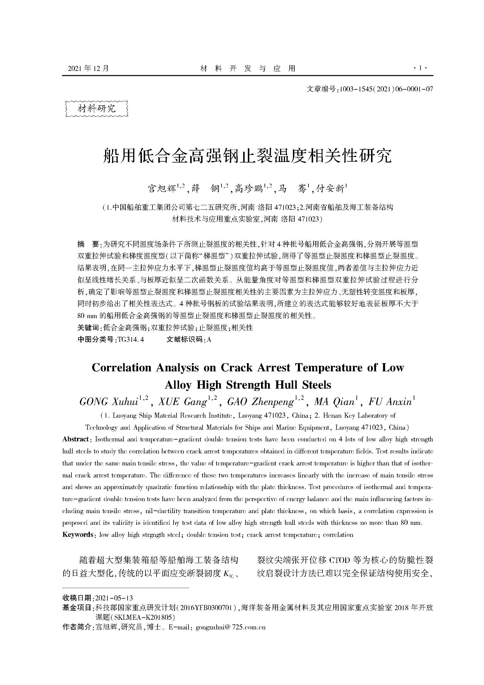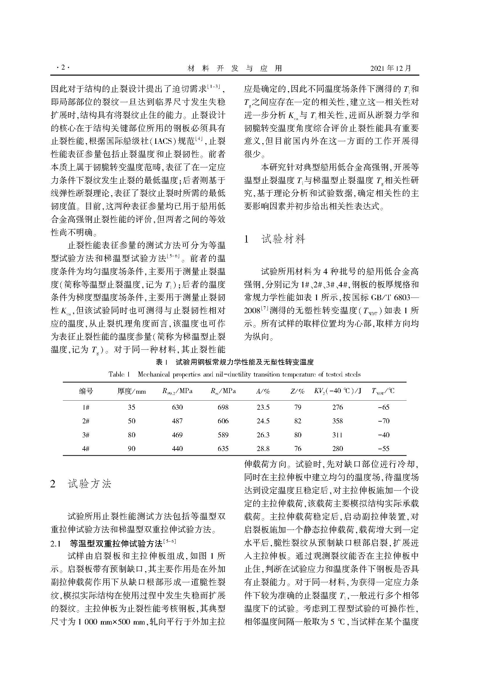 船用低合金高强钢止裂温度相关性研究