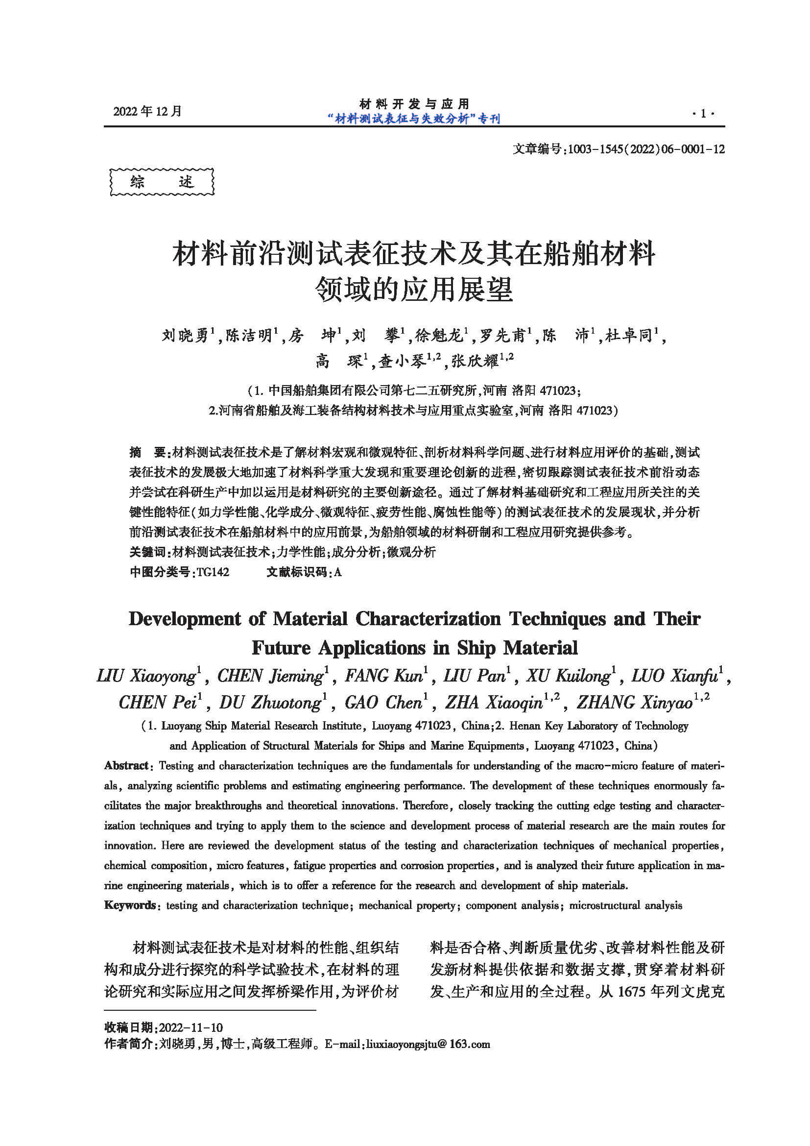 材料前沿测试表征技术及其在船舶材料领域的应用展望