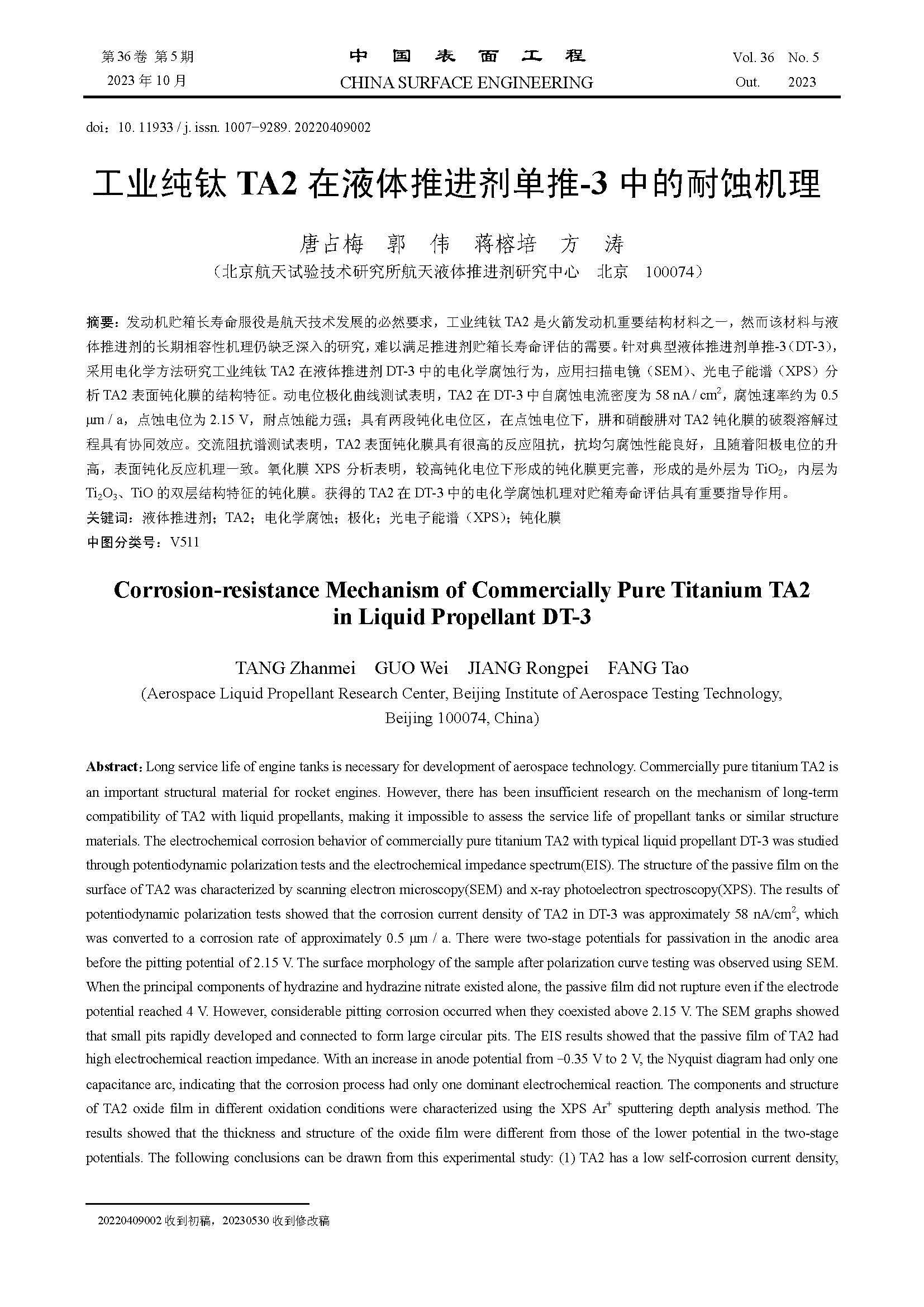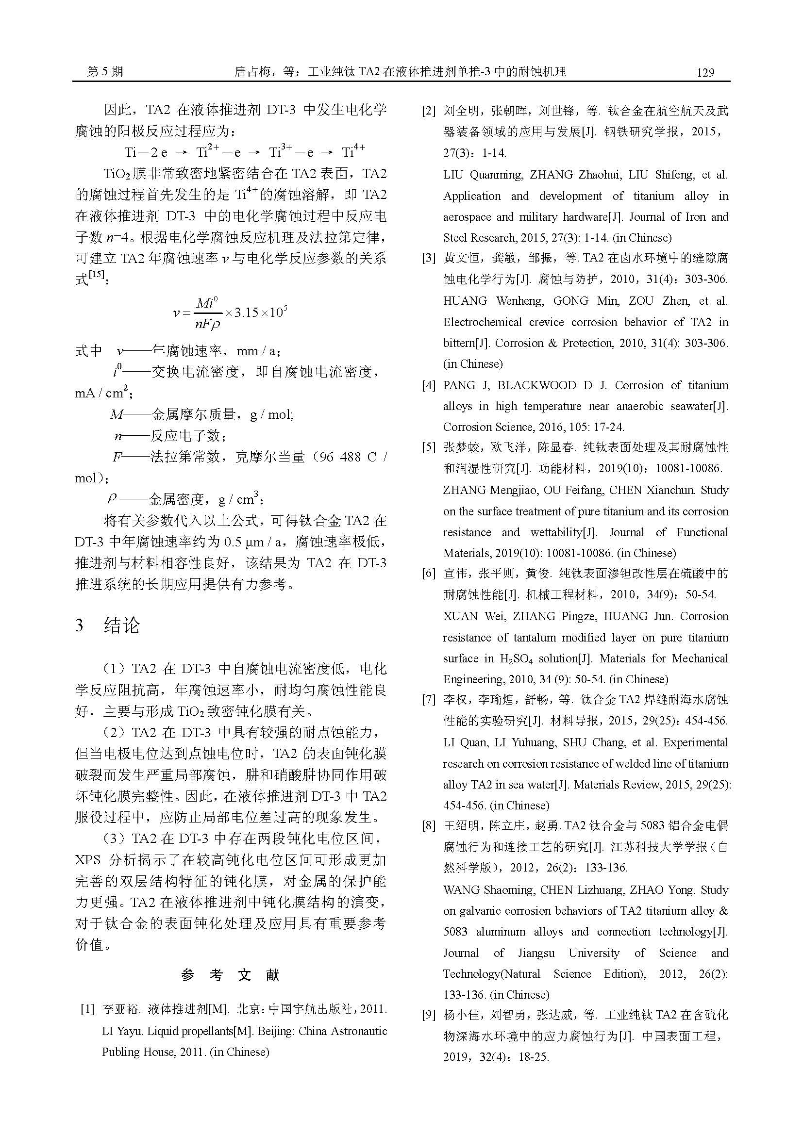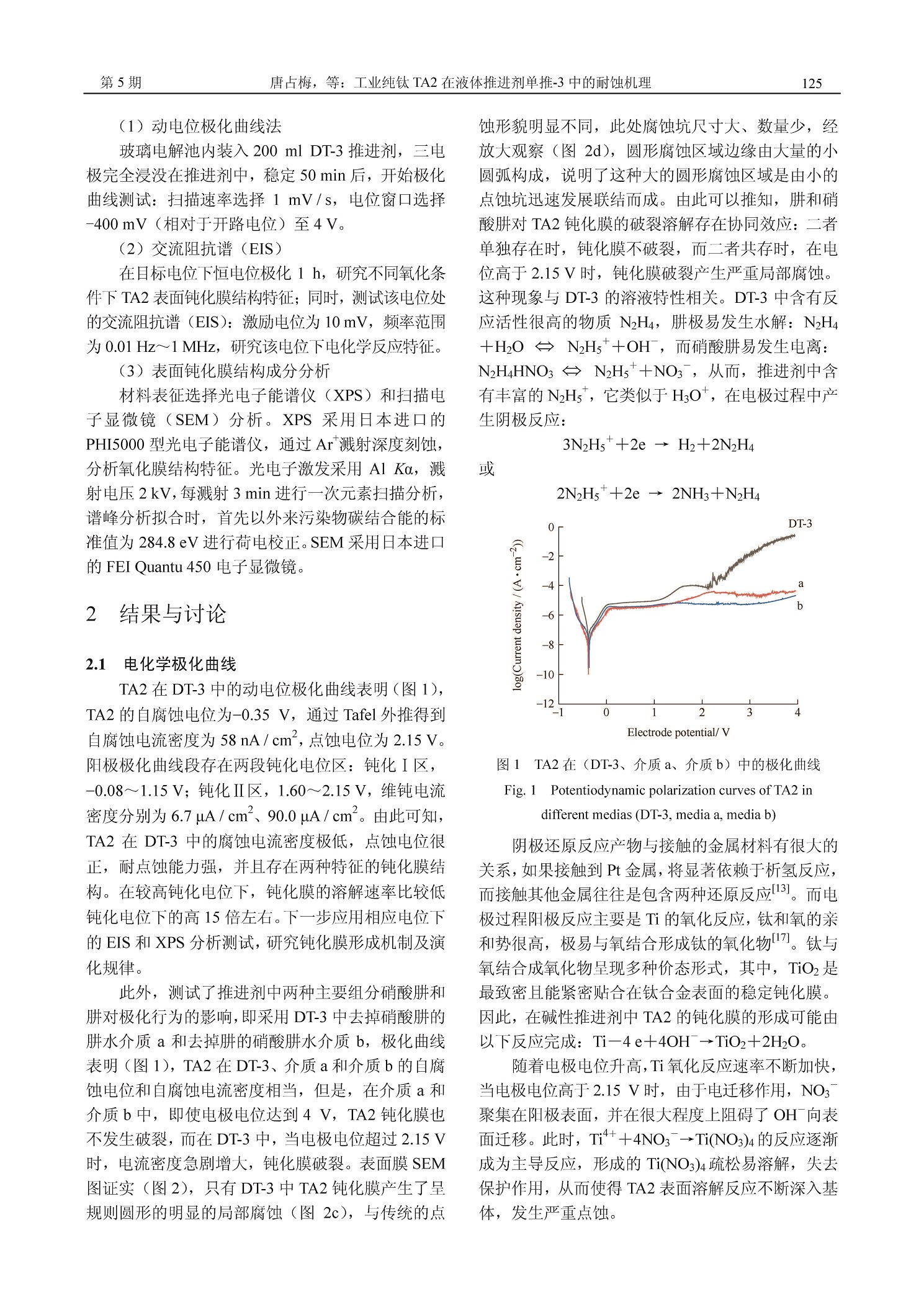 工业纯钛 TA2 在液体推进剂单推-3 中的耐蚀机理