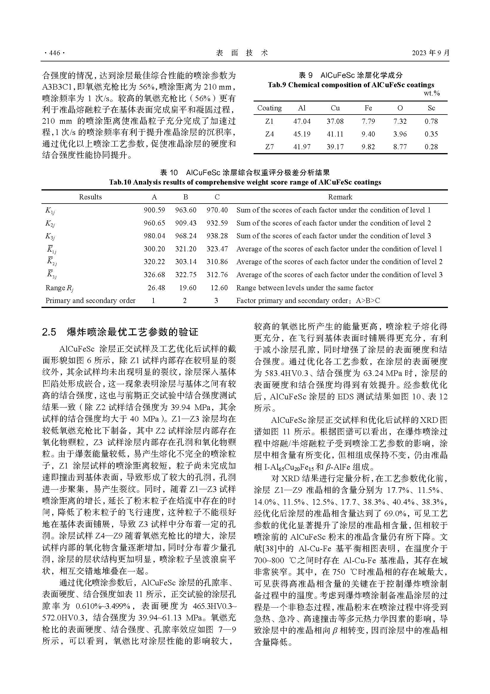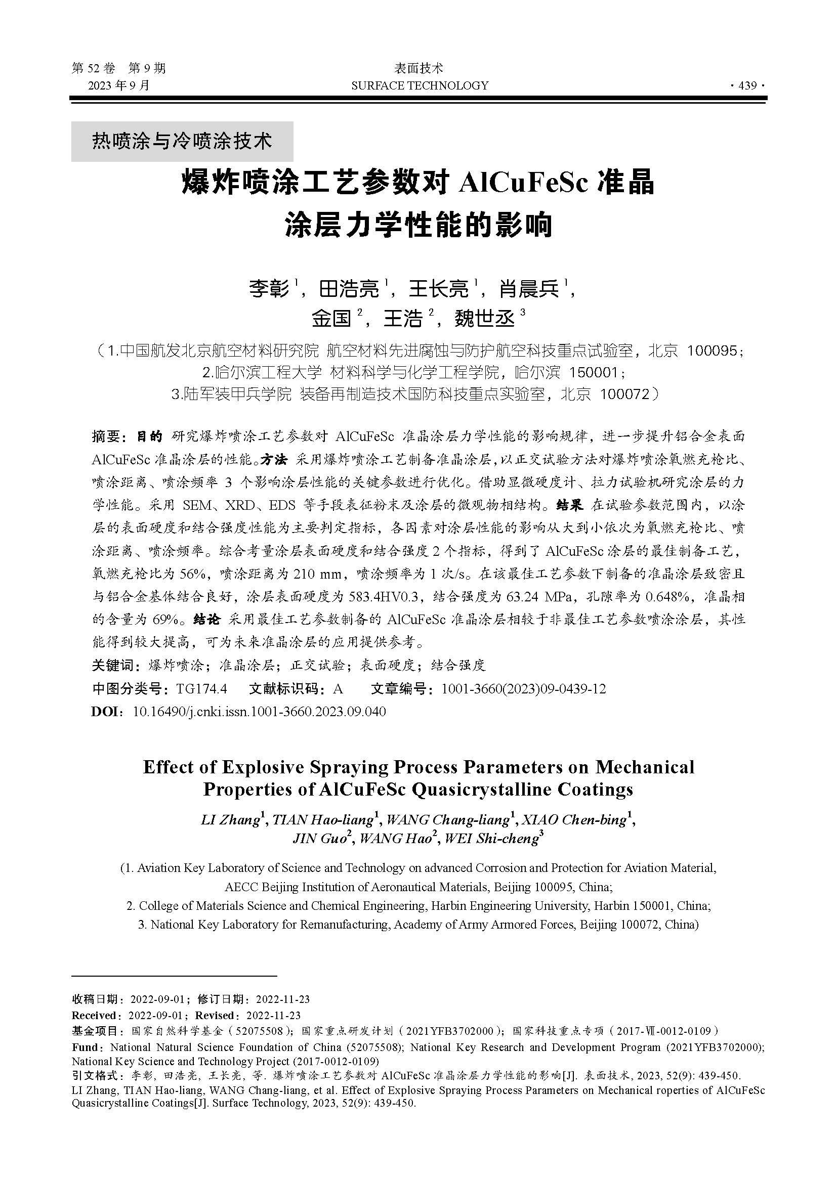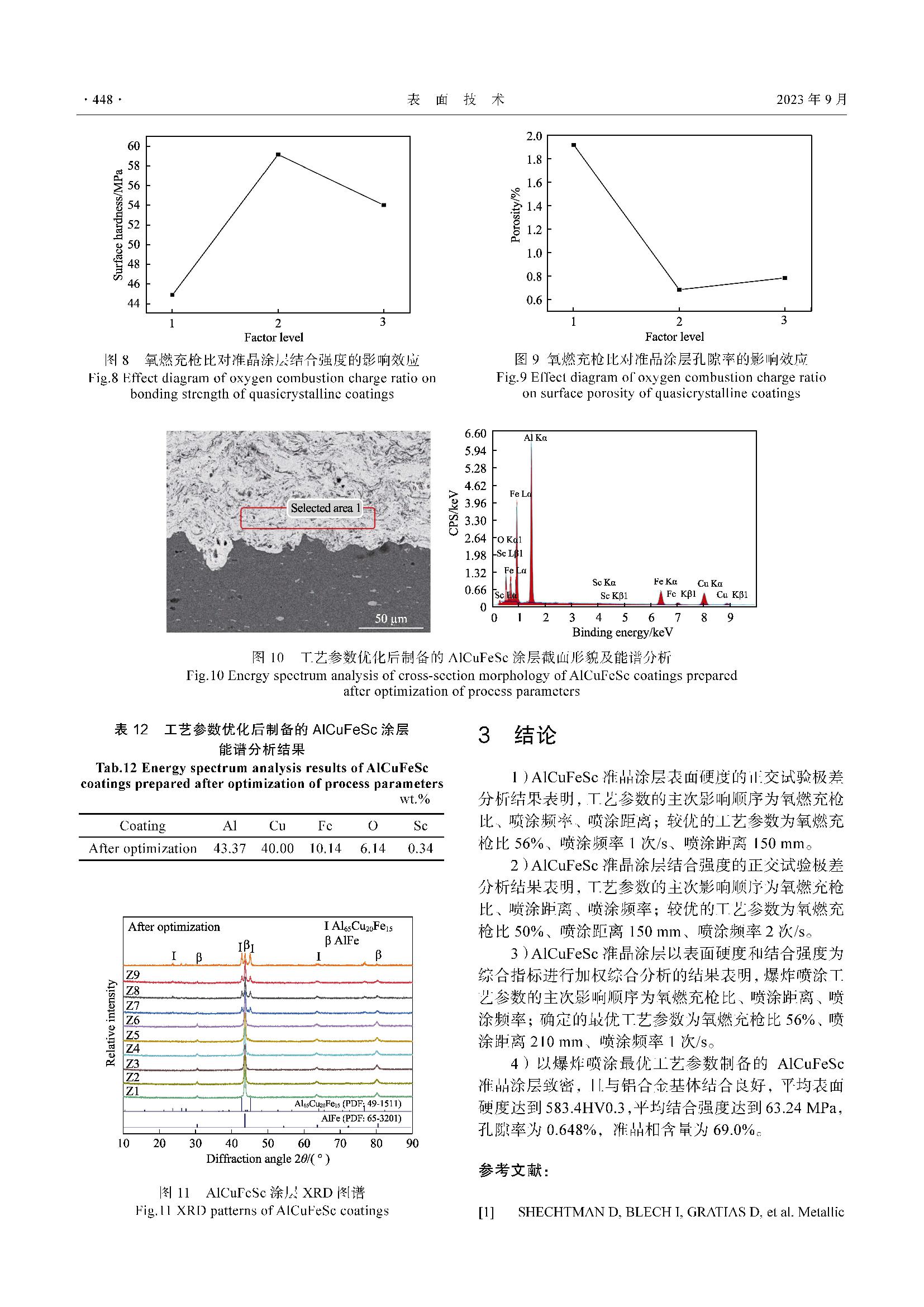 爆炸喷涂工艺参数对AlCuFeSc准晶涂层力学性能的影响